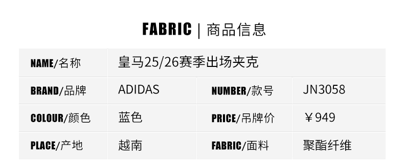 SFS阿迪达斯Adidas 25/26皇马三叶草出场夹克外套 JN3058
