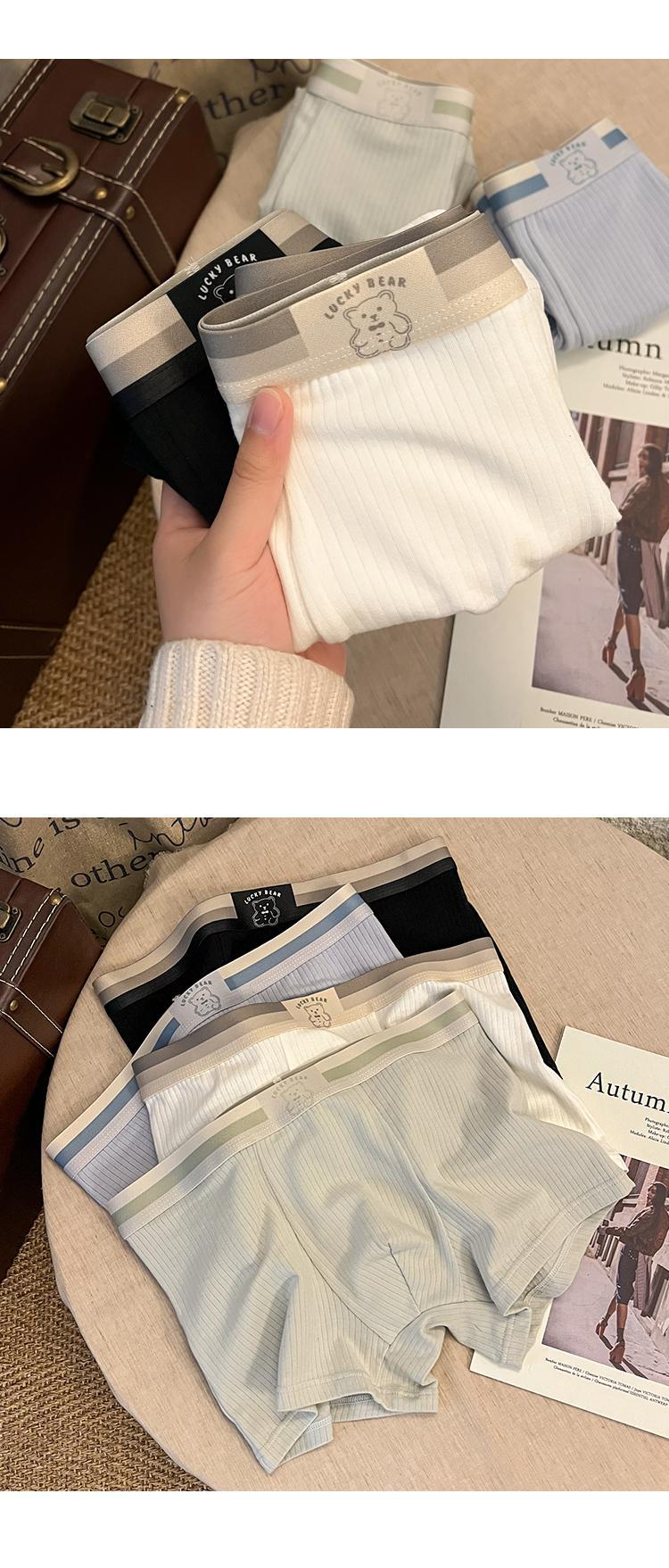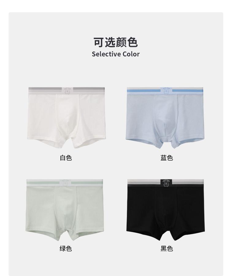 「4色可选」男士内裤男款条纹小熊清新内裤 男生舒适透气平角裤可爱四角裤内衣