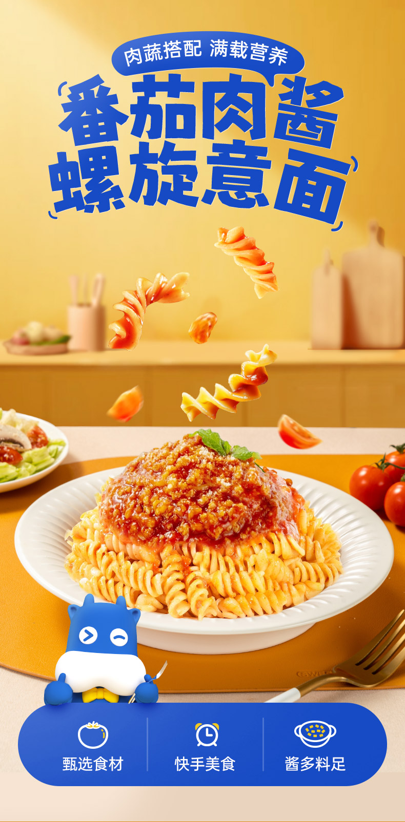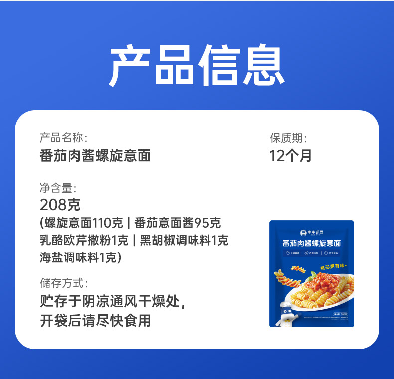 【任选4件5折】小牛凯西番茄/黑椒螺旋意面(全套配料包)208g*6袋