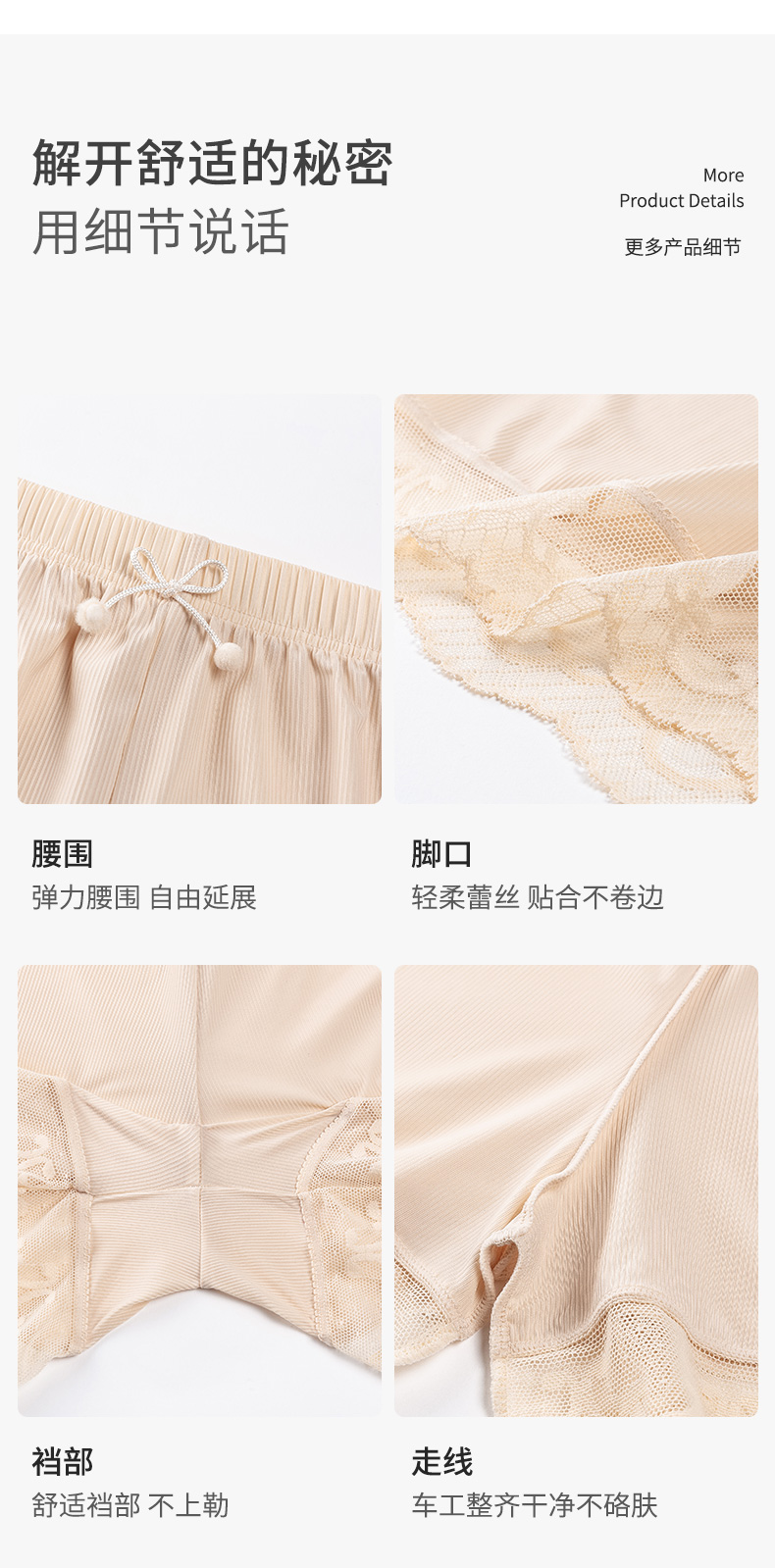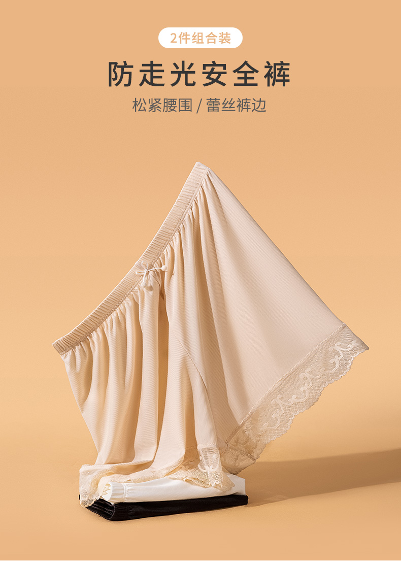 【2条装】熳洁儿 女士内裤防走光安全裤舒适透气中腰弹力蕾丝平角内裤23262115