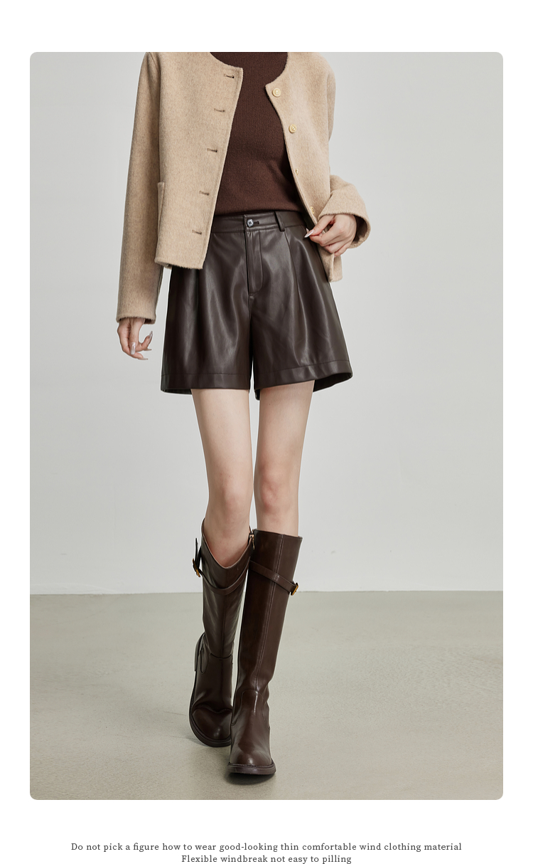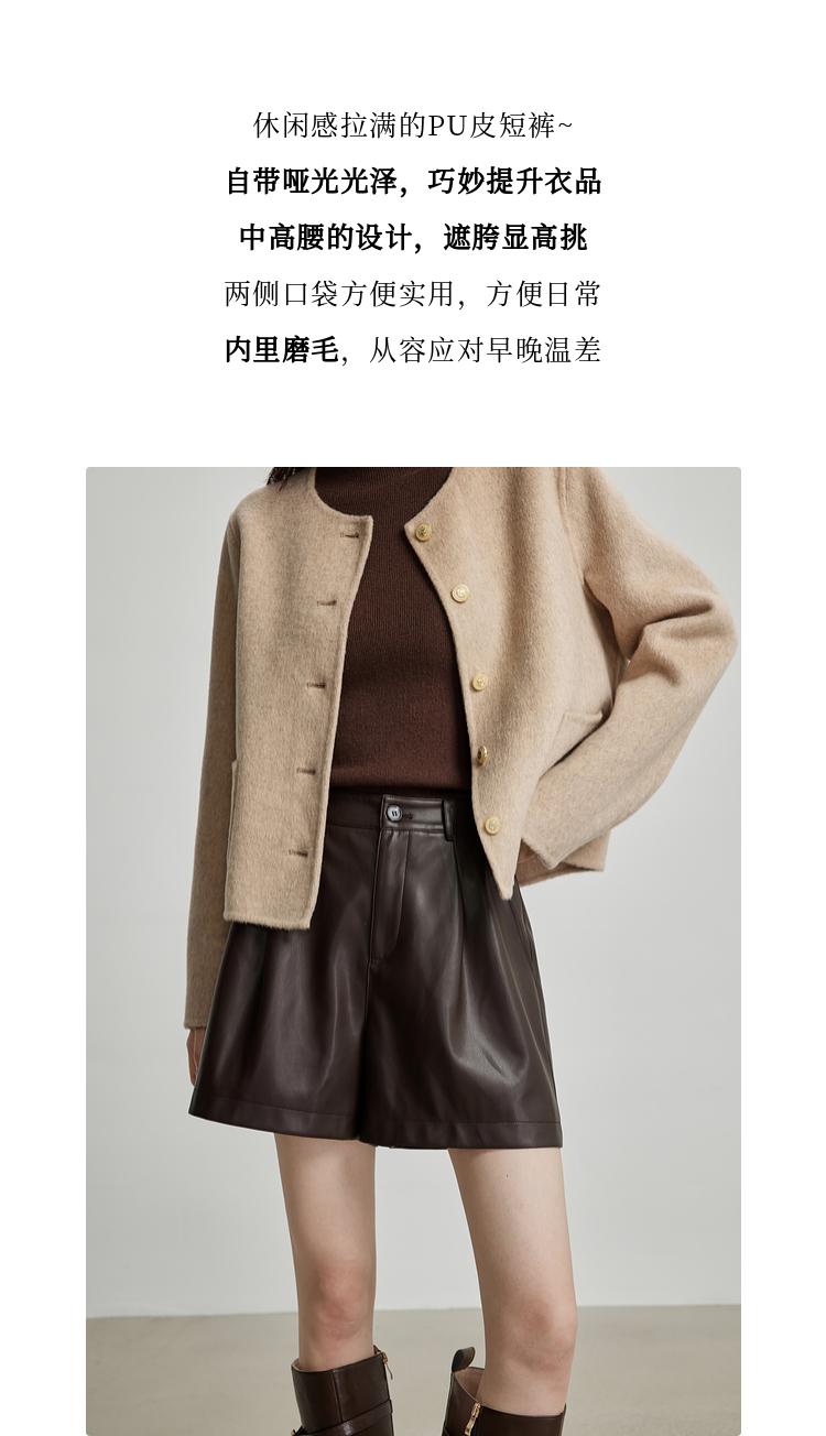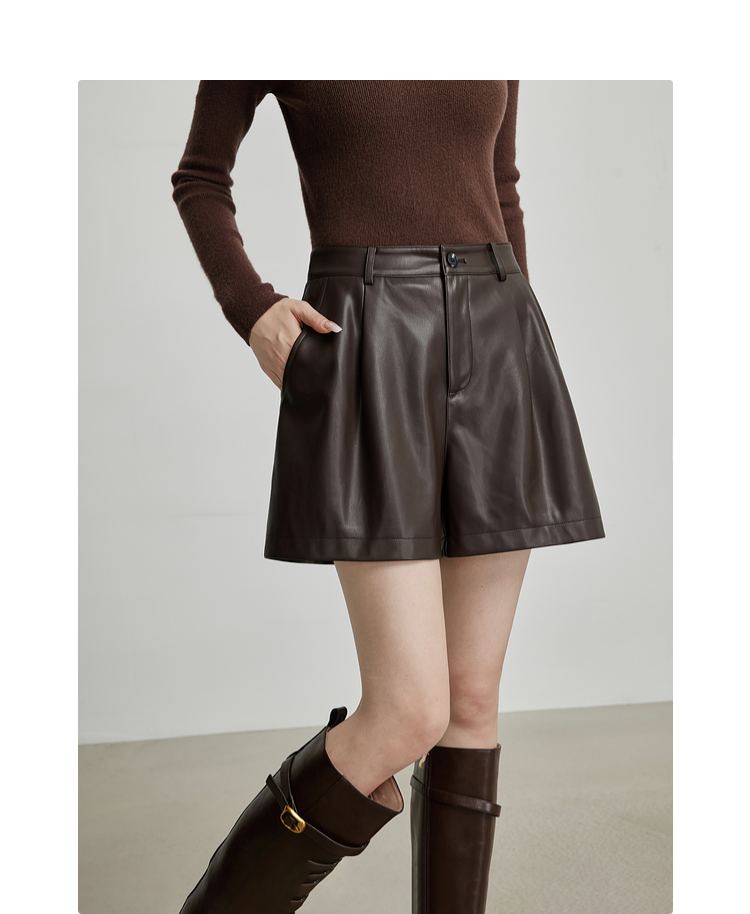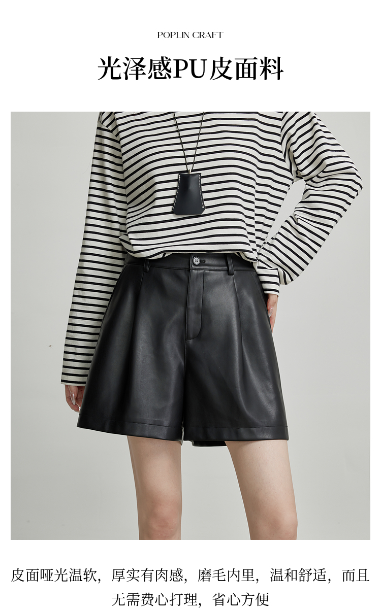 【09/03新品】熙世界PU皮短裤女秋冬2025新款高腰显瘦a字阔腿五分裤直筒裤靴裤