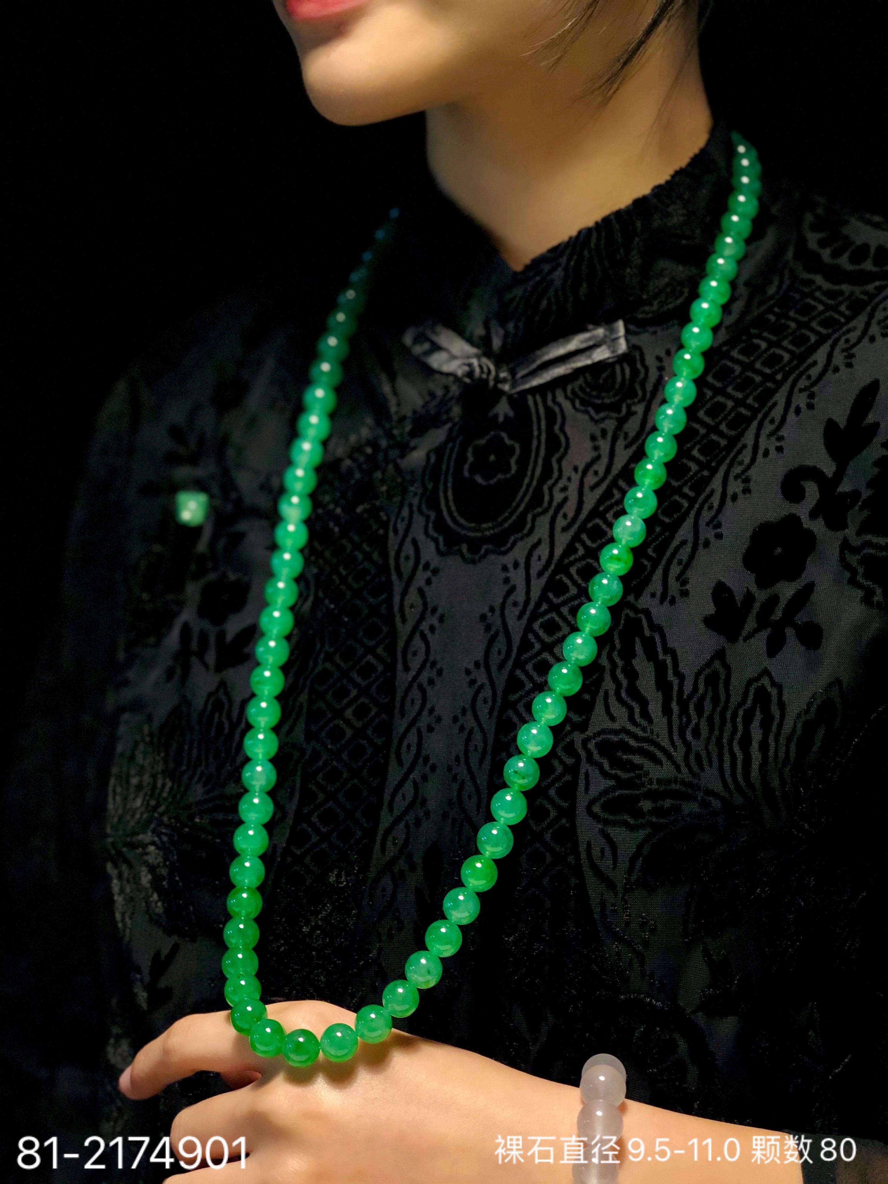 玻璃木那艳绿珠链,81-2174901。具体价格微信咨询