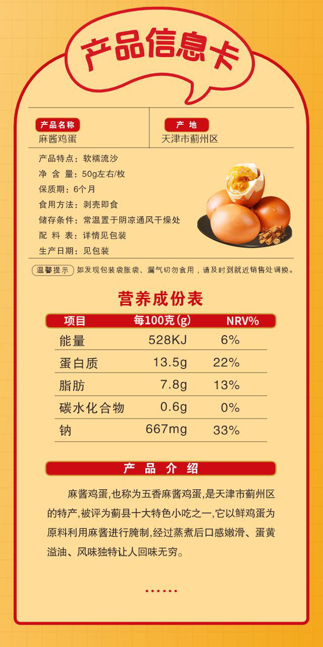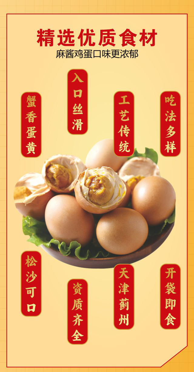 [最农公社]主推|正宗麻酱鸡蛋真空包装天津非遗特产熟鸡蛋清盐空吃配粥吃饭停不下来