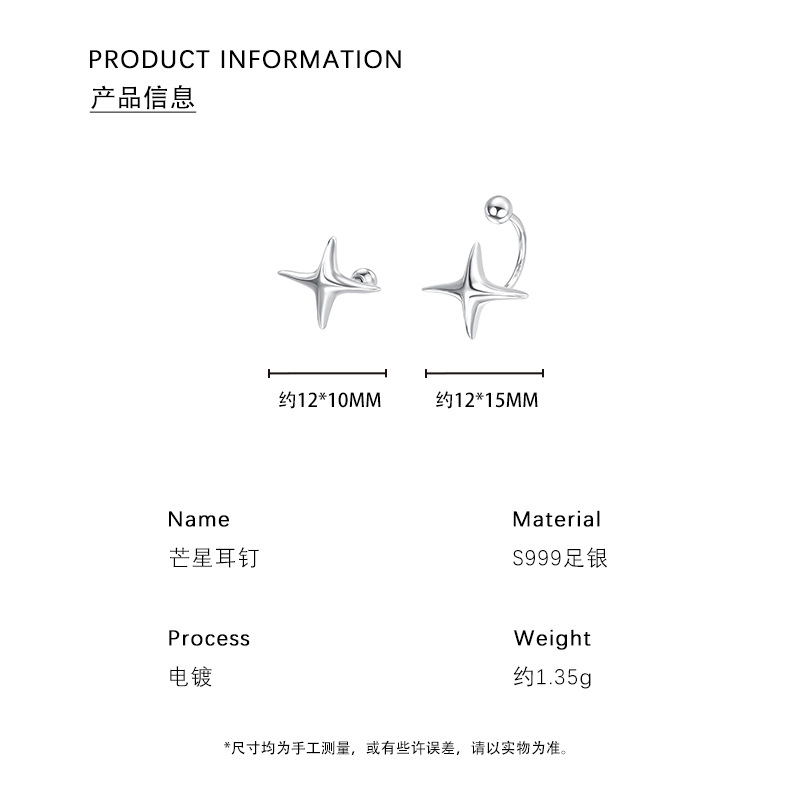 【星辰初见】s999纯银拧螺丝足银星星耳饰【YXS-E5210】
