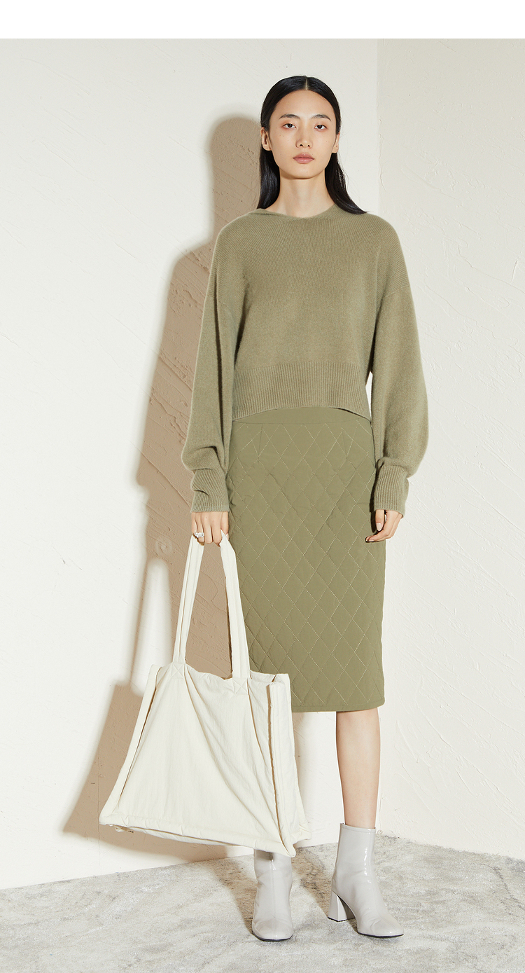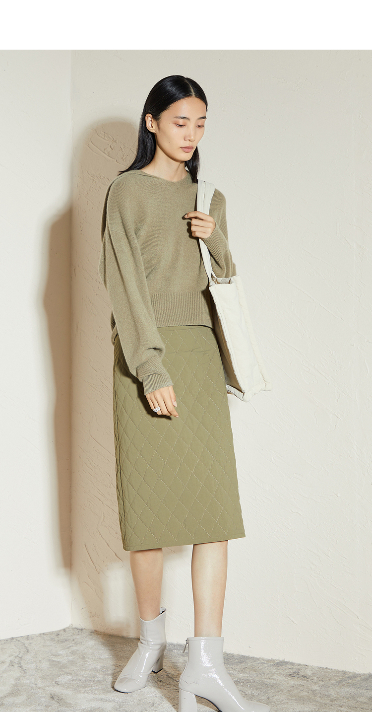【商场同款】麦檬冬菱形格纹高腰后开叉半身裙5CA242241