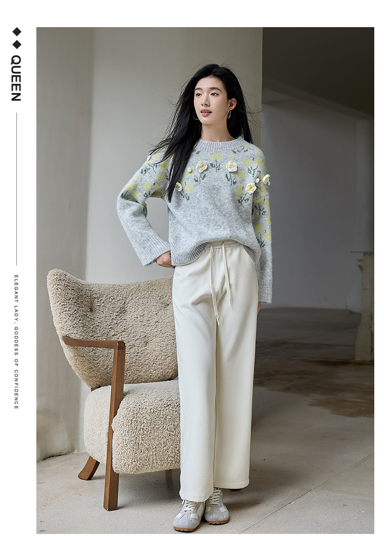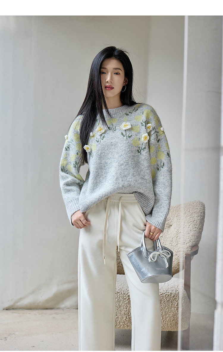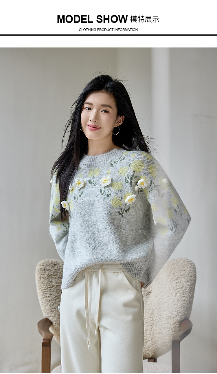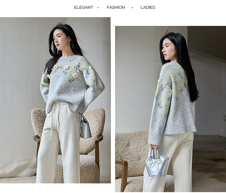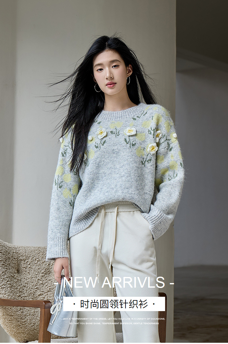 奢姿大码女装2025冬季时尚立体花朵装饰针织衫胖妹妹气质减龄上衣9554691098