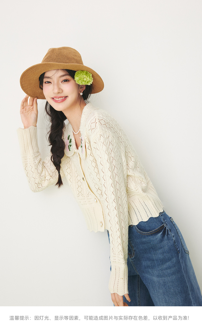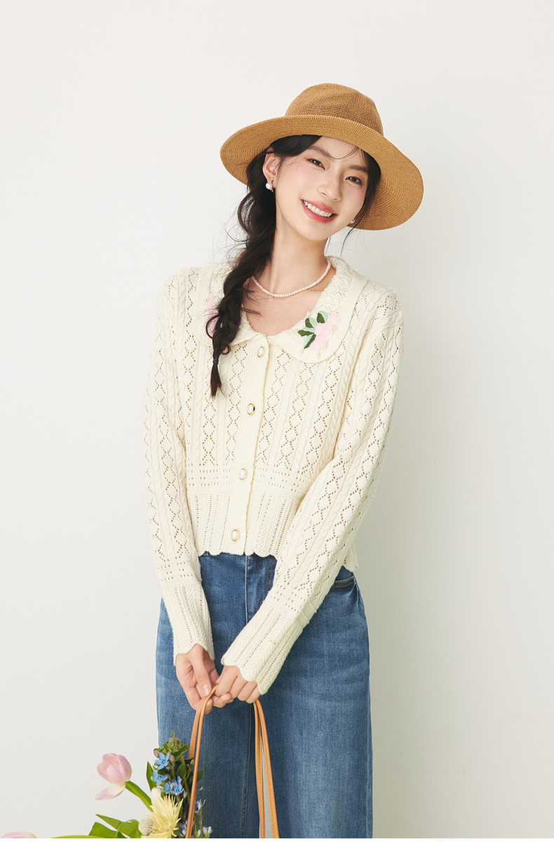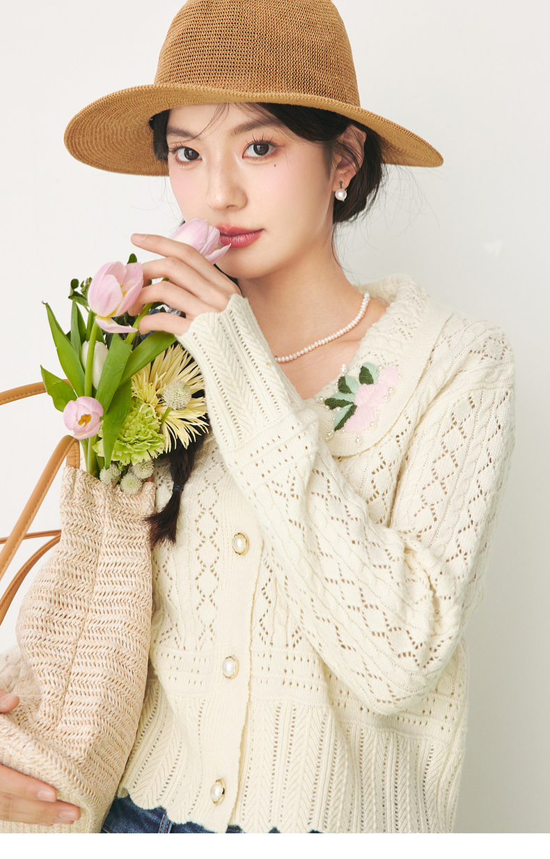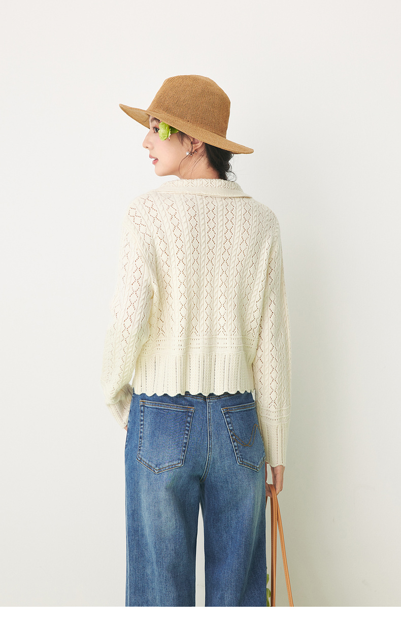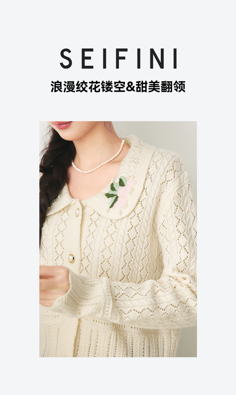 【严选】诗凡黎春翻领大身绞花镂空针织开衫SF1330221