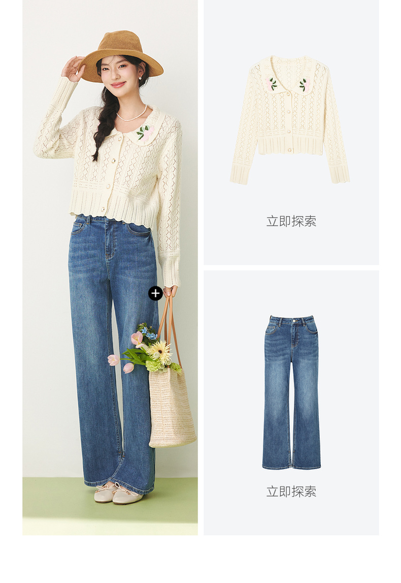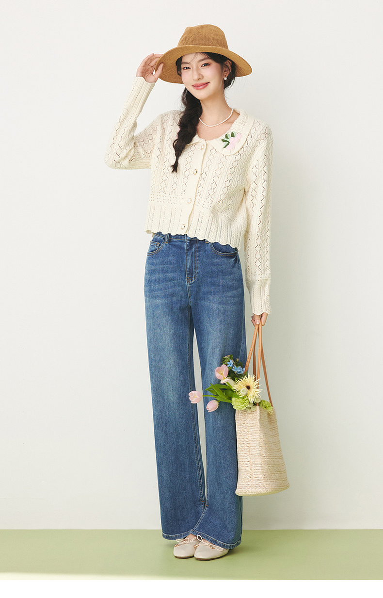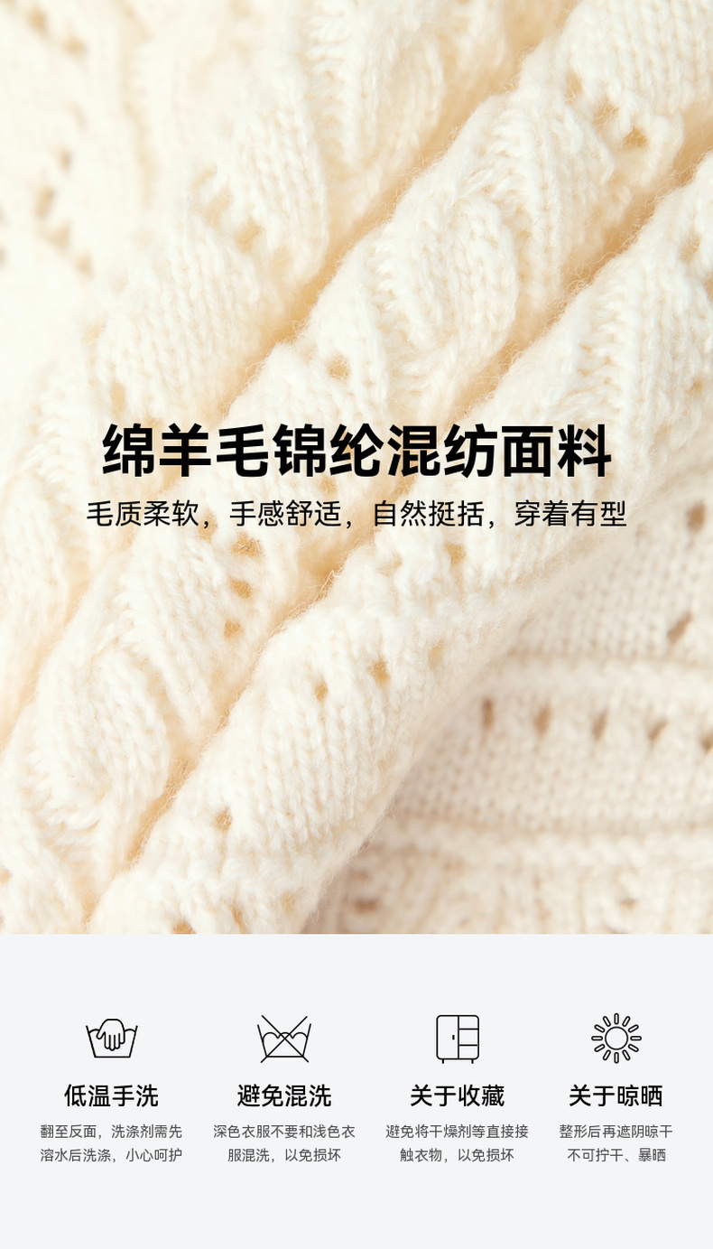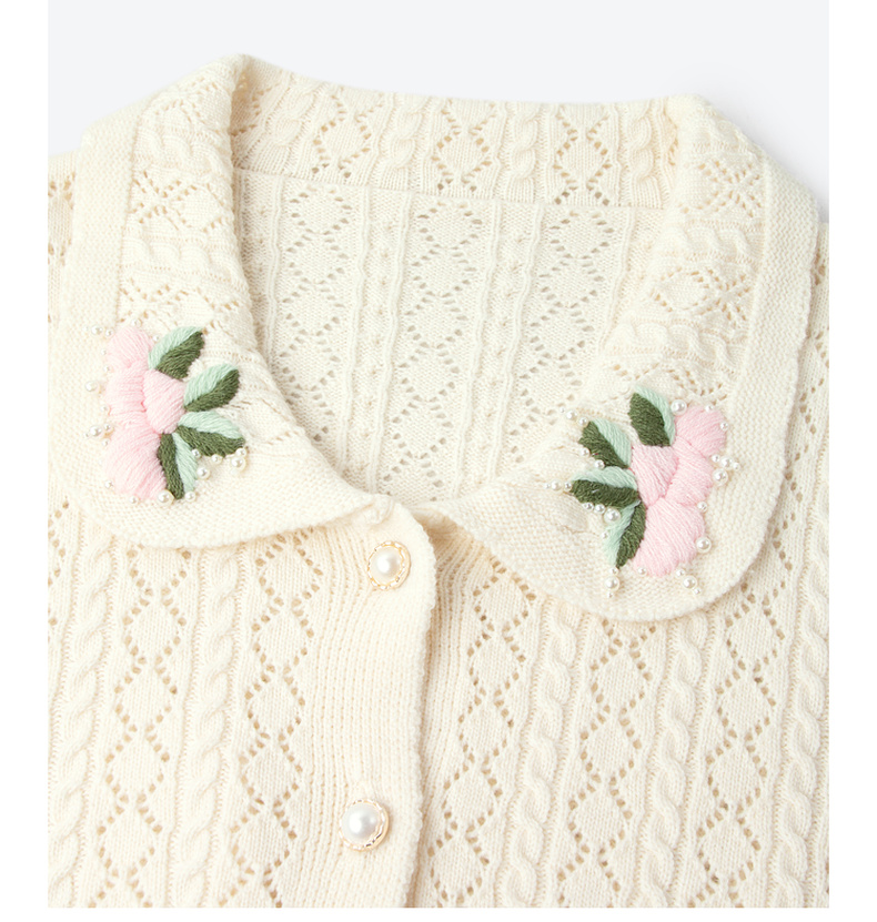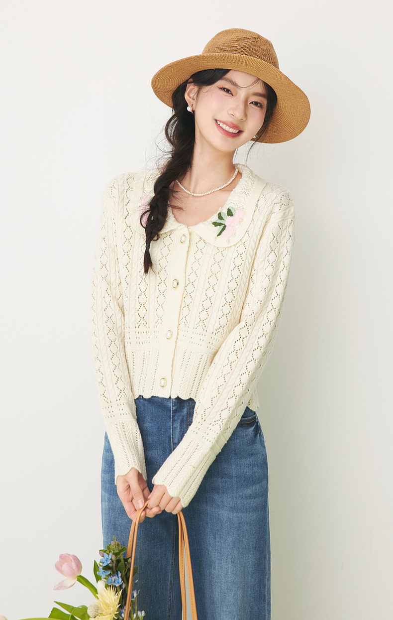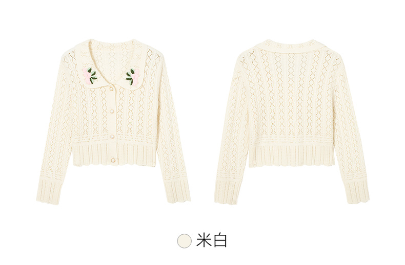 【严选】诗凡黎春翻领大身绞花镂空针织开衫SF1330221