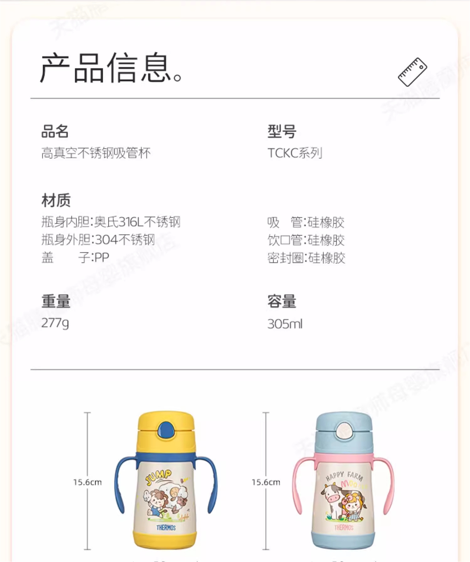 德国Thermos膳魔师 | 农场系列绵羊/奶牛保温杯(无杯套)宝宝水杯 可拆卸式把手 305ml 12月+