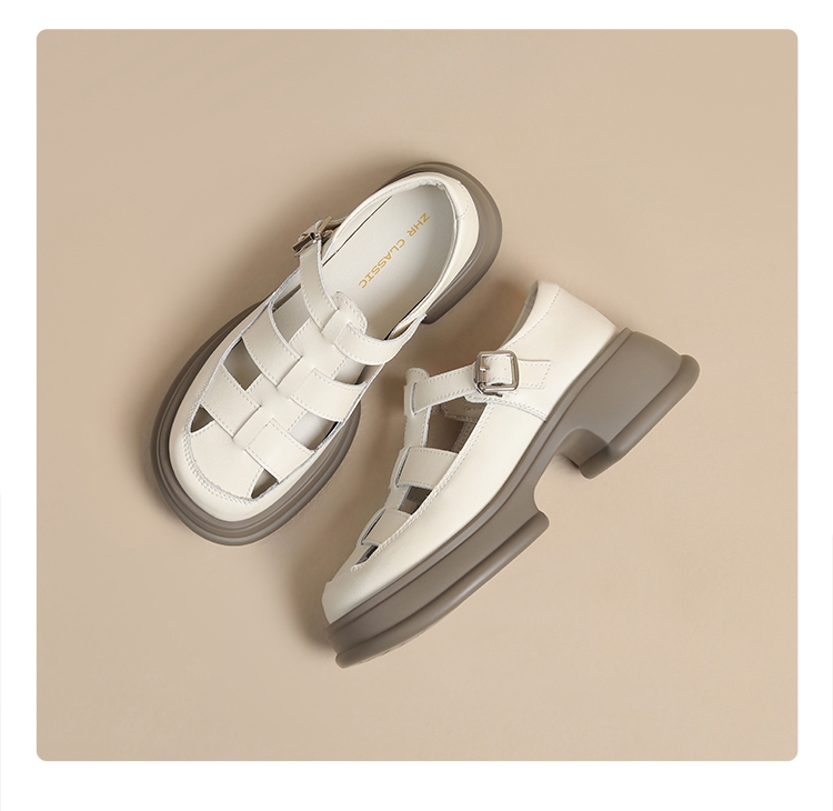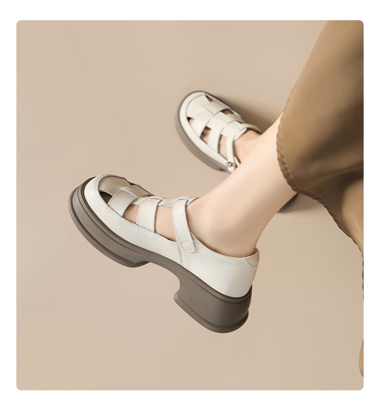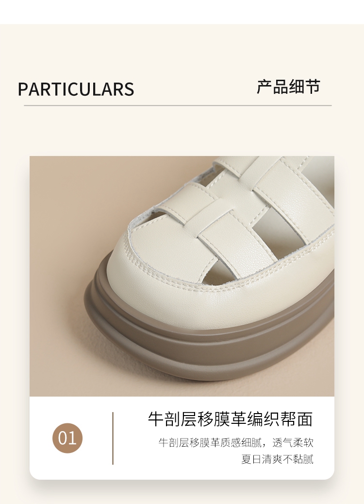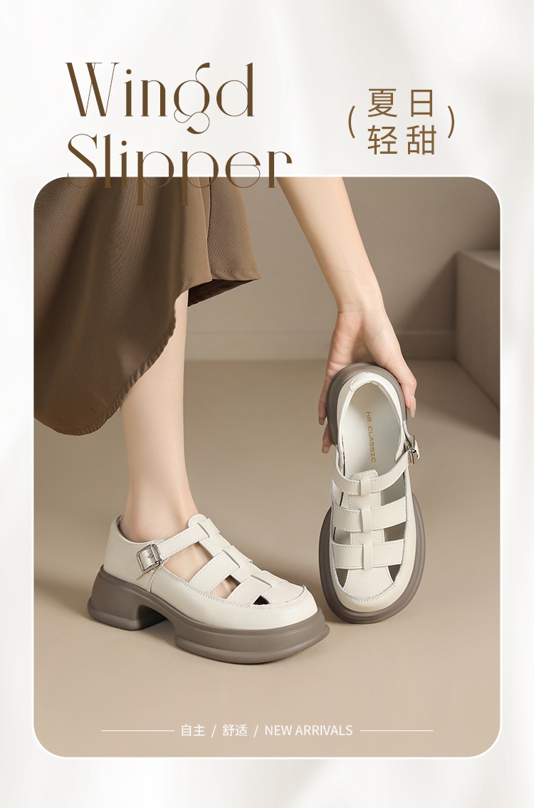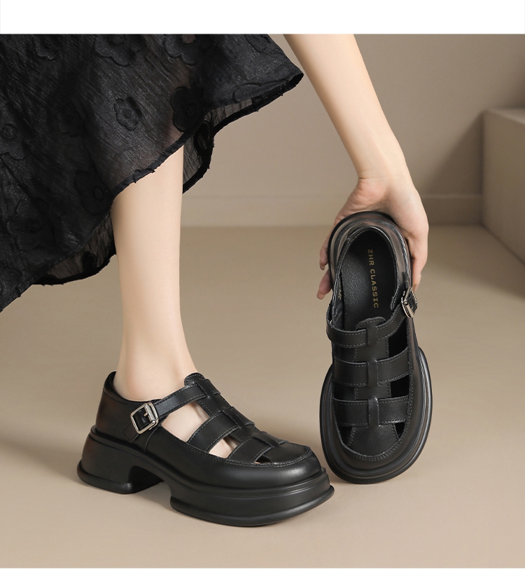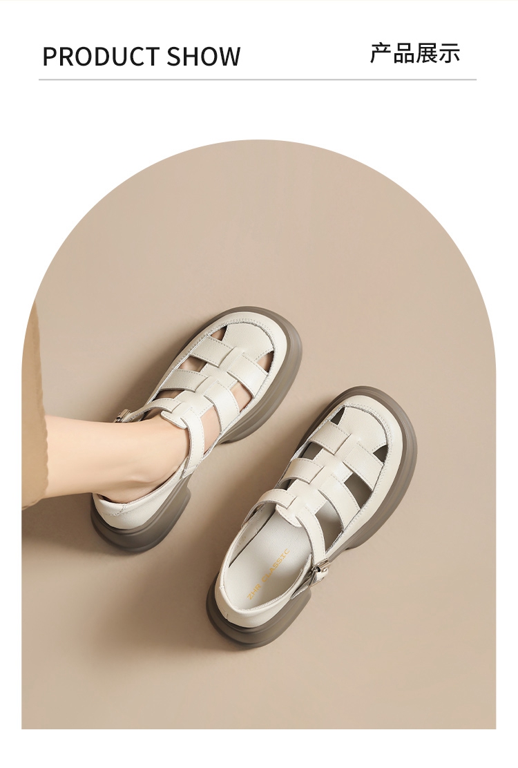 ZHR女鞋2025夏季新款厚底罗马凉鞋女真皮鞋子复古镂空包头猪笼鞋