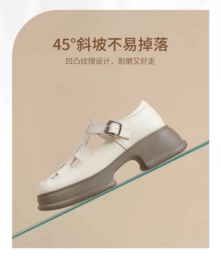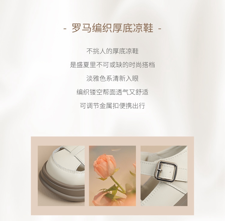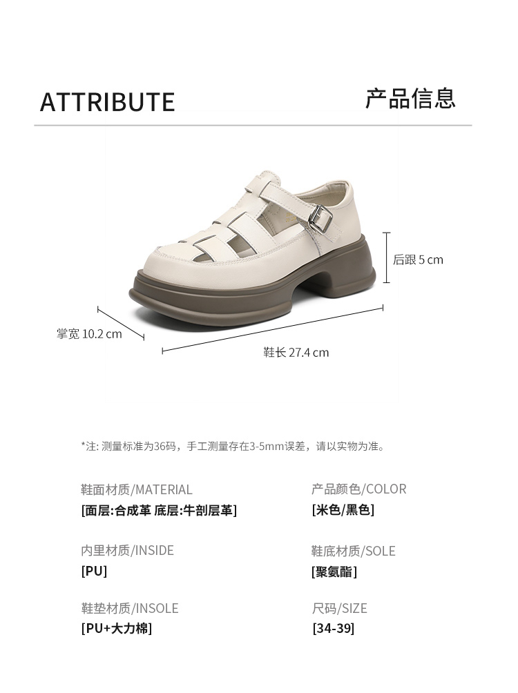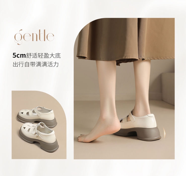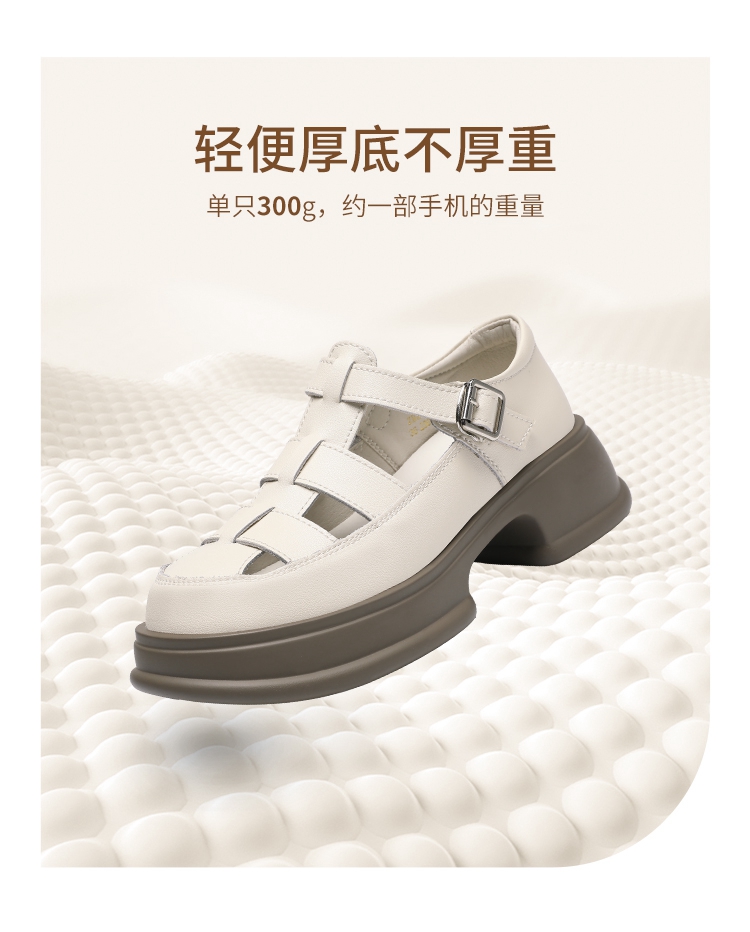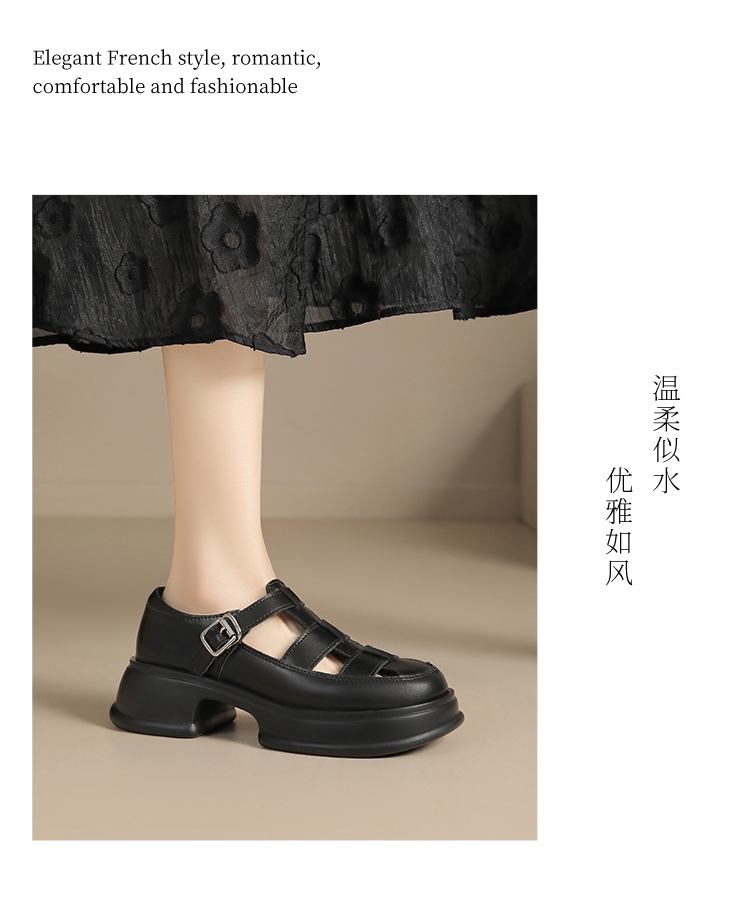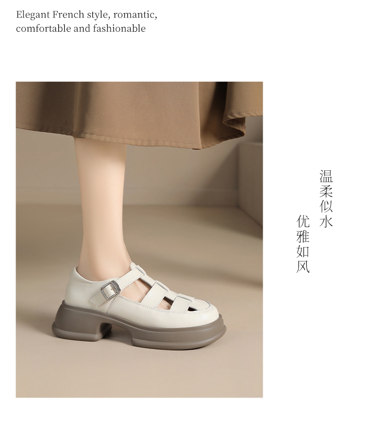 ZHR女鞋2025夏季新款厚底罗马凉鞋女真皮鞋子复古镂空包头猪笼鞋