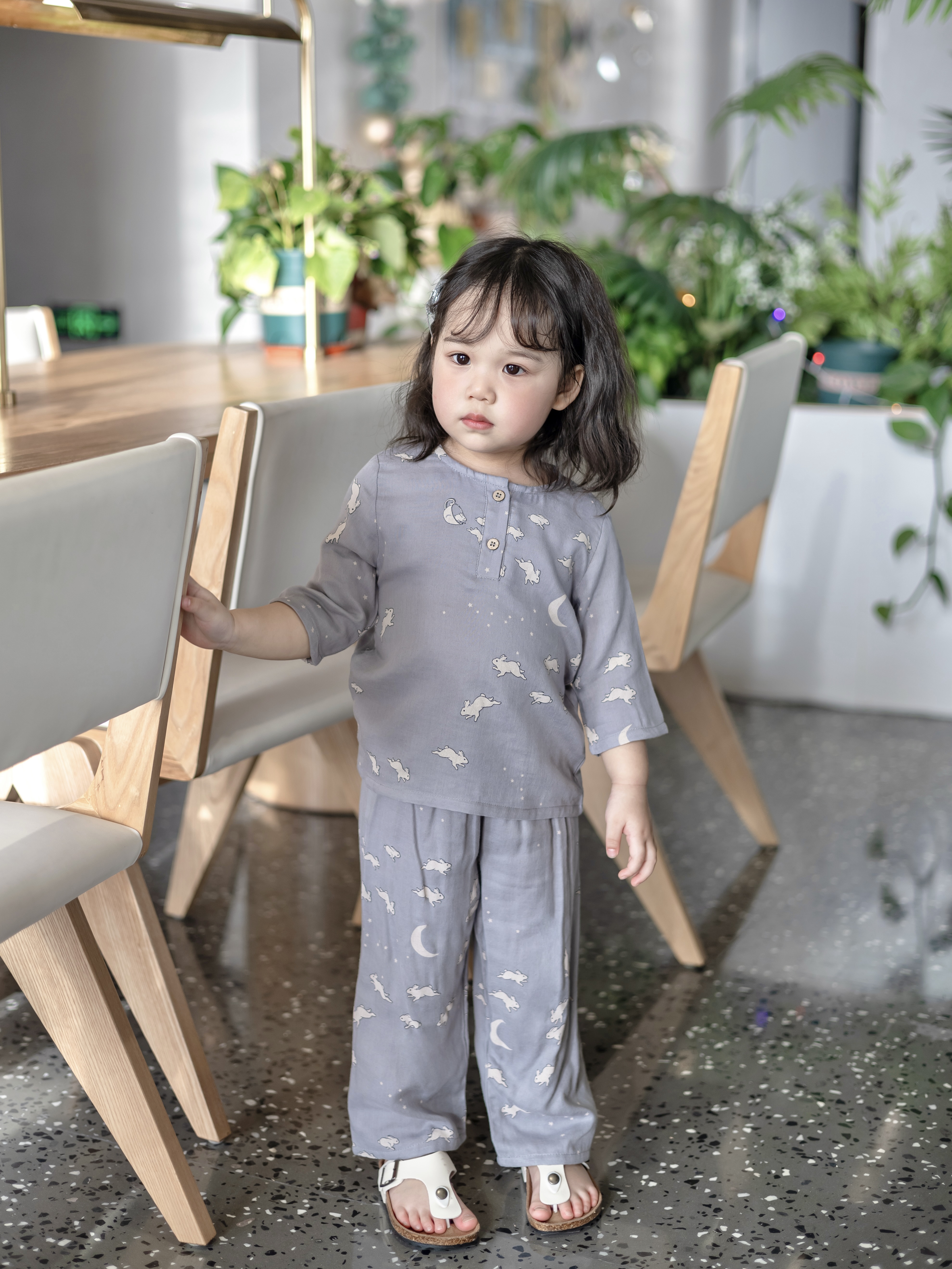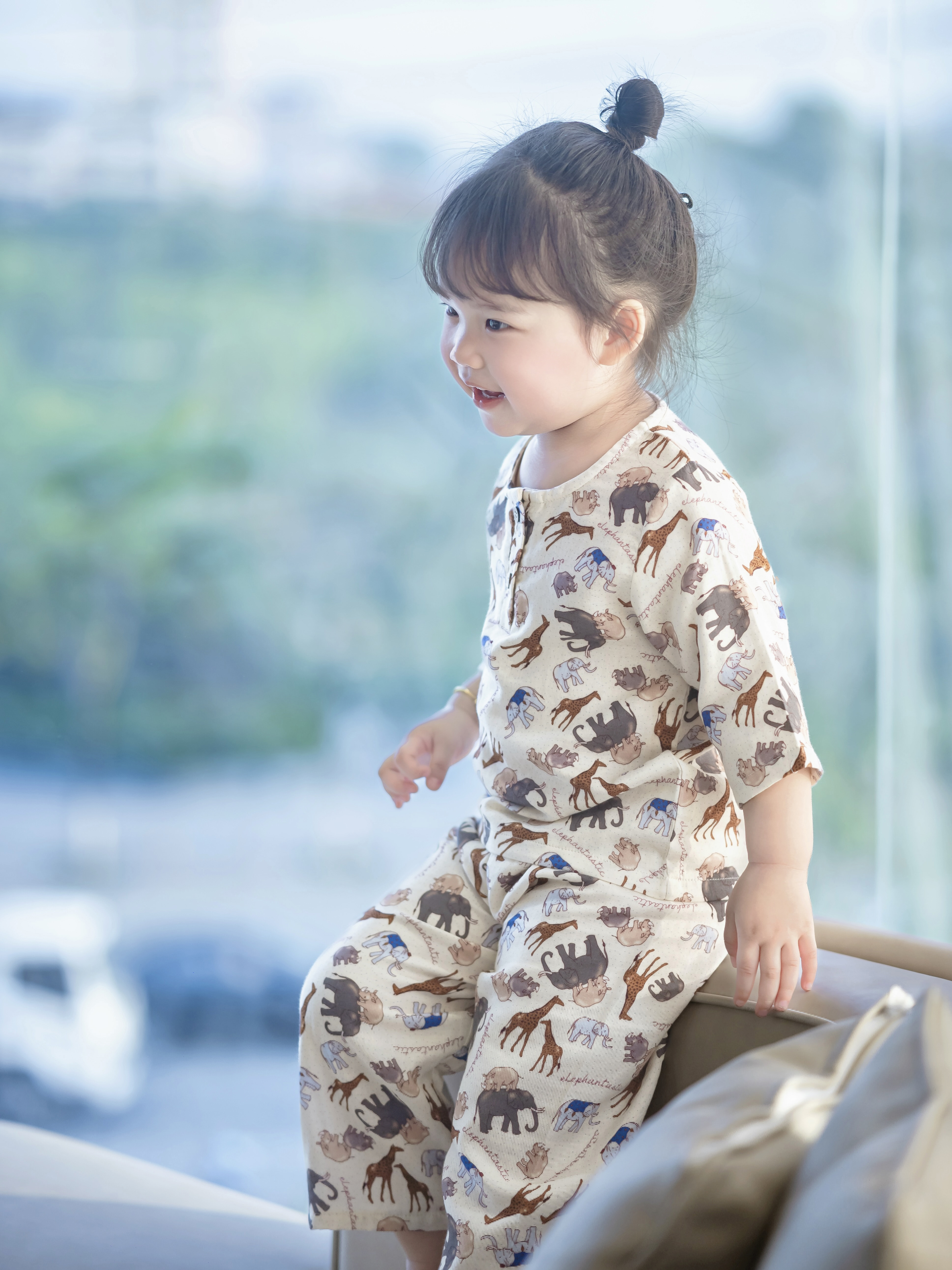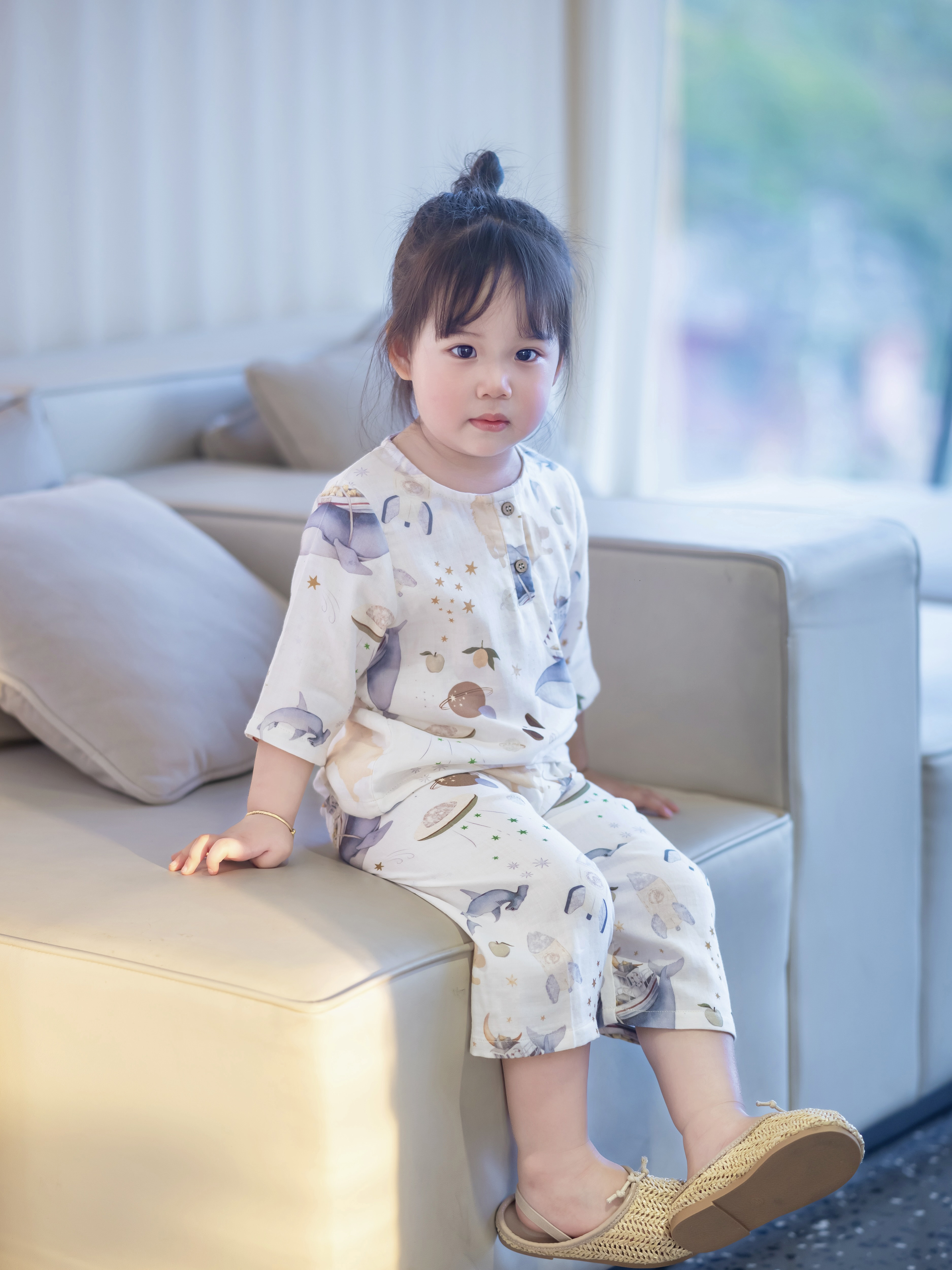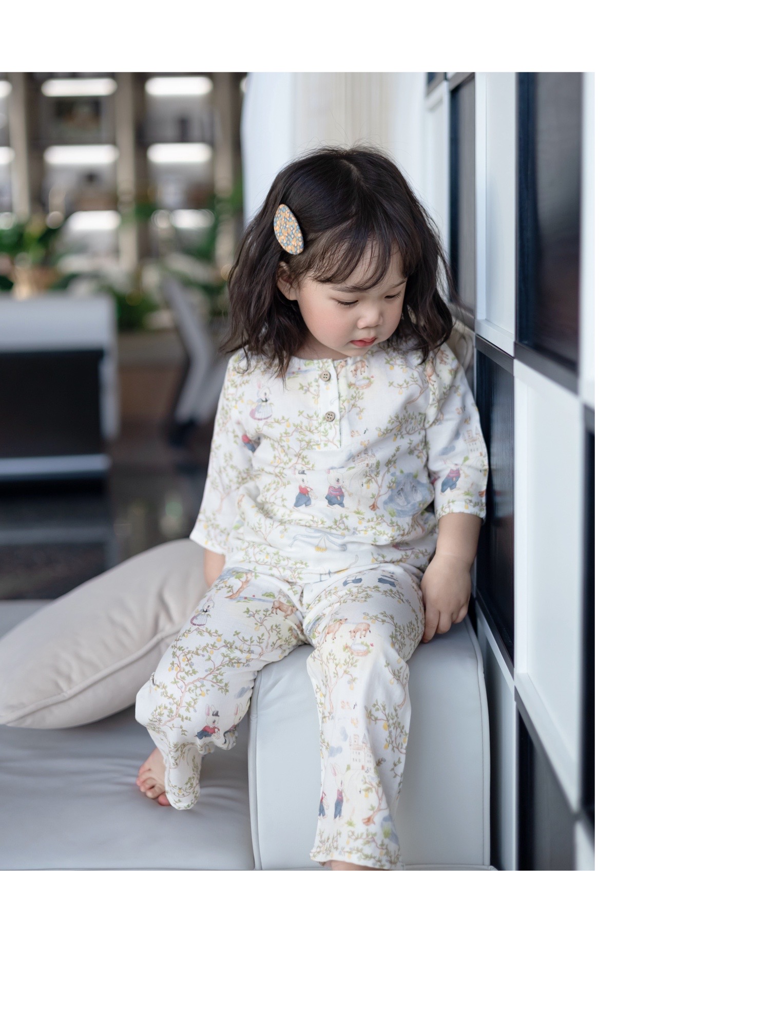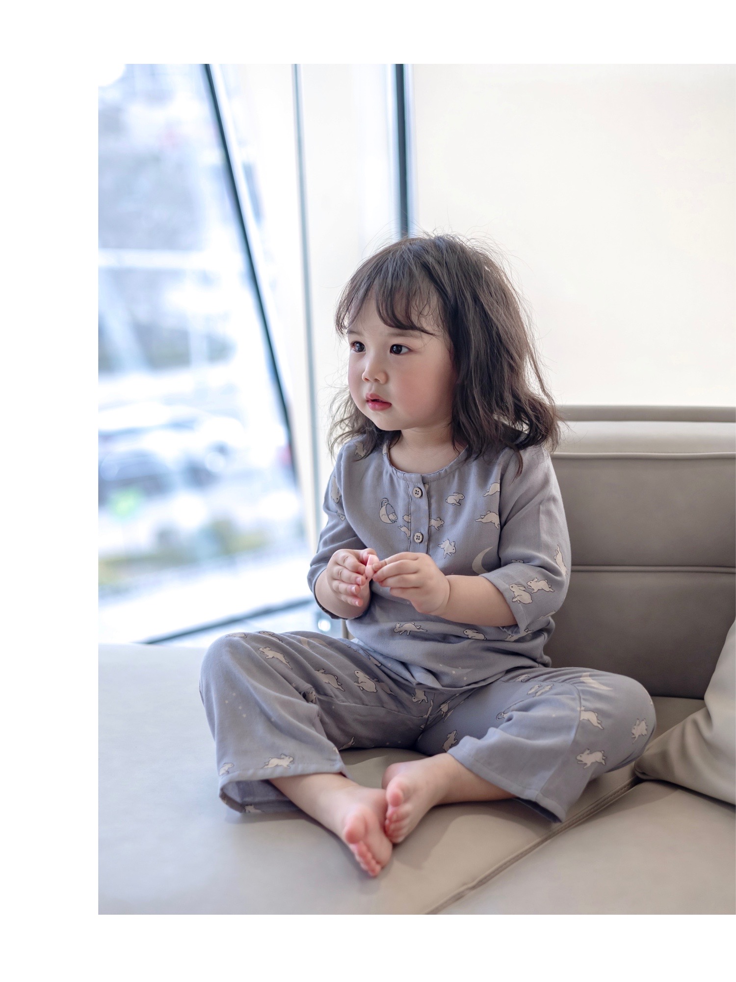 【云优选】Babystormi 宝宝 亲子同款 七分袖竹棉纱布可爱印花儿童 成人睡衣透气夏季轻薄家居服套装 1岁+ 80cm-150cm 成人尺码M-XL码(周六日不发货)