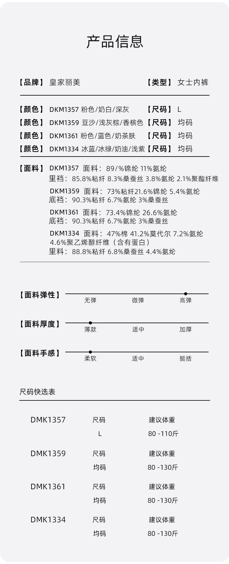 皇家丽美女内裤无痕舒适桑蚕丝底裆不夹臀底裤DKM1357DKM1359DKM1361DKM1334