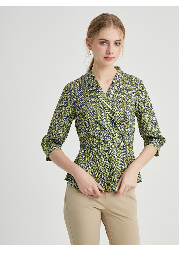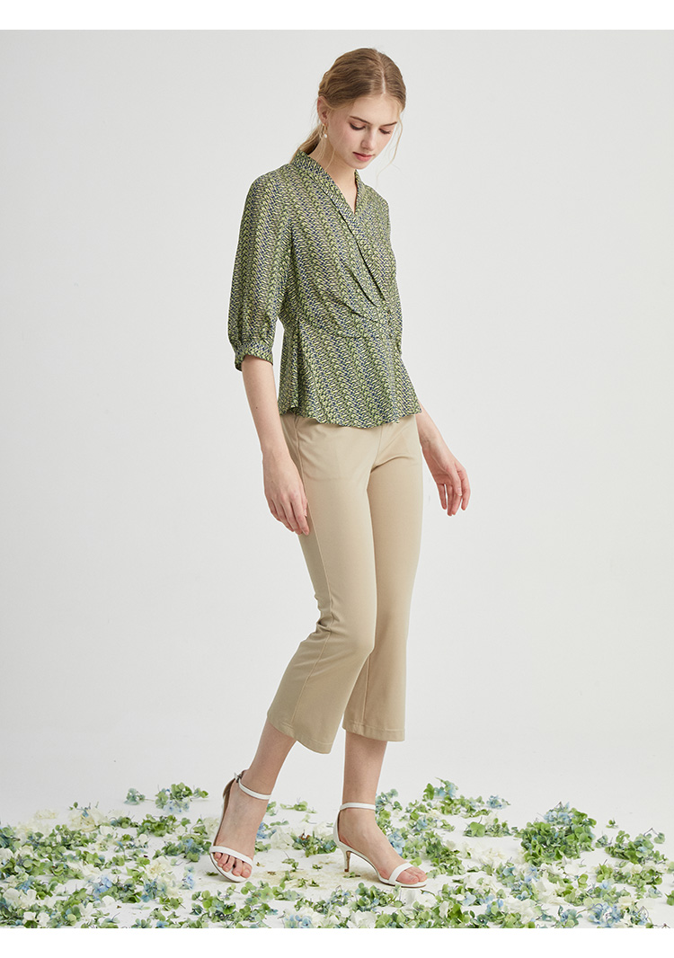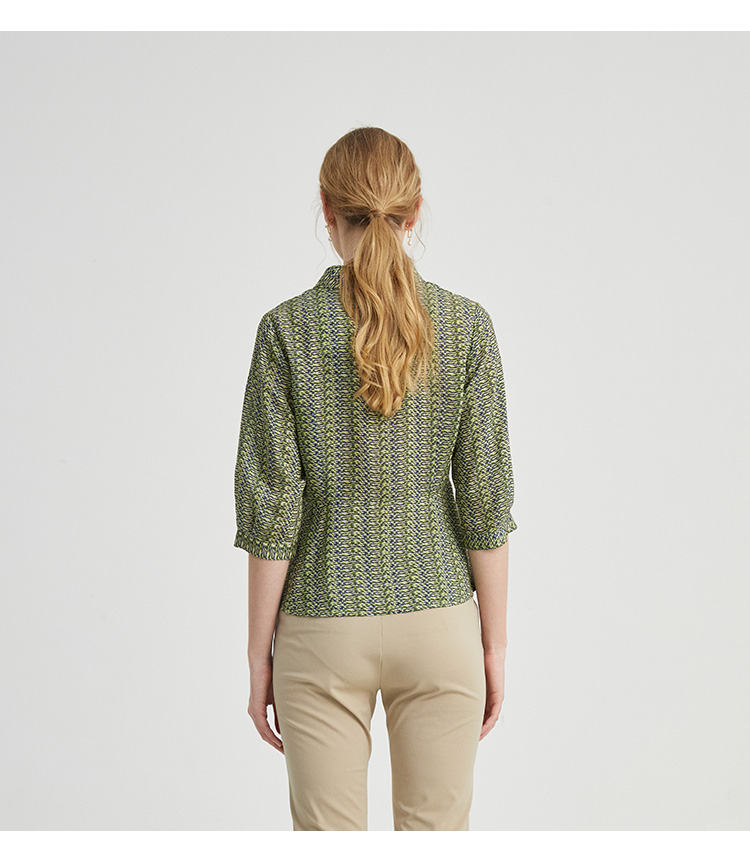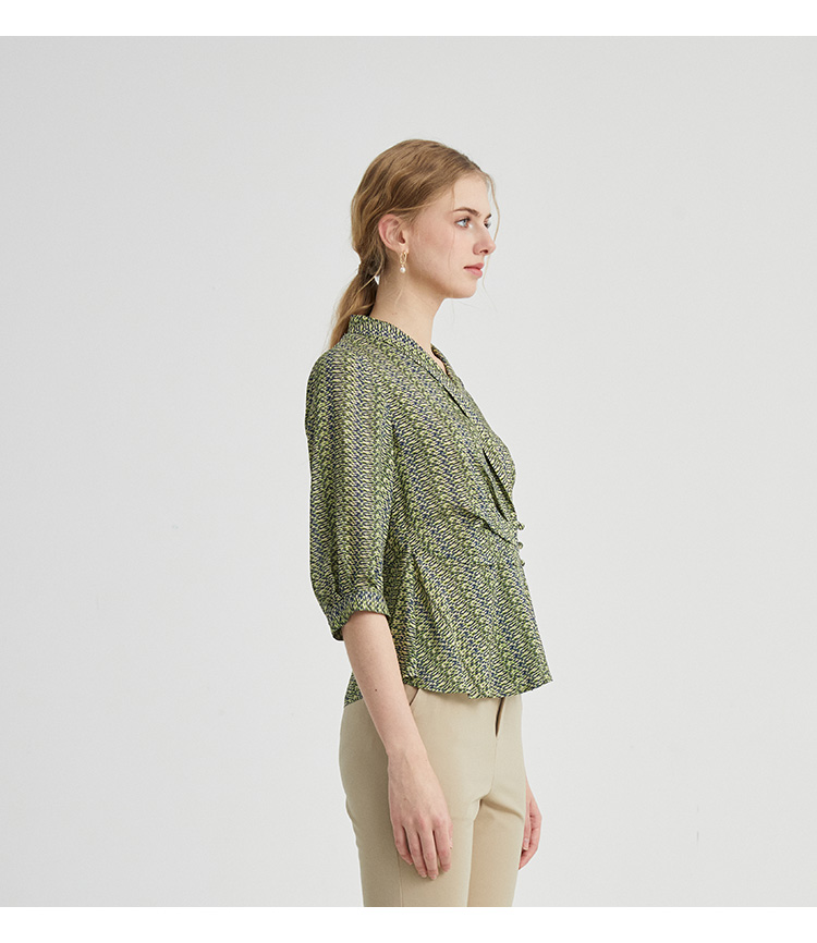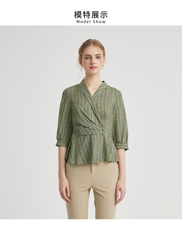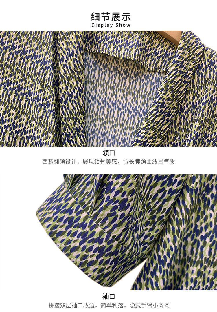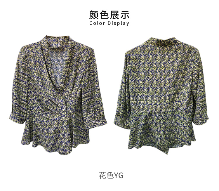 VIVIAN LIU薇薇安刘R2423007春女装新款西装领印花粘纤七分袖外套