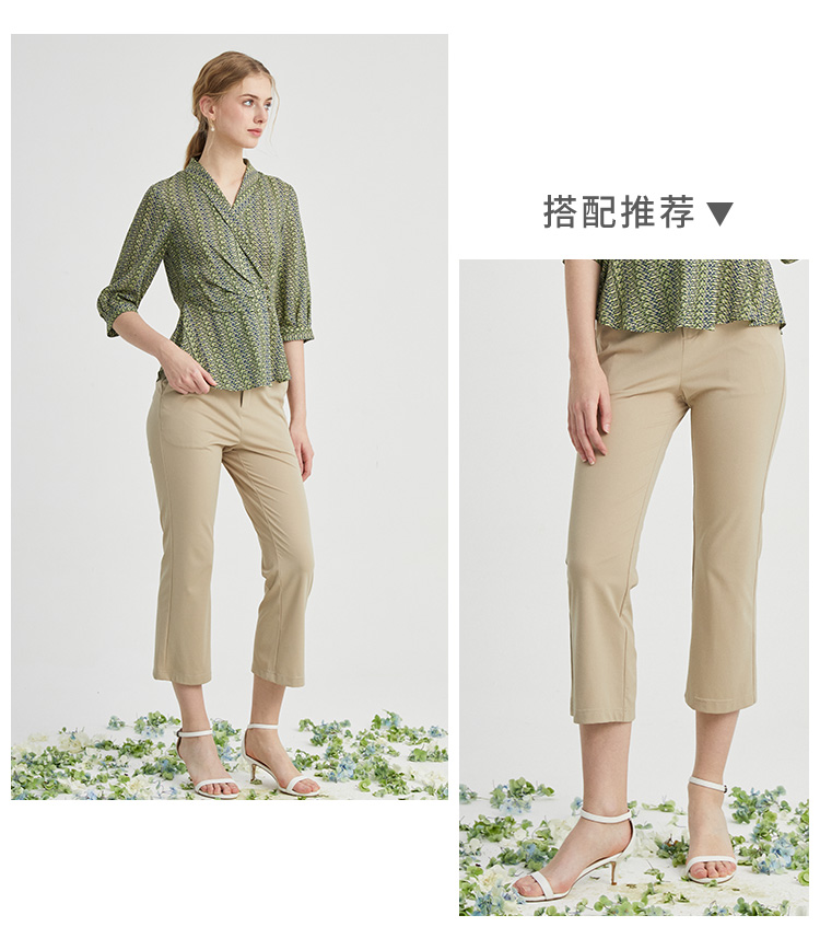 VIVIAN LIU薇薇安刘R2355007秋女装新款斜插兜锥形脚口翻边长裤