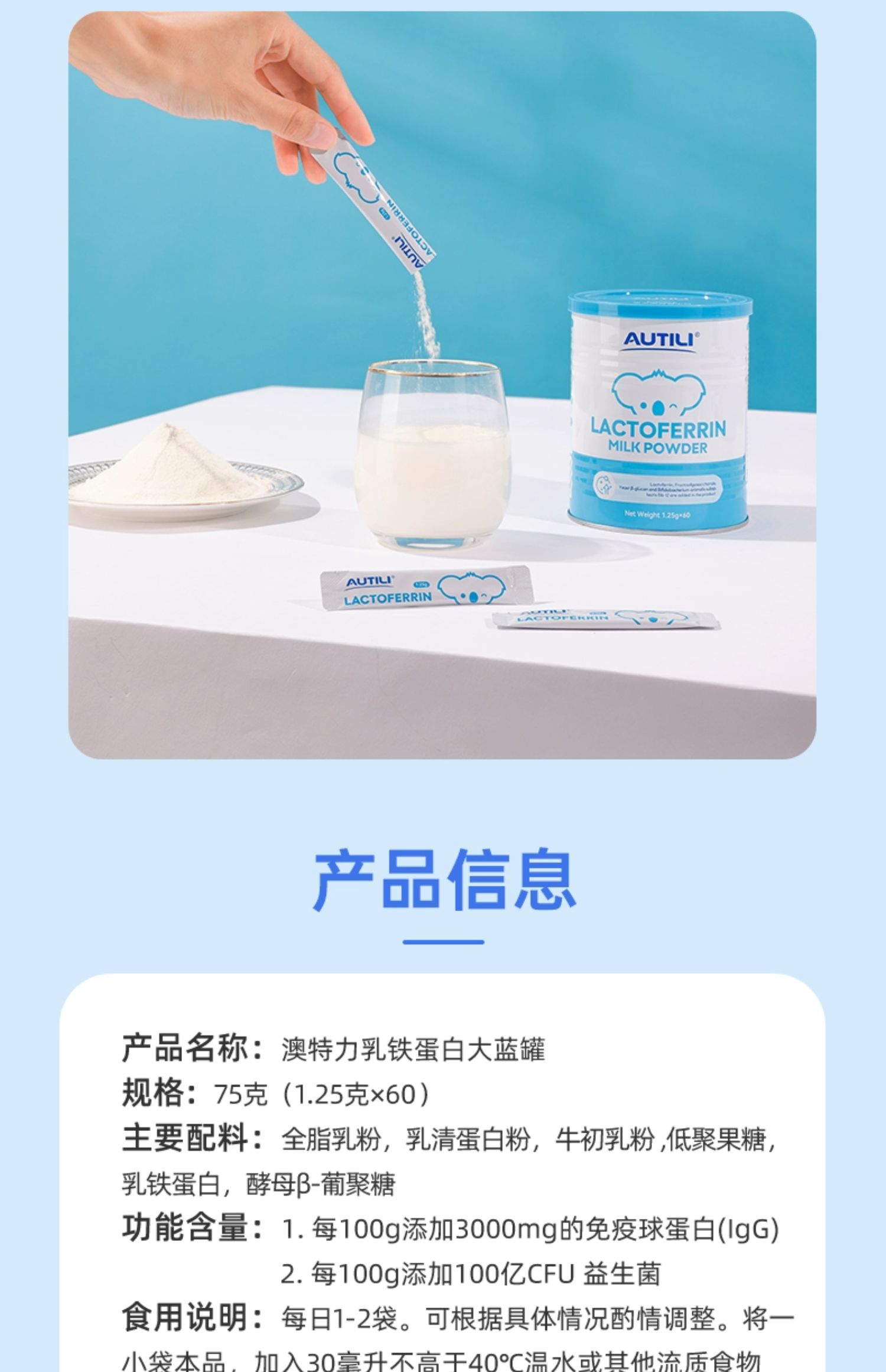 澳洲澳特力 乳铁蛋白调制乳粉 1.25g*60袋 6月+