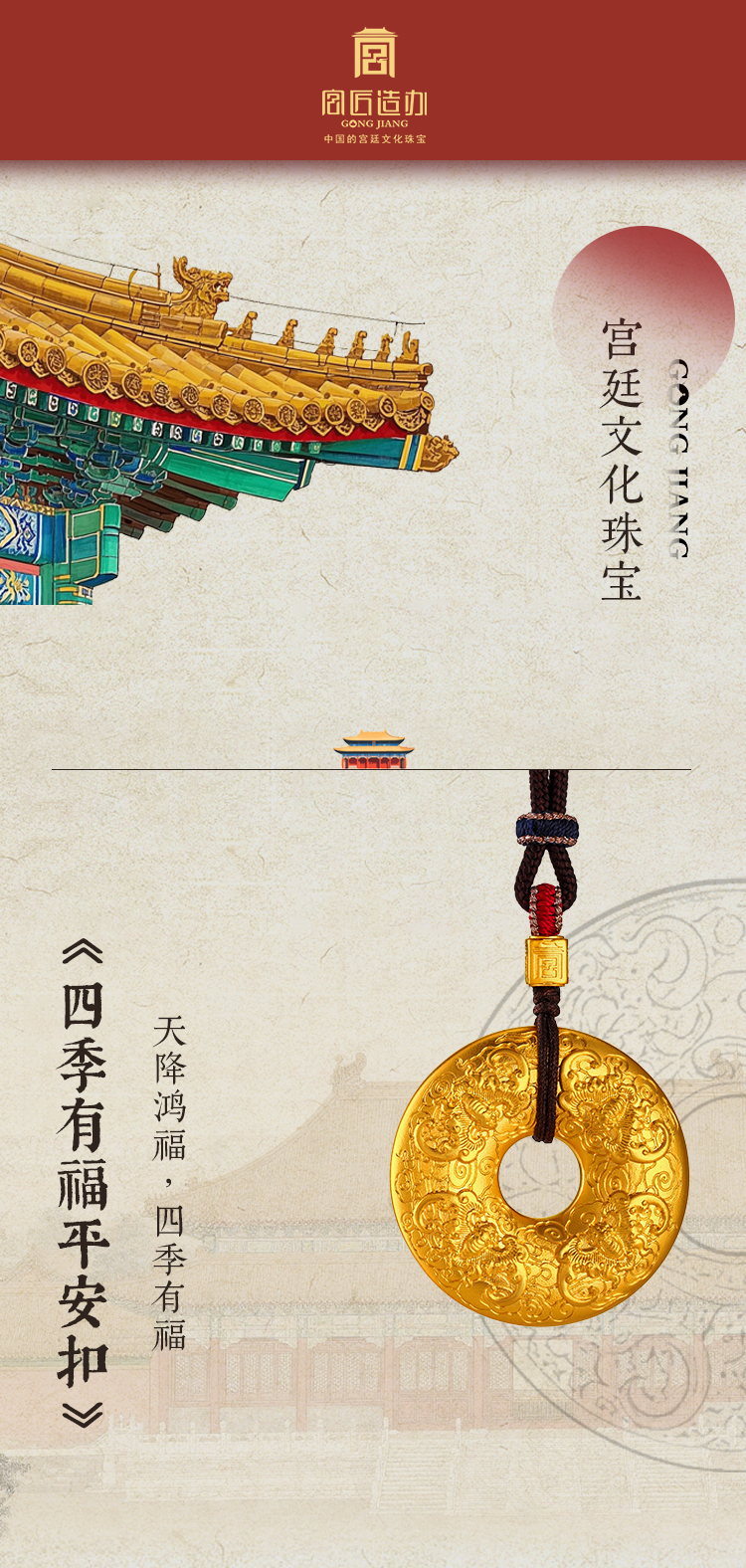 宫匠造办 吉祥如意耳坠 黄金镶珍珠