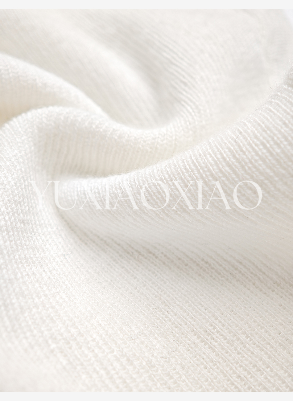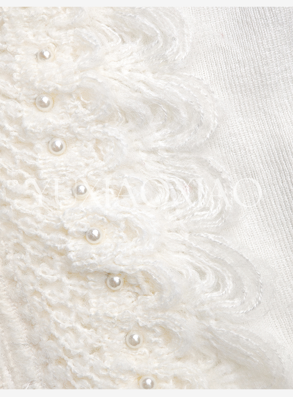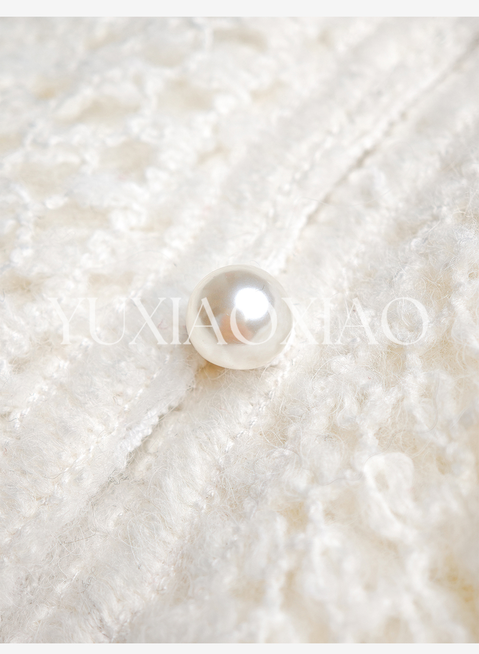 余潇潇【梦幻山茶】含羊毛混纺拼接钩花花边V领修身舒适毛衣外套
