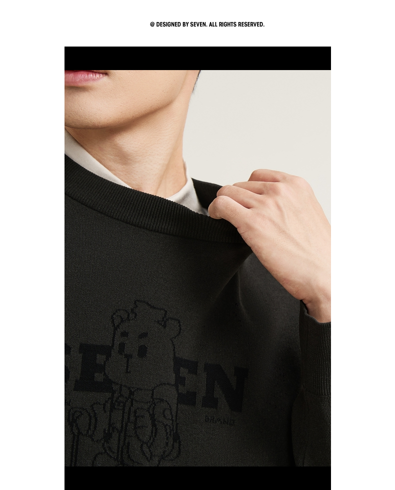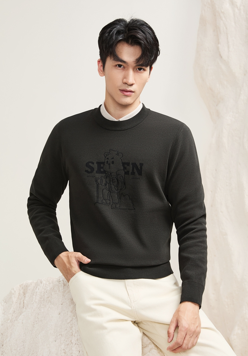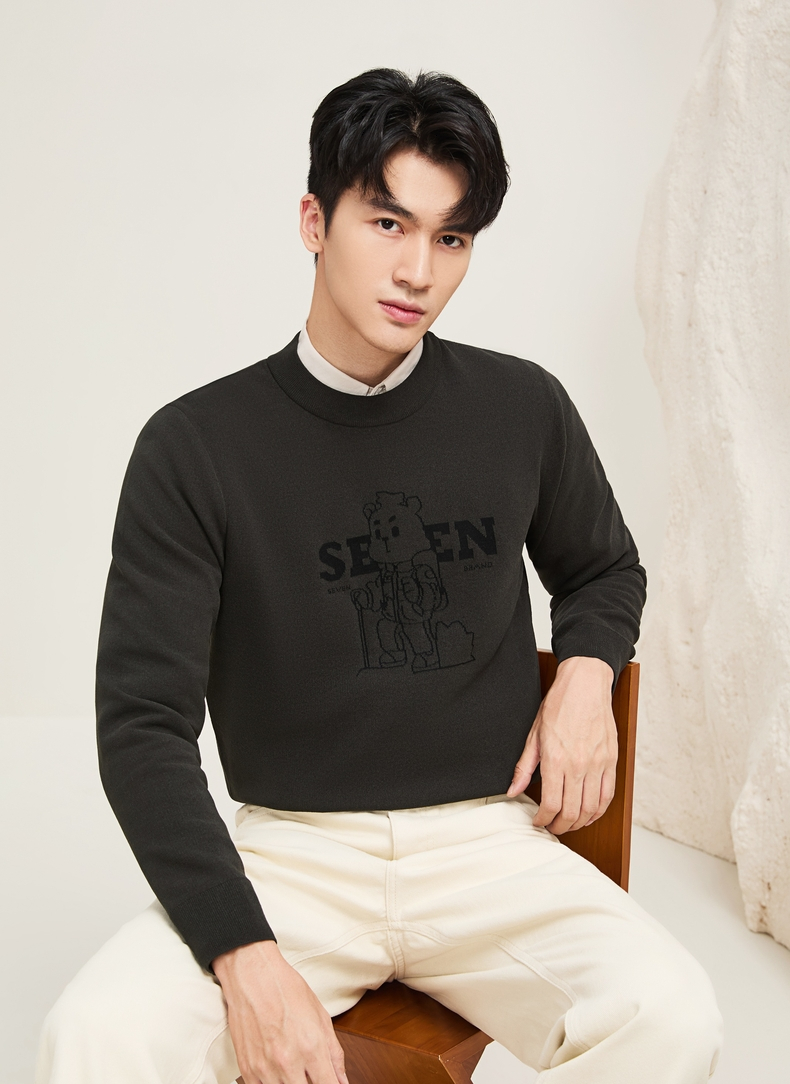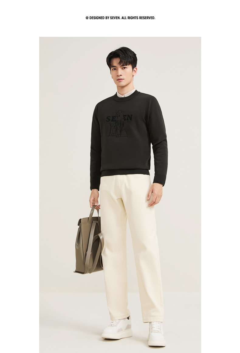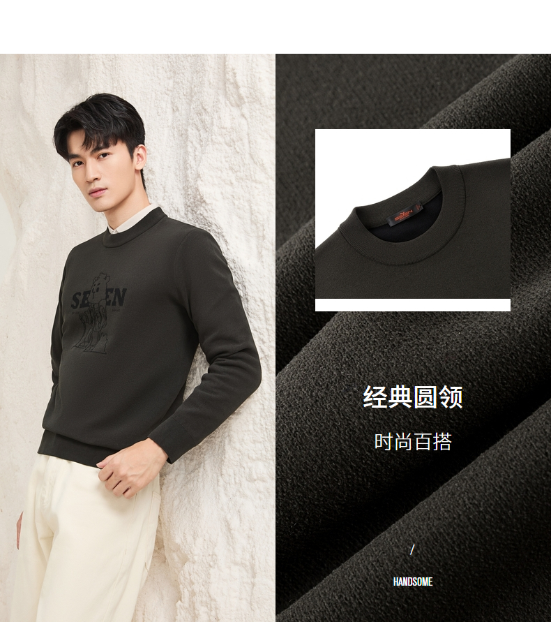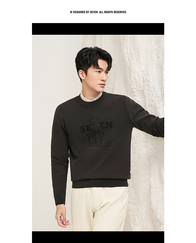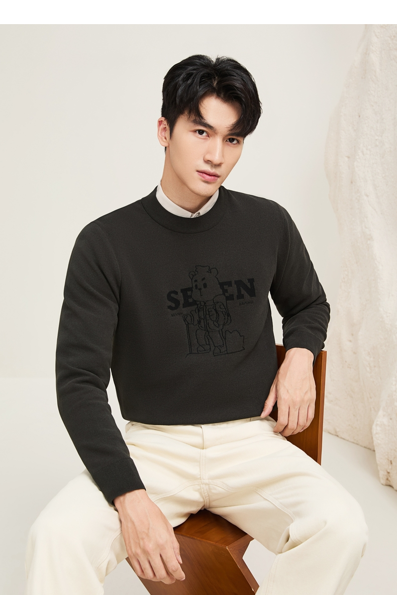【7A抗菌/含羊毛/羊绒】柒牌套头薄毛衫经典圆领弹力提花图案上衣129Y70580