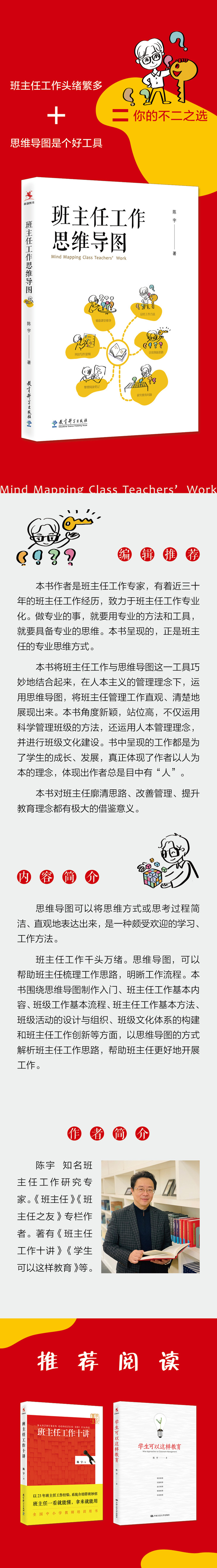 班主任工作千头万绪。思维导图,可以帮助班主任梳理工作思路,明晰工作流程。本书围绕思维导图制作入门、班主任工作基本内容、班级工作基本流程、班主任工作基本方法、班级活动的设计与组织、班级文化体系的构建和班主任工作创新等方面,以思维导图的方式解析班主任工作思路,帮助班主任更好地开展工作。