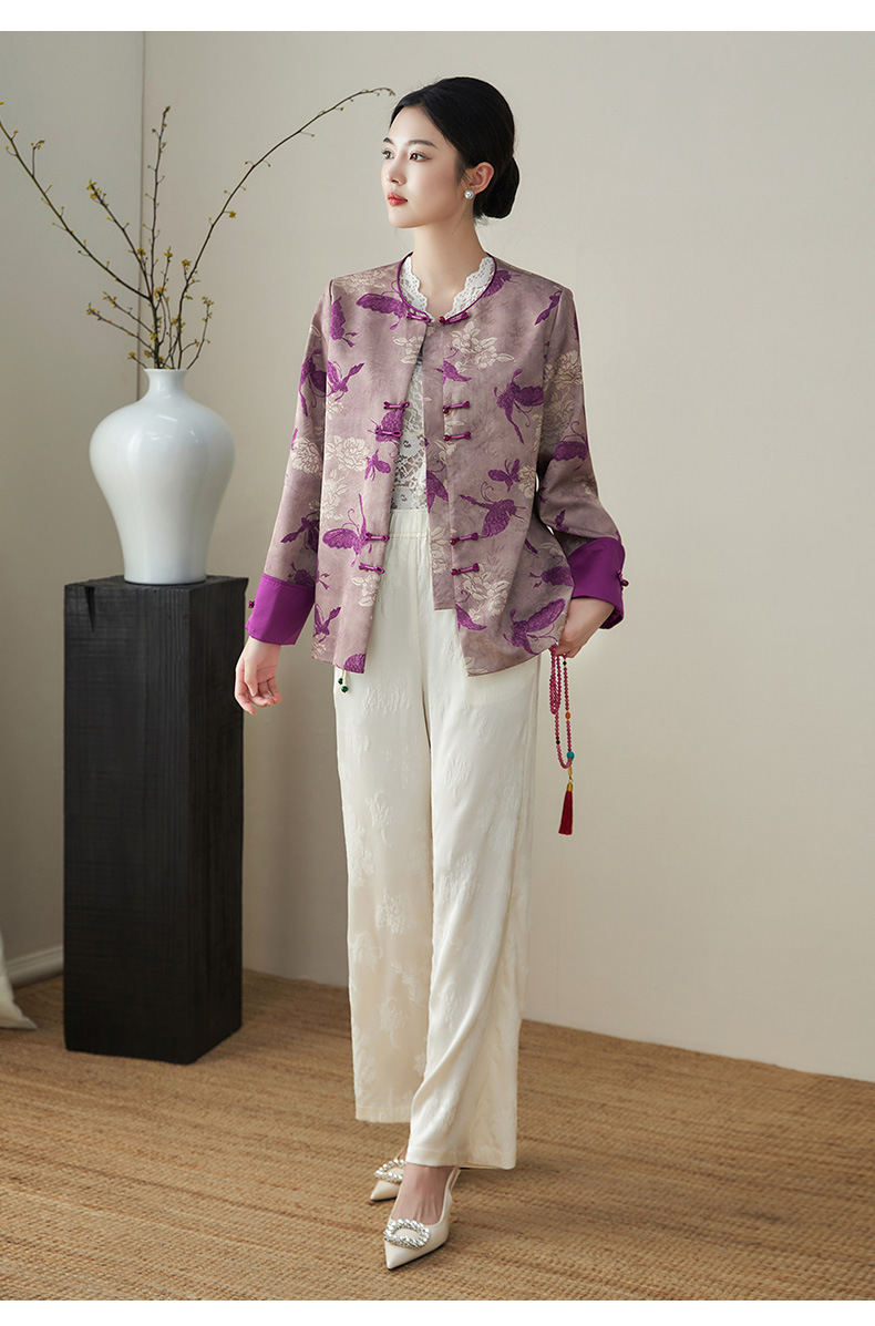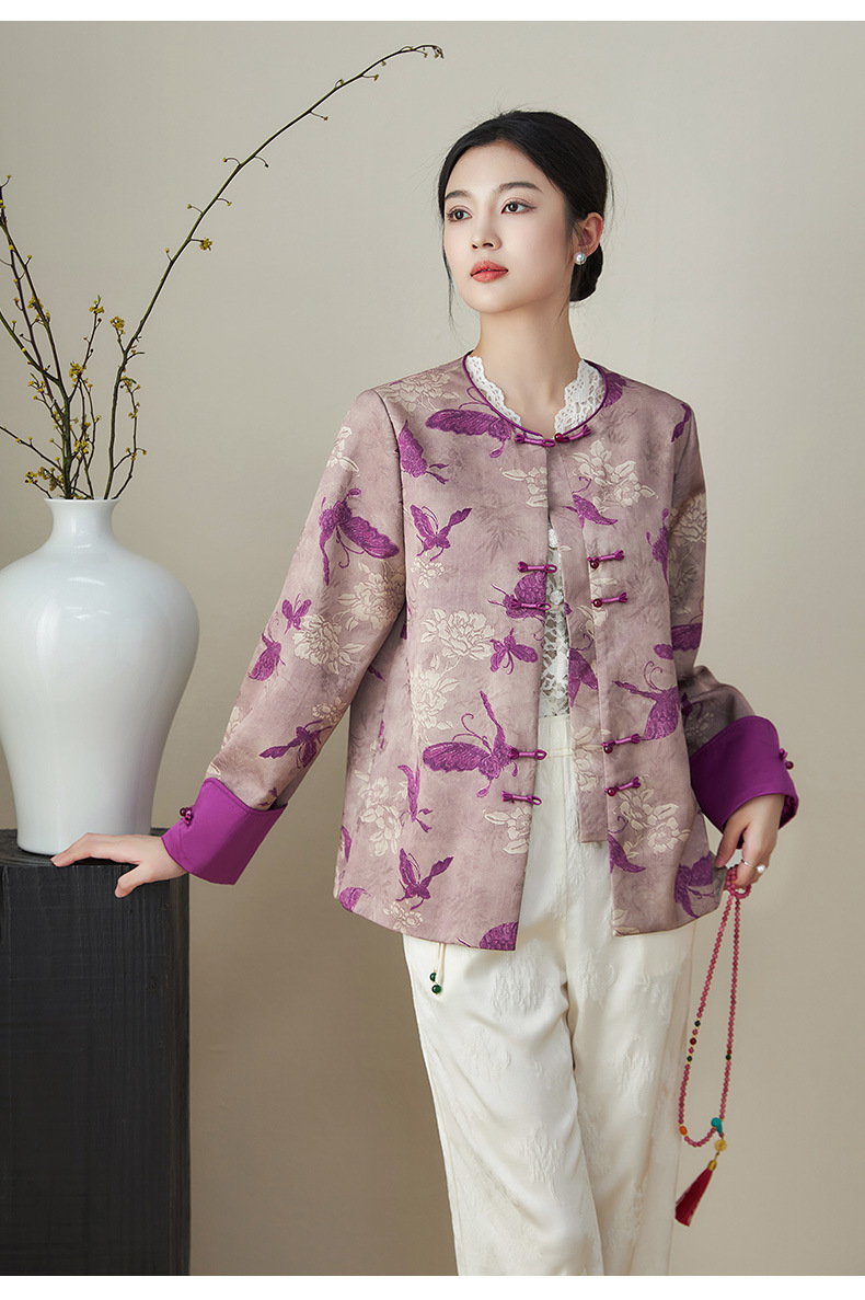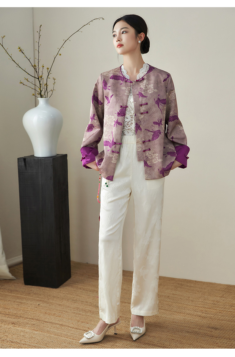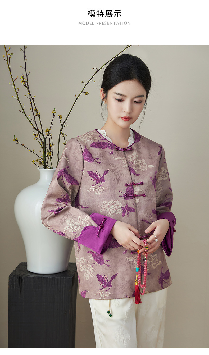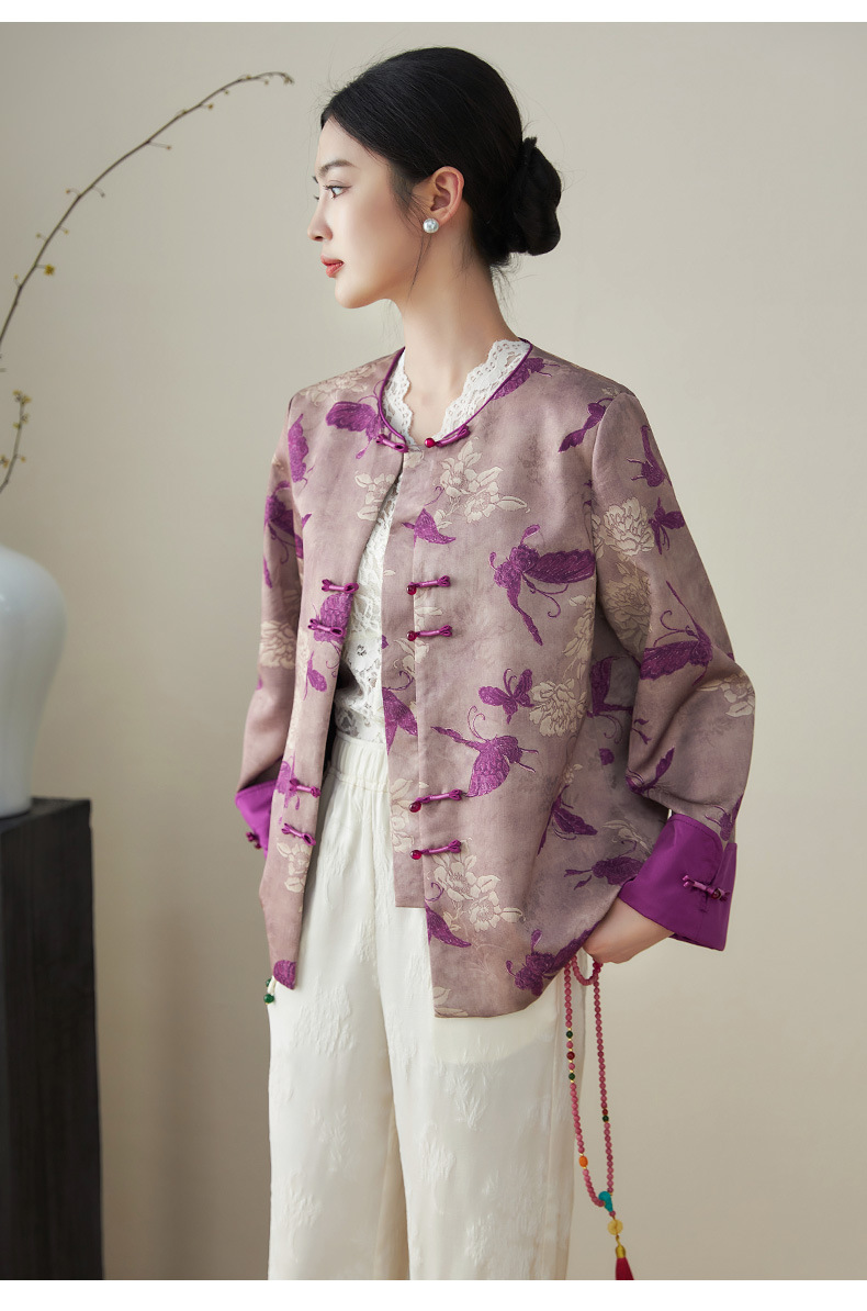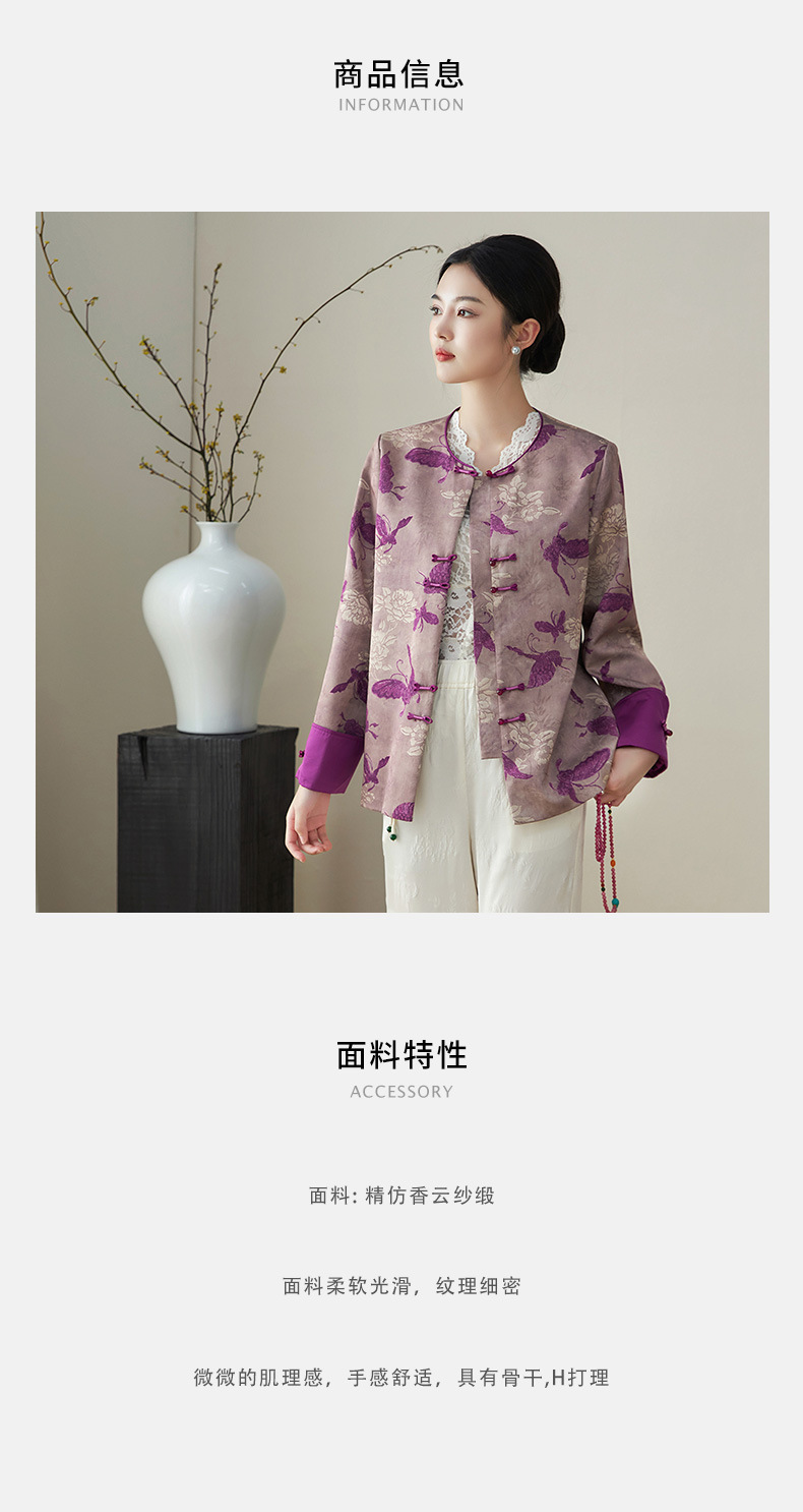 复古新中式国风,提花唐装精仿香云纱外套WLZD-2411101