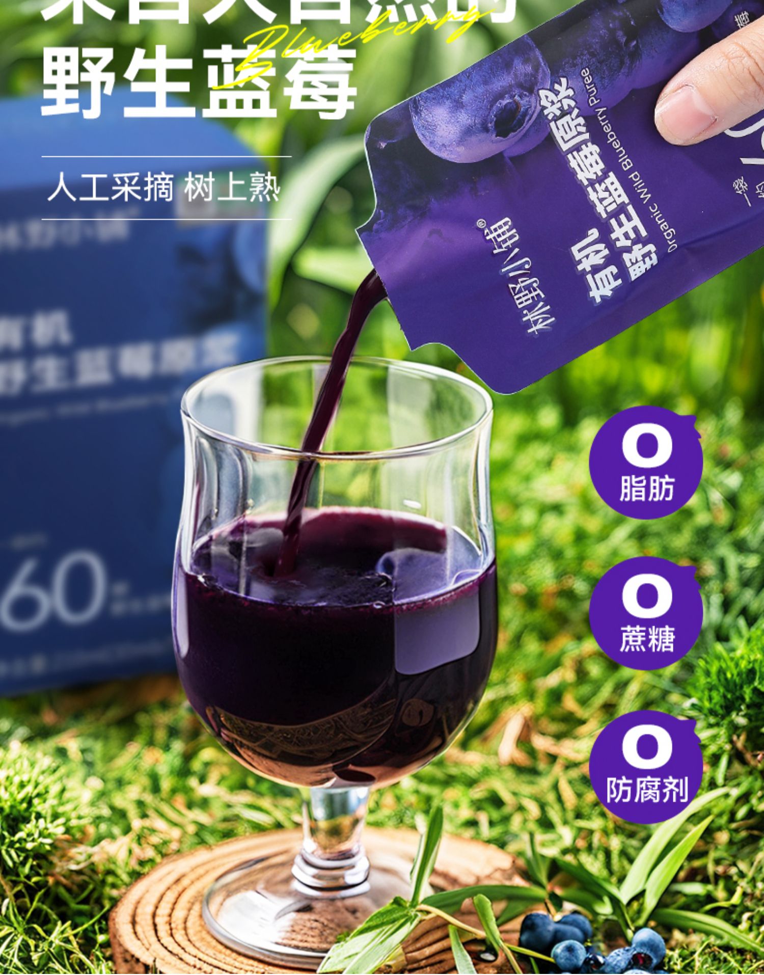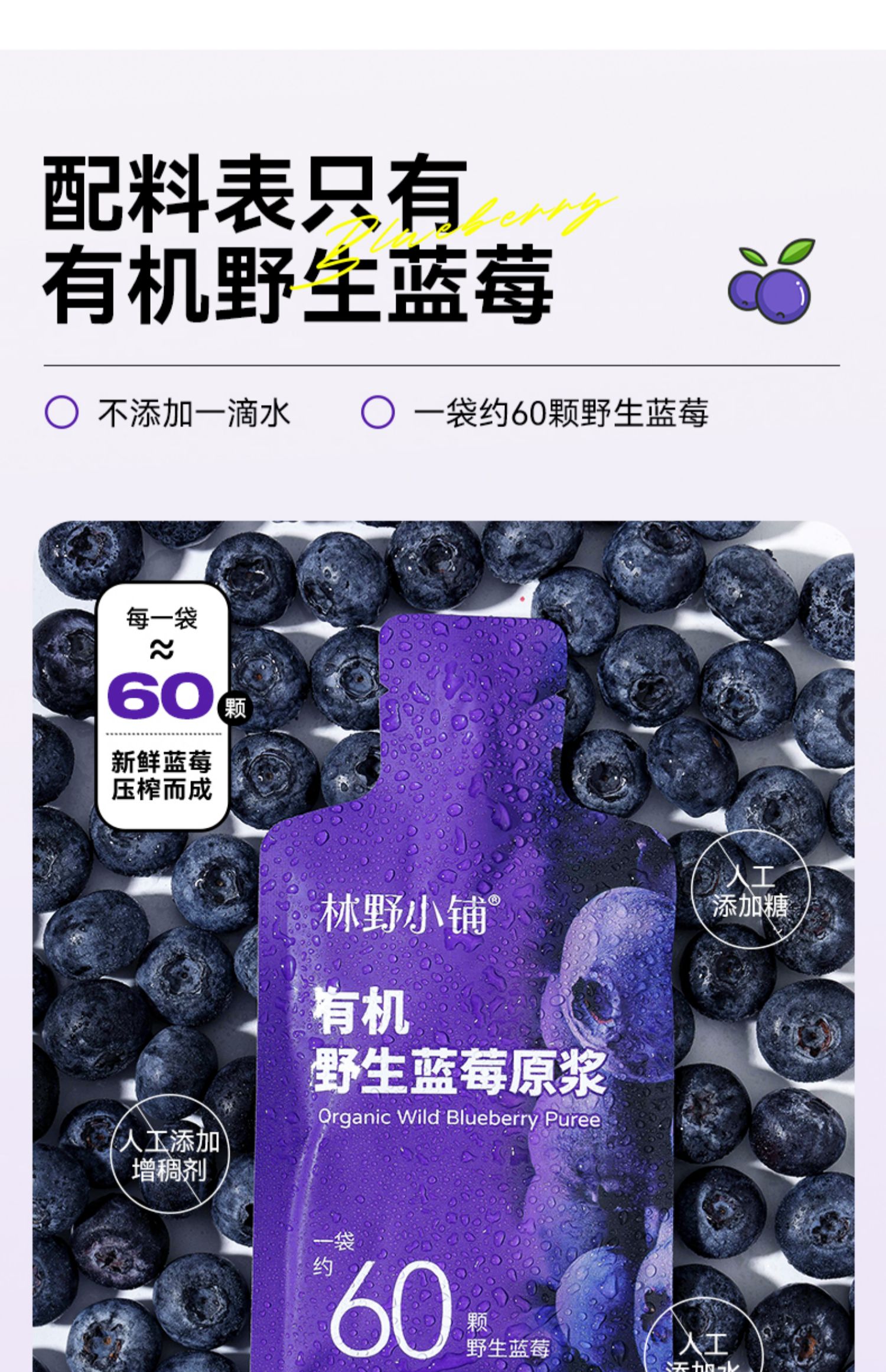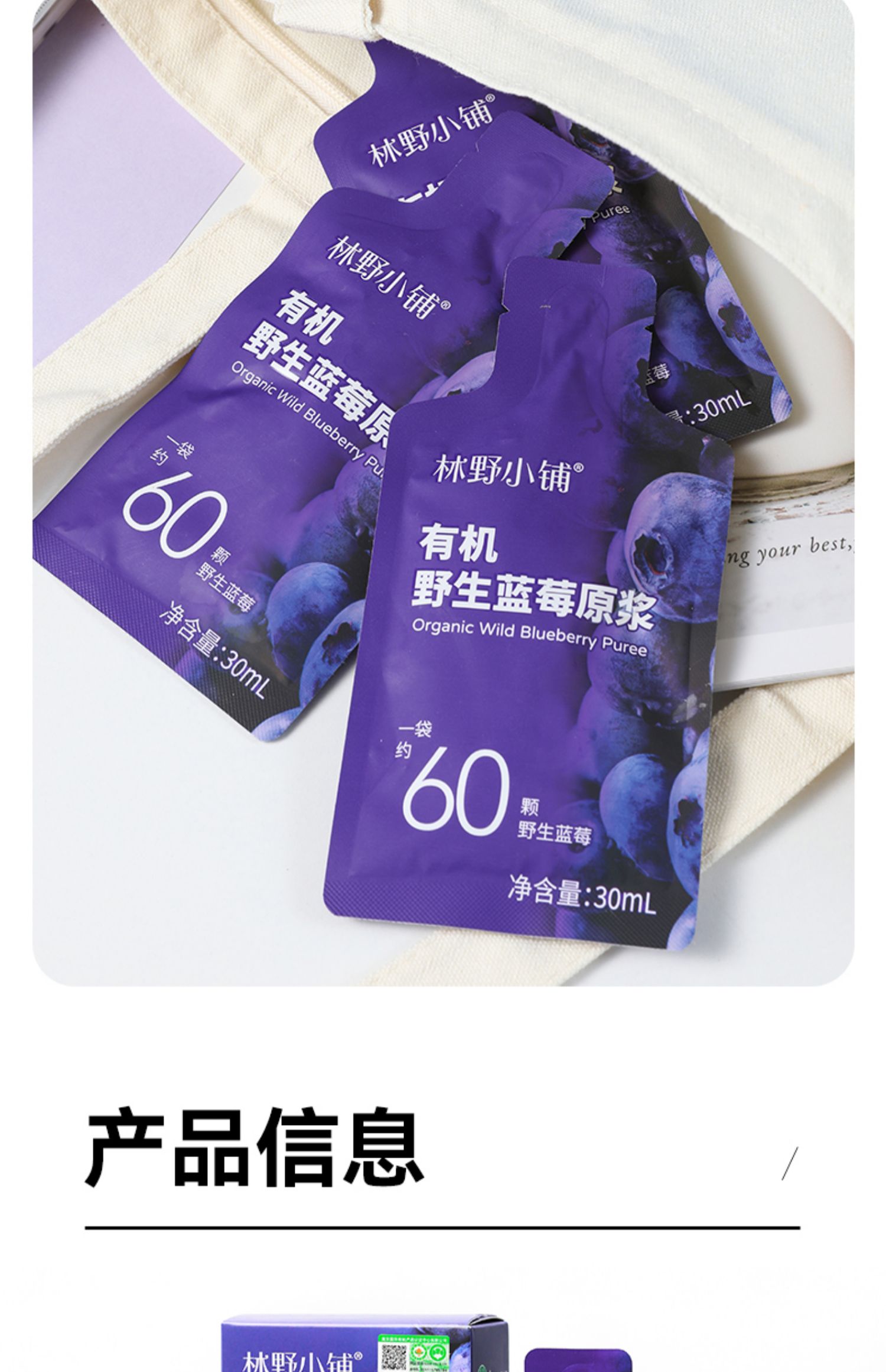 【小蓝袋】有机野生蓝莓原浆 大兴安岭蓝莓全果鲜榨30ml*7袋便携装