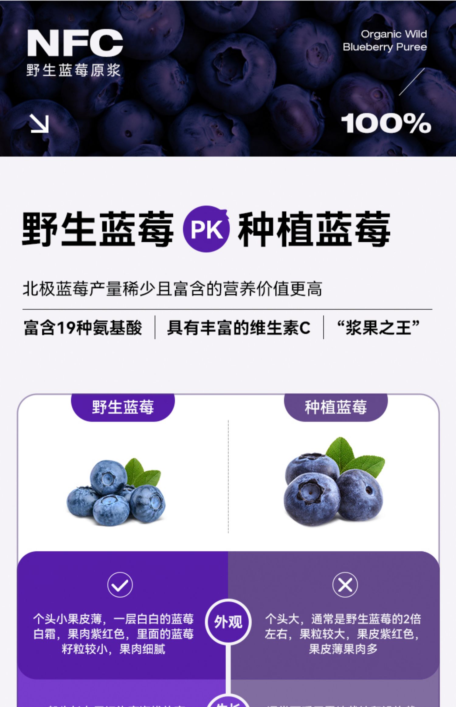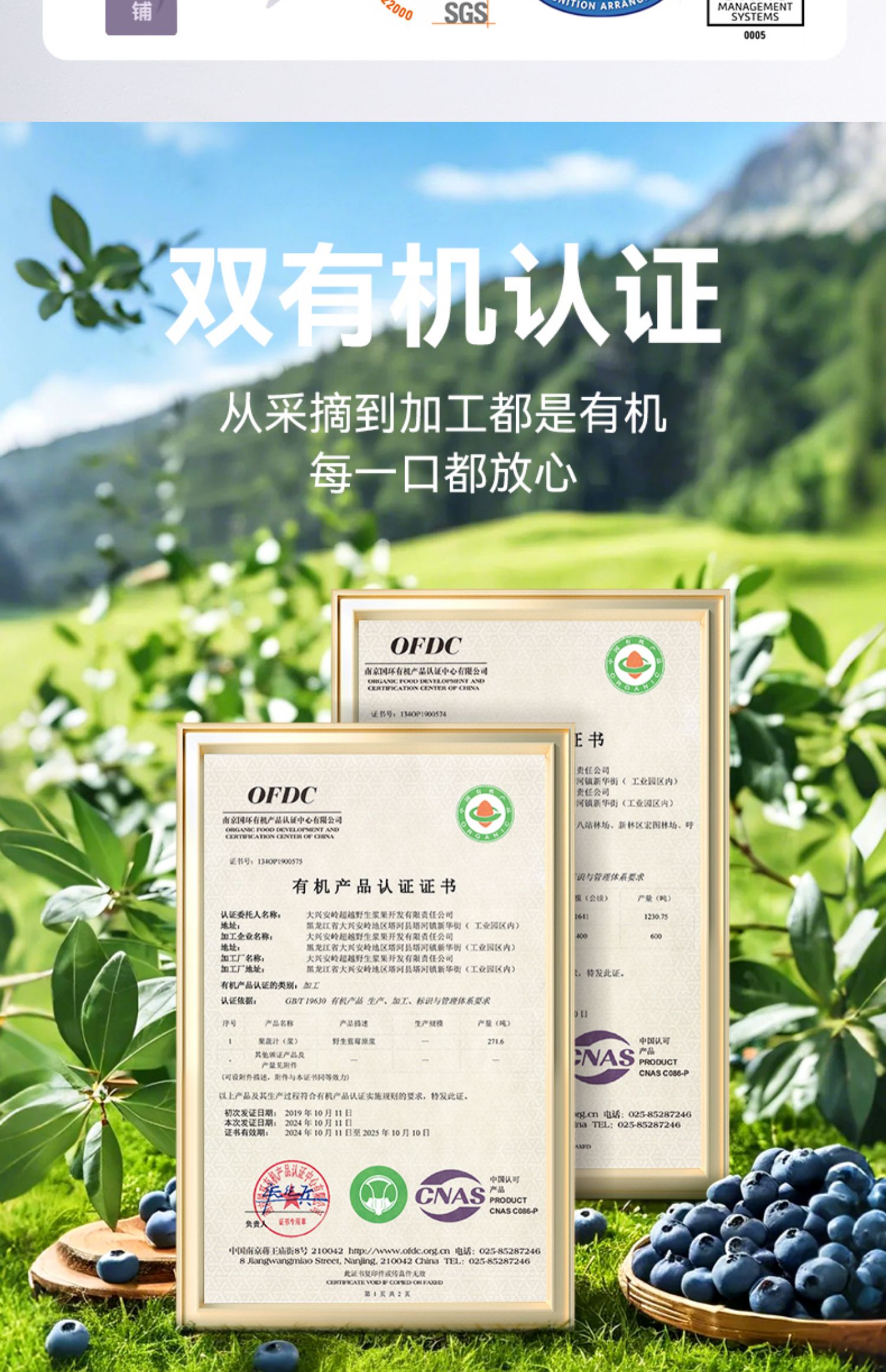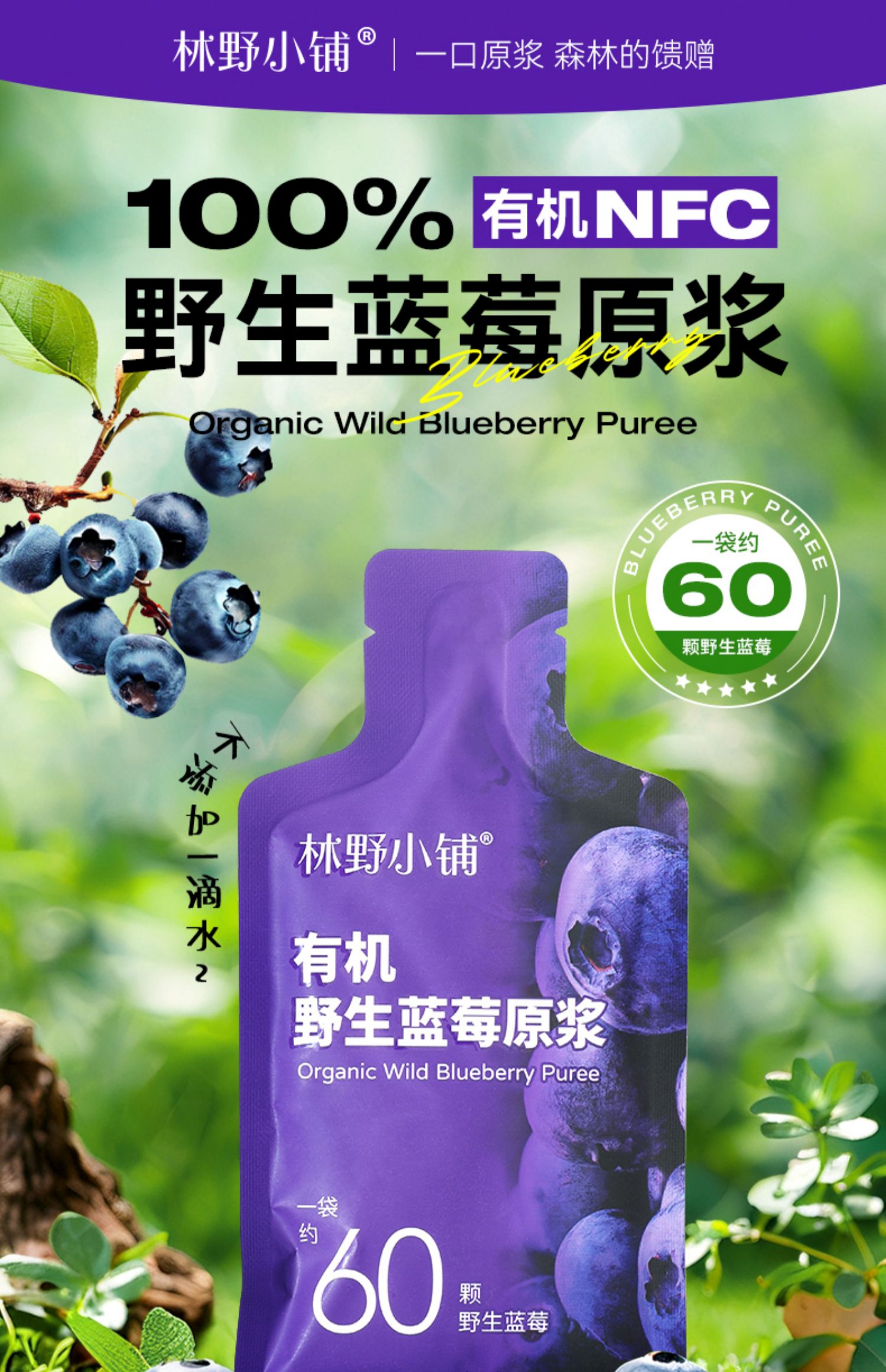 【小蓝袋】有机野生蓝莓原浆 大兴安岭蓝莓全果鲜榨30ml*7袋便携装