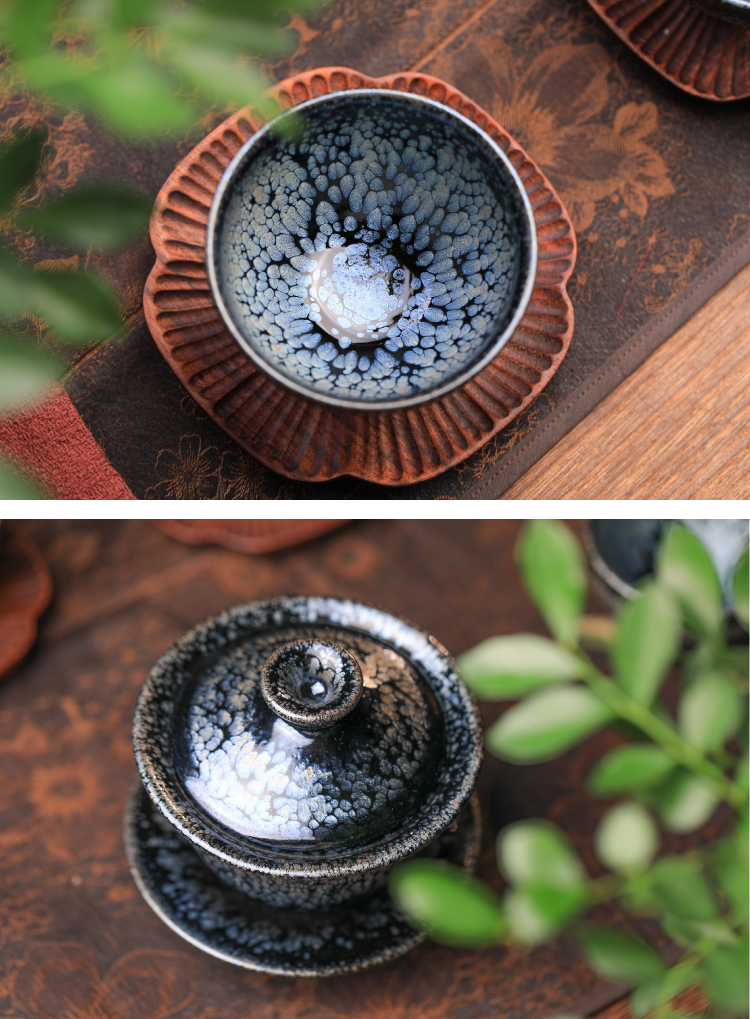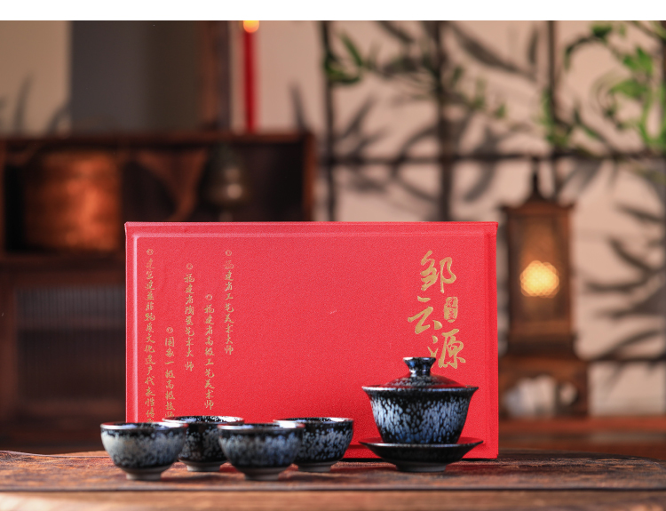 霸气龙年·福瑞祥至 | 非遗大师亲制龙纹银油滴建盏套组,腾龙飞舞,新年买龙纹,讨个好彩头