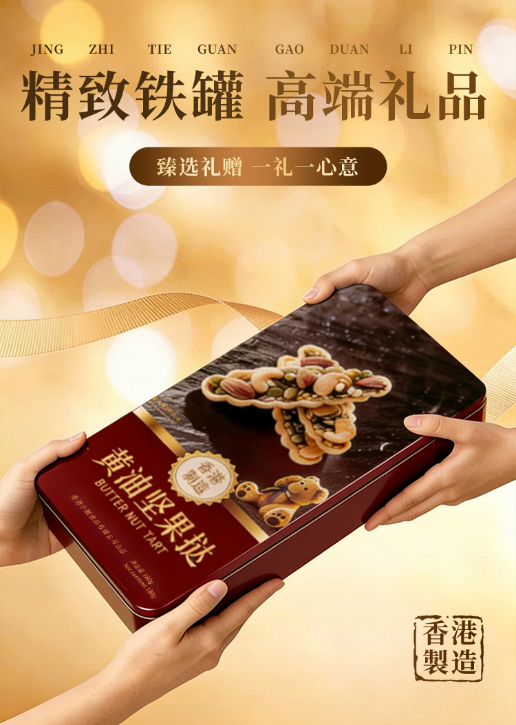 【疯狂星期五】Rene Little Bear 香港小熊 黄油坚果挞 180g 赠流心蛋卷一盒(口味随机)+礼袋1个