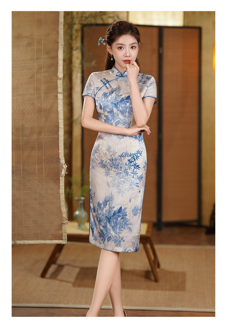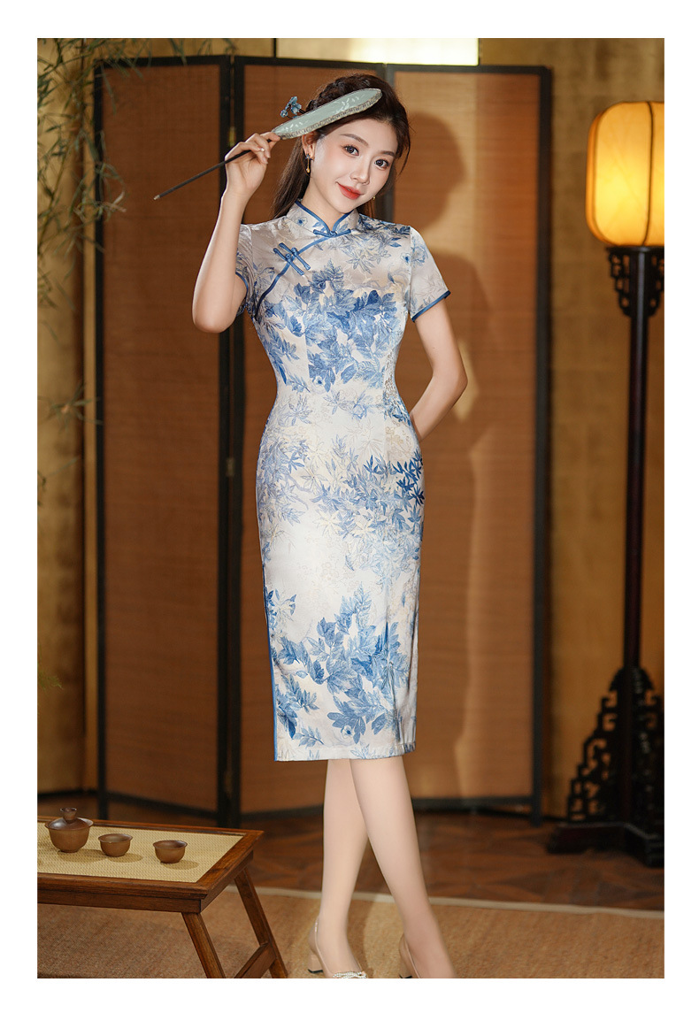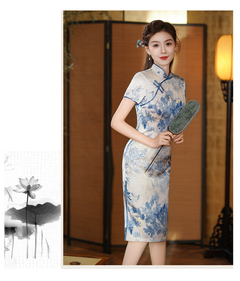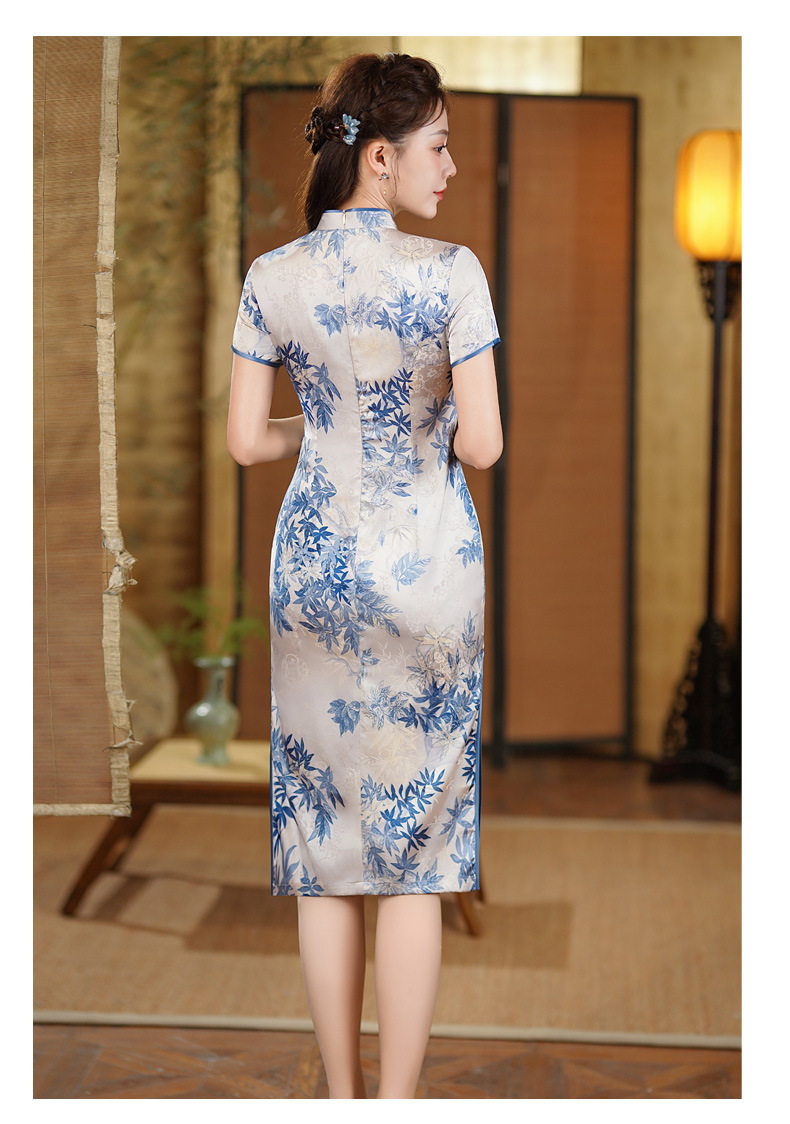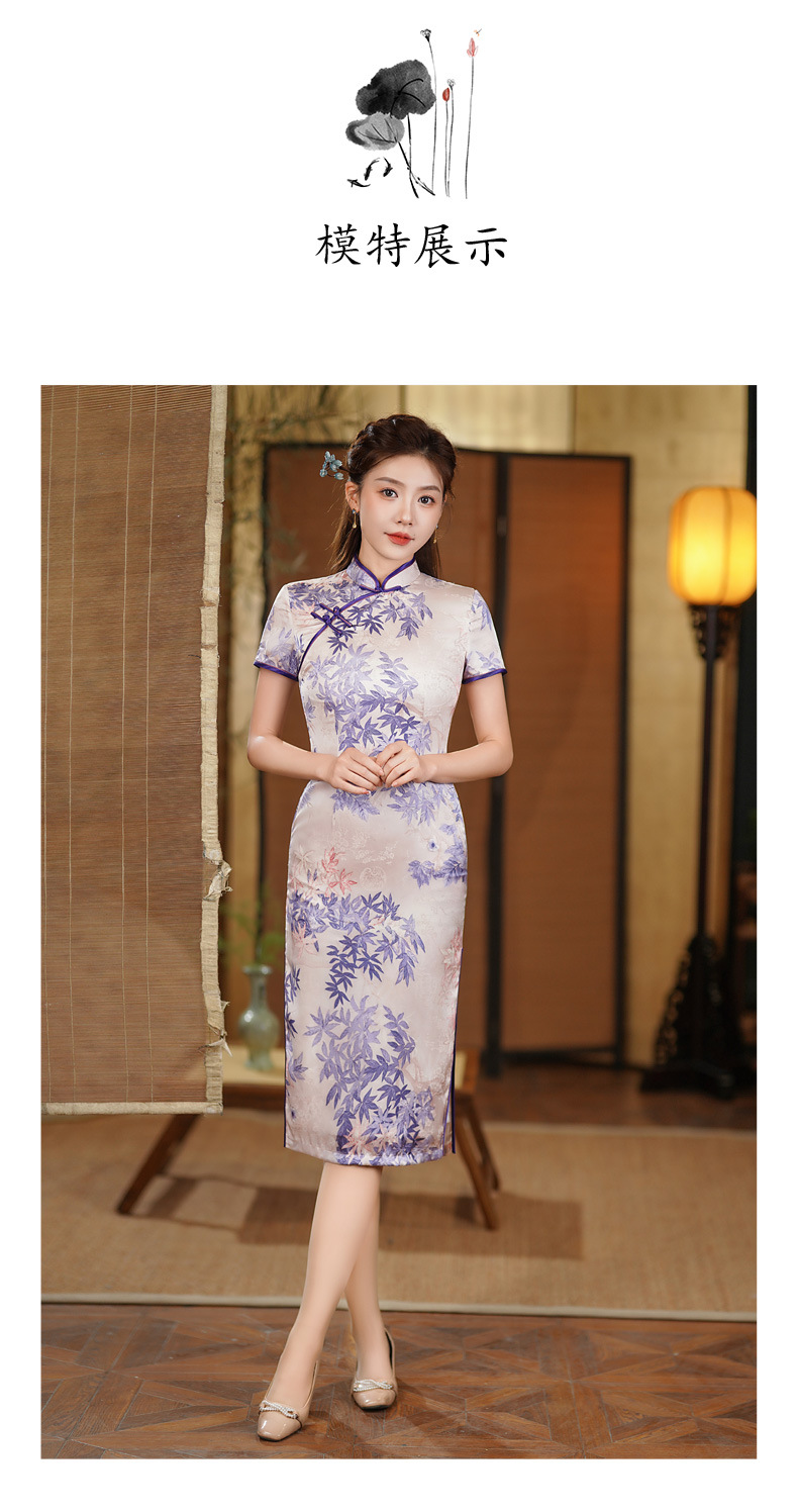夏季新款,年轻款女复古日常妈妈装小个子连衣裙中长款改良旗袍GSJ-812