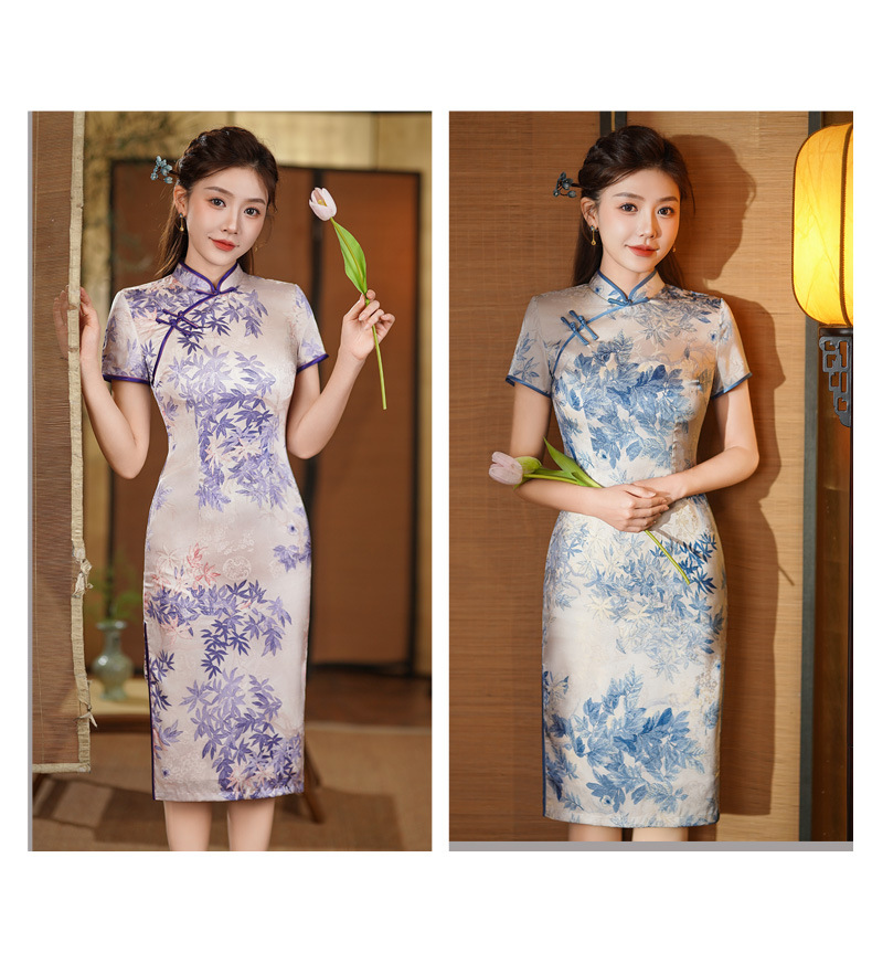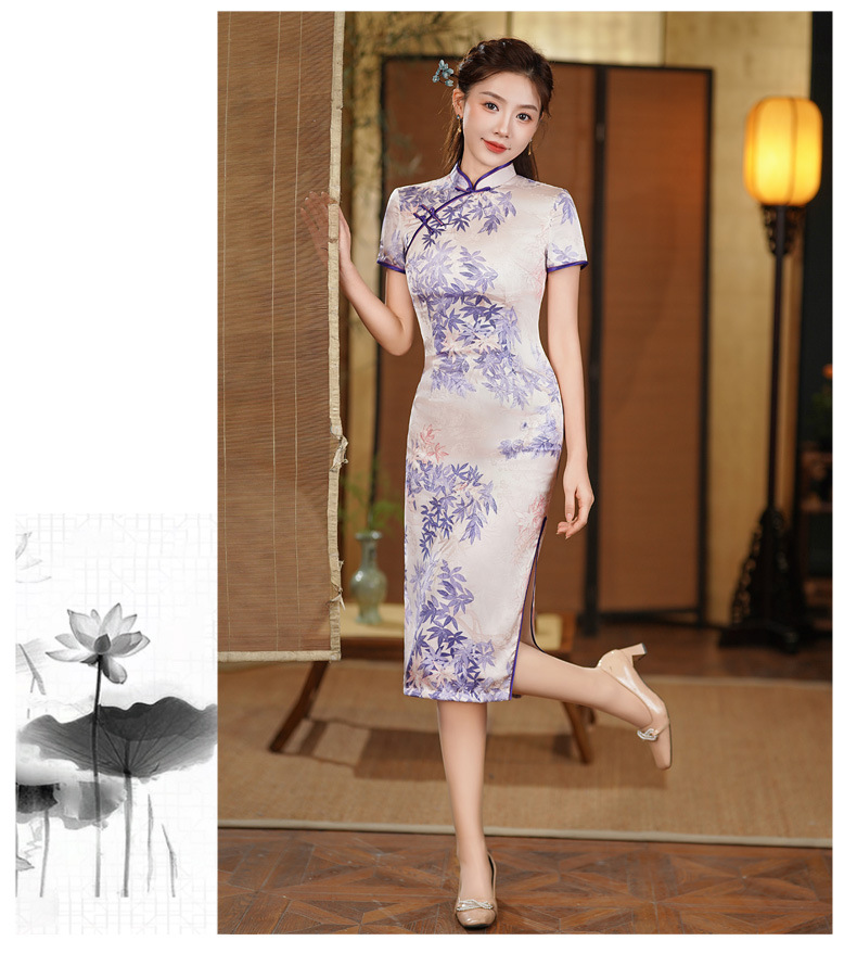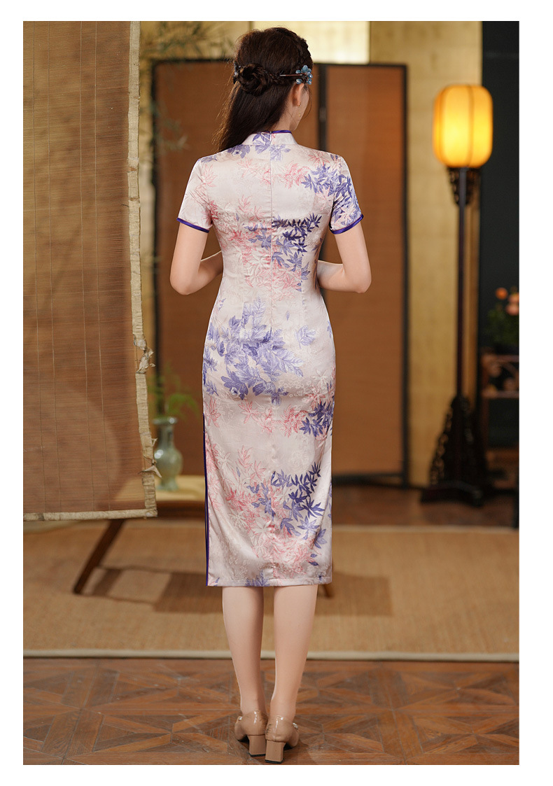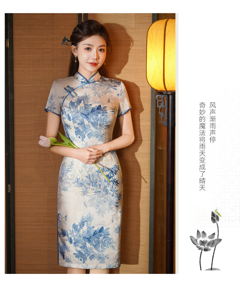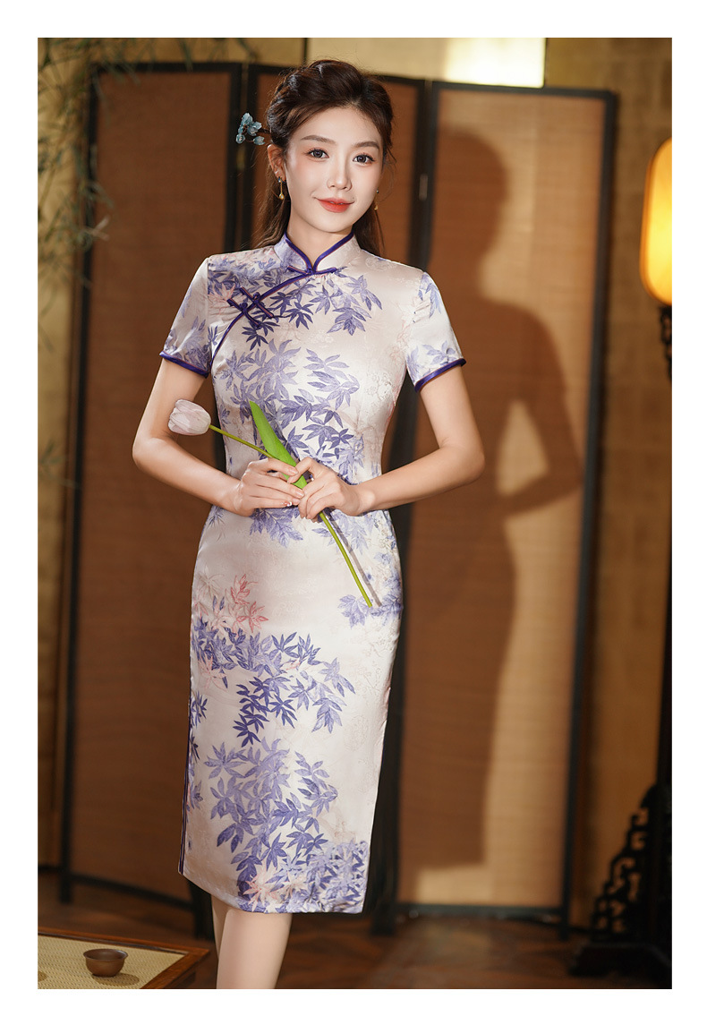 夏季新款,年轻款女复古日常妈妈装小个子连衣裙中长款改良旗袍GSJ-812