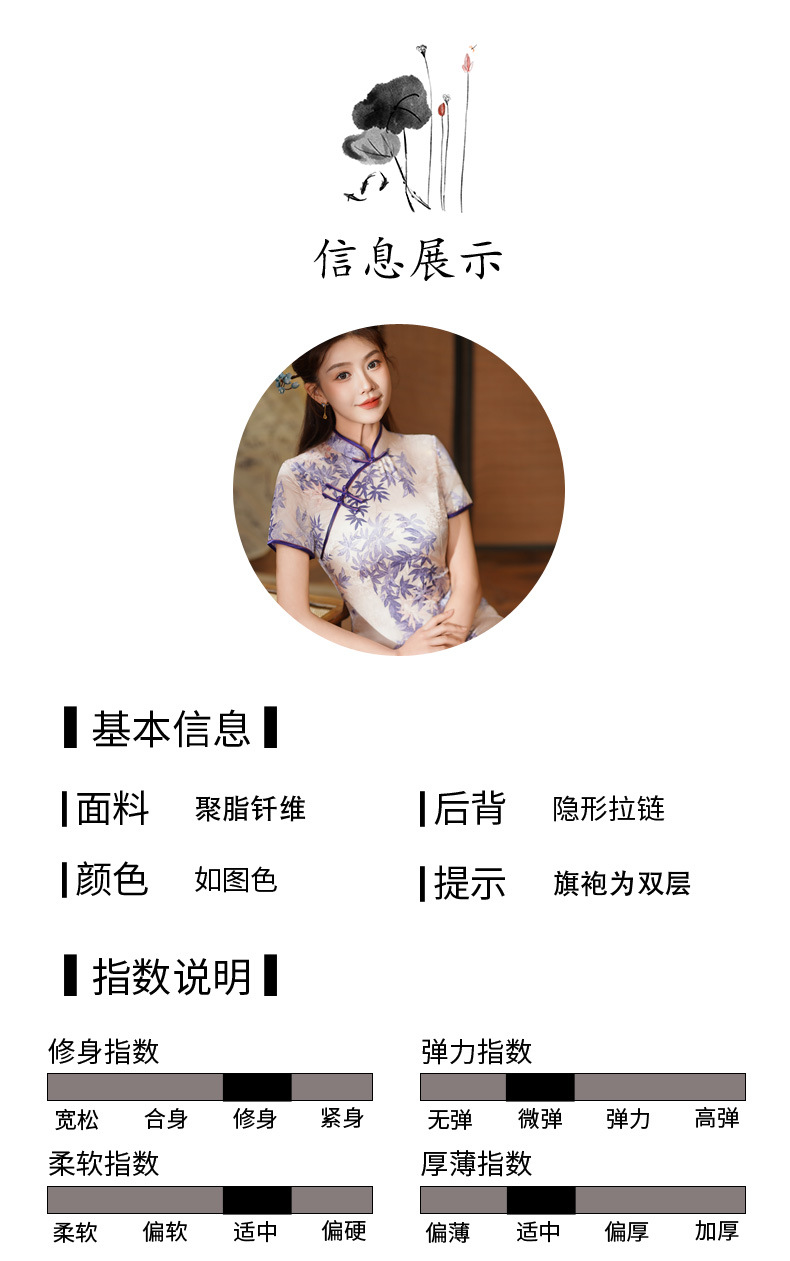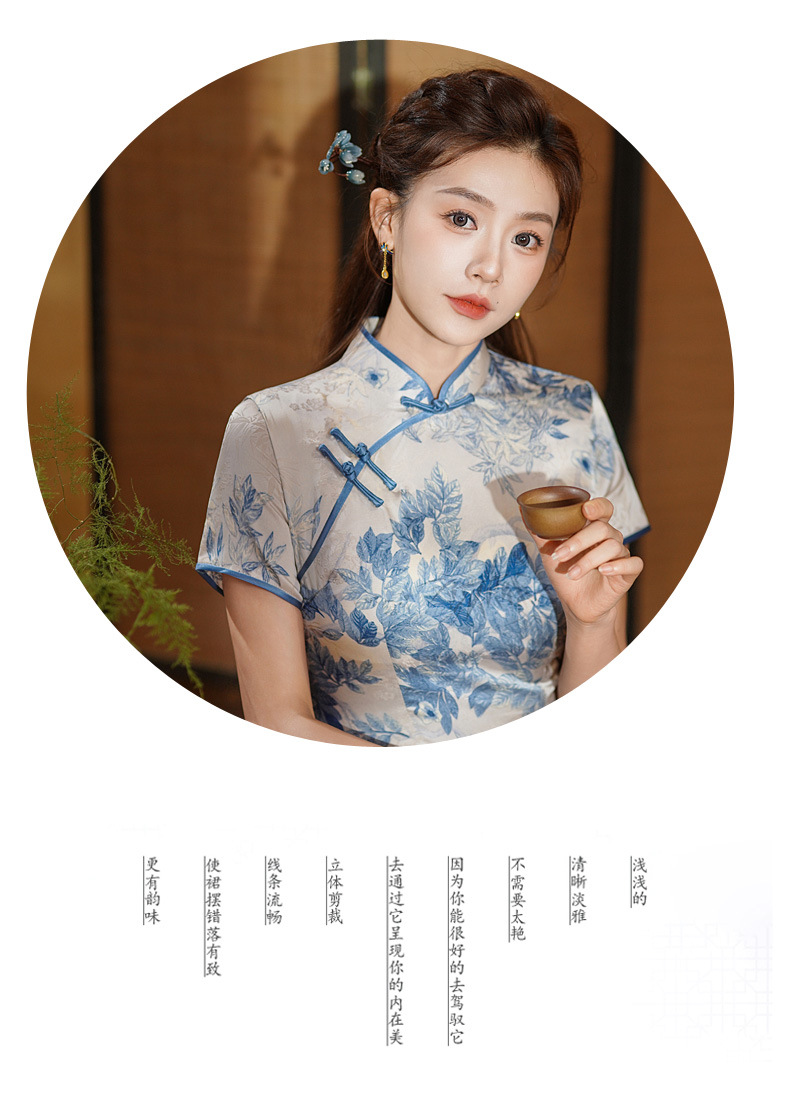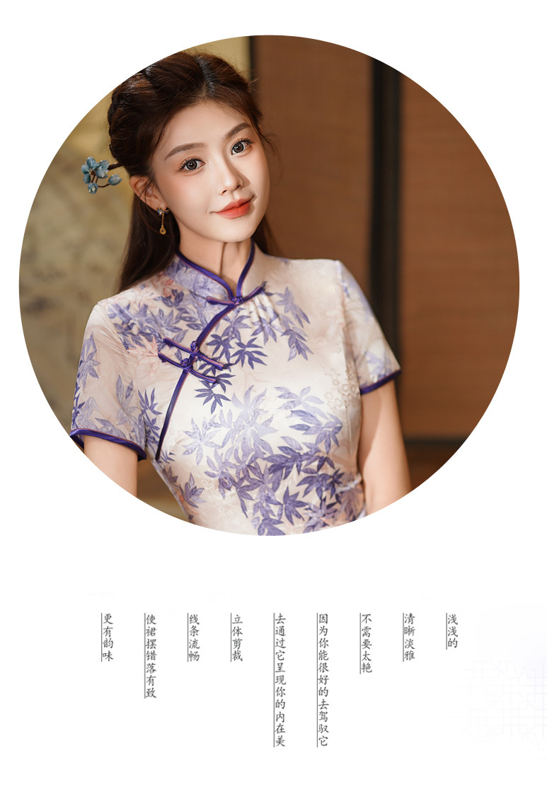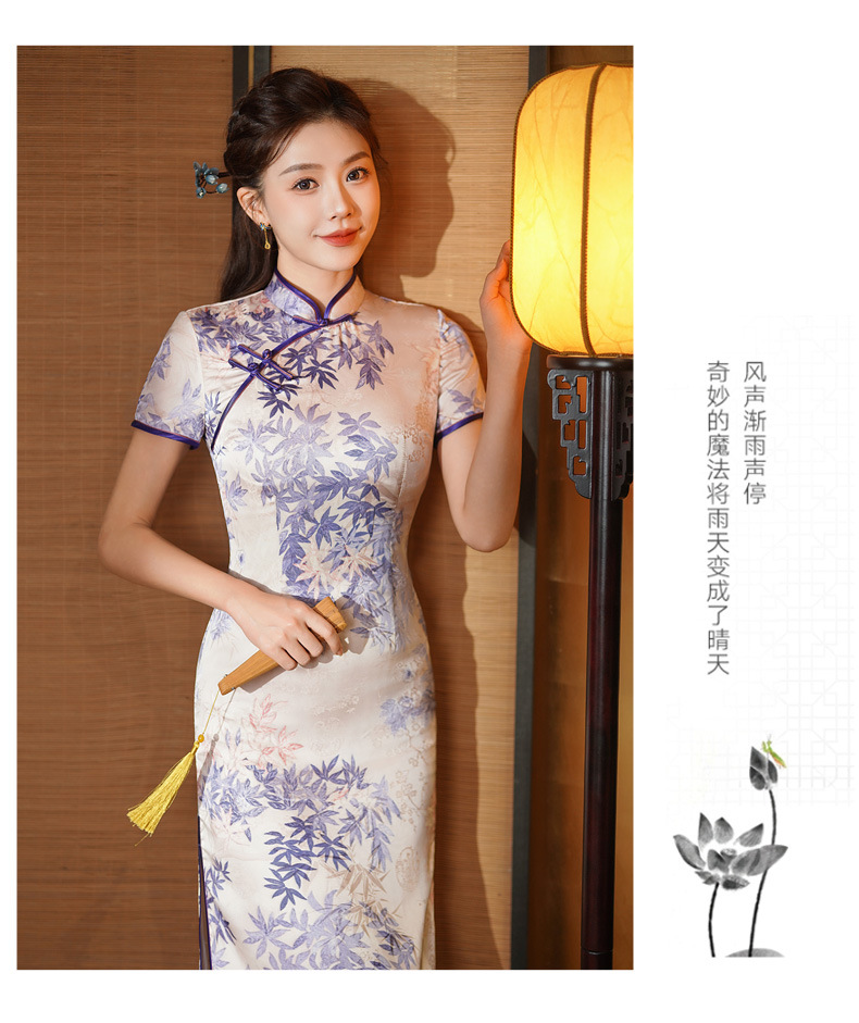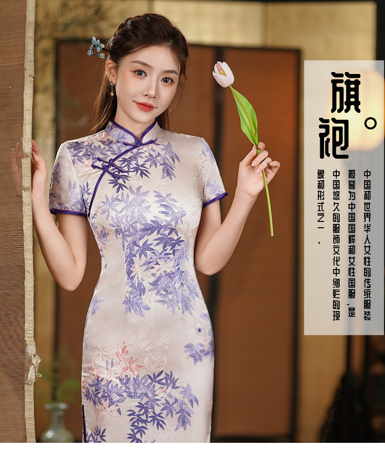 夏季新款,年轻款女复古日常妈妈装小个子连衣裙中长款改良旗袍GSJ-812