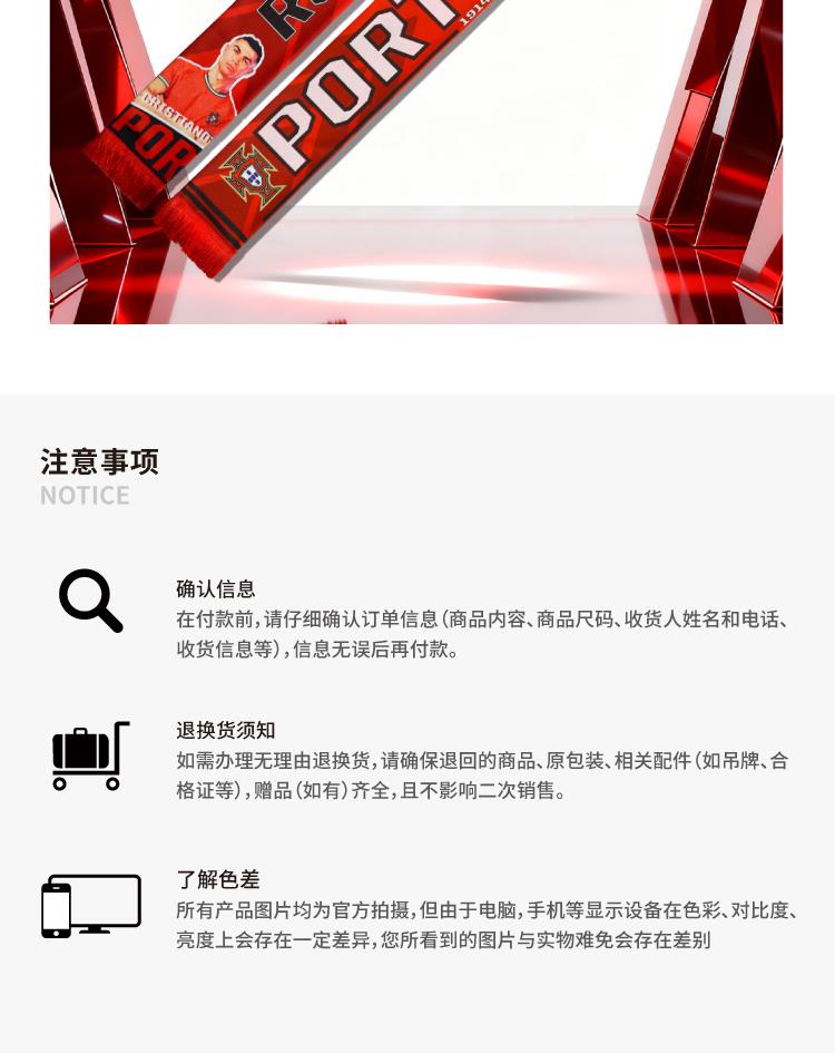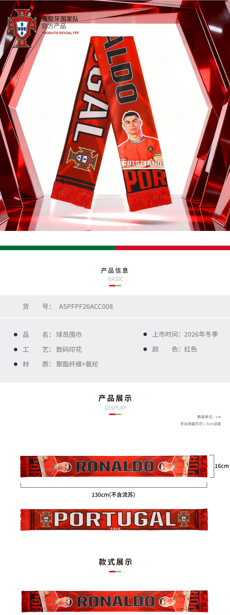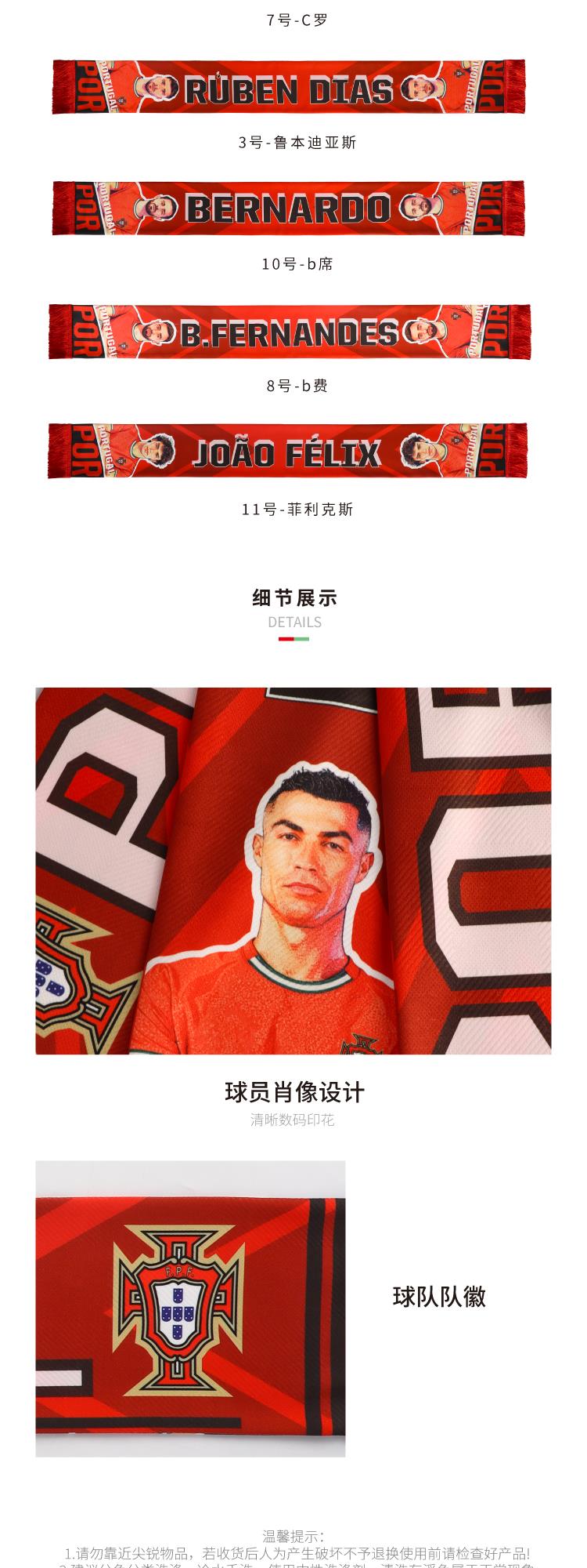 【官方正版】葡萄牙国家队 | 球员围巾C罗助威围巾球迷周边