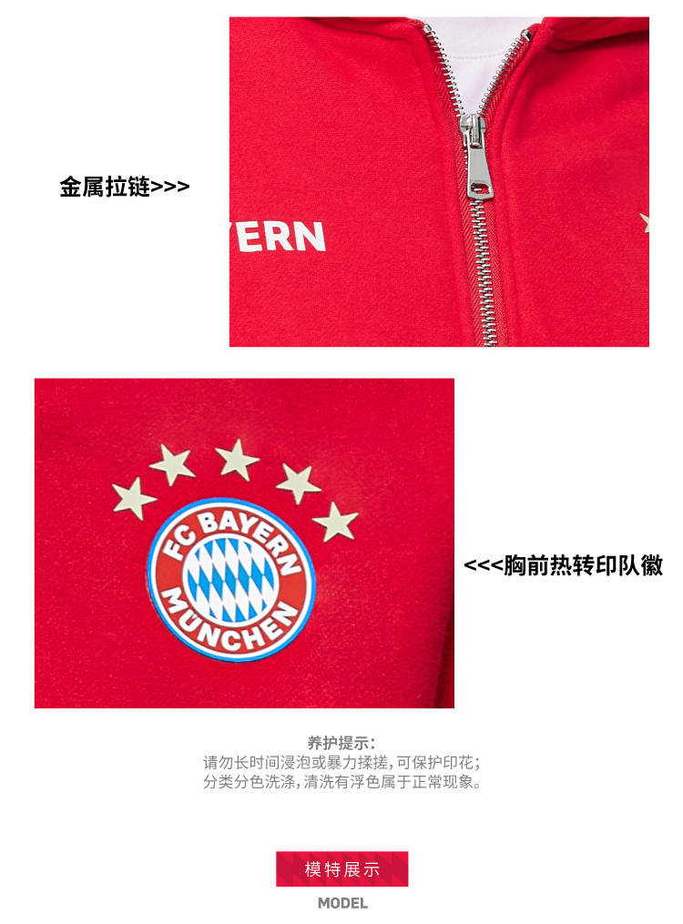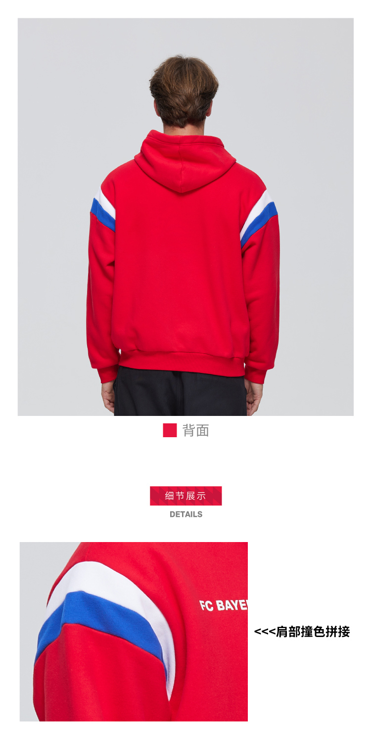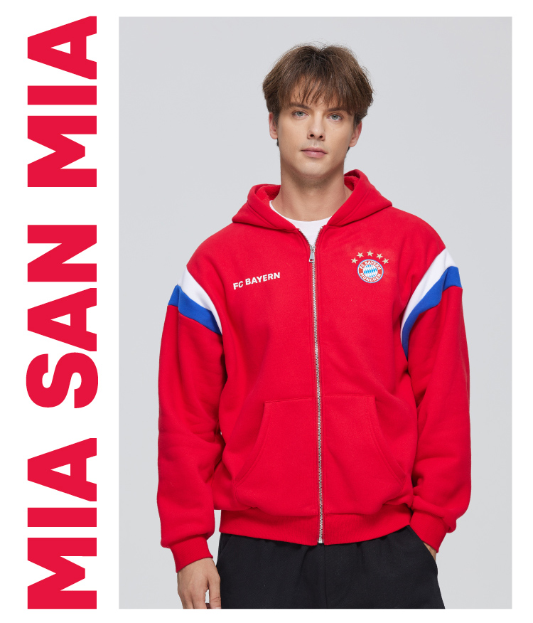 【官方正版】拜仁慕尼黑足球俱乐部 |红色拼接加绒连帽外套运动休闲