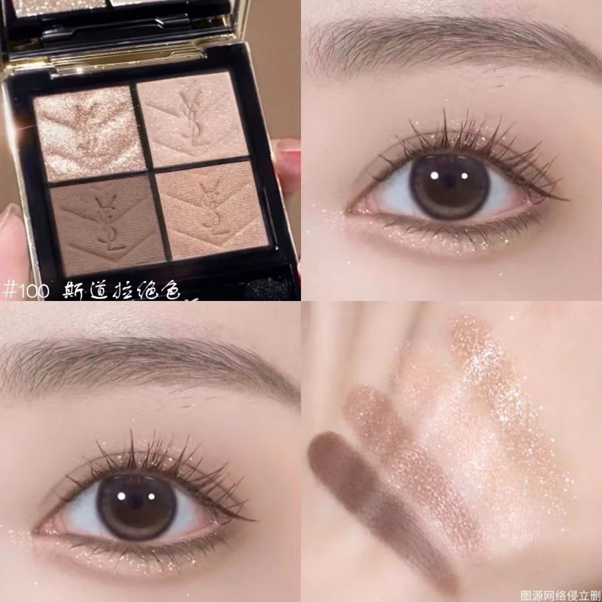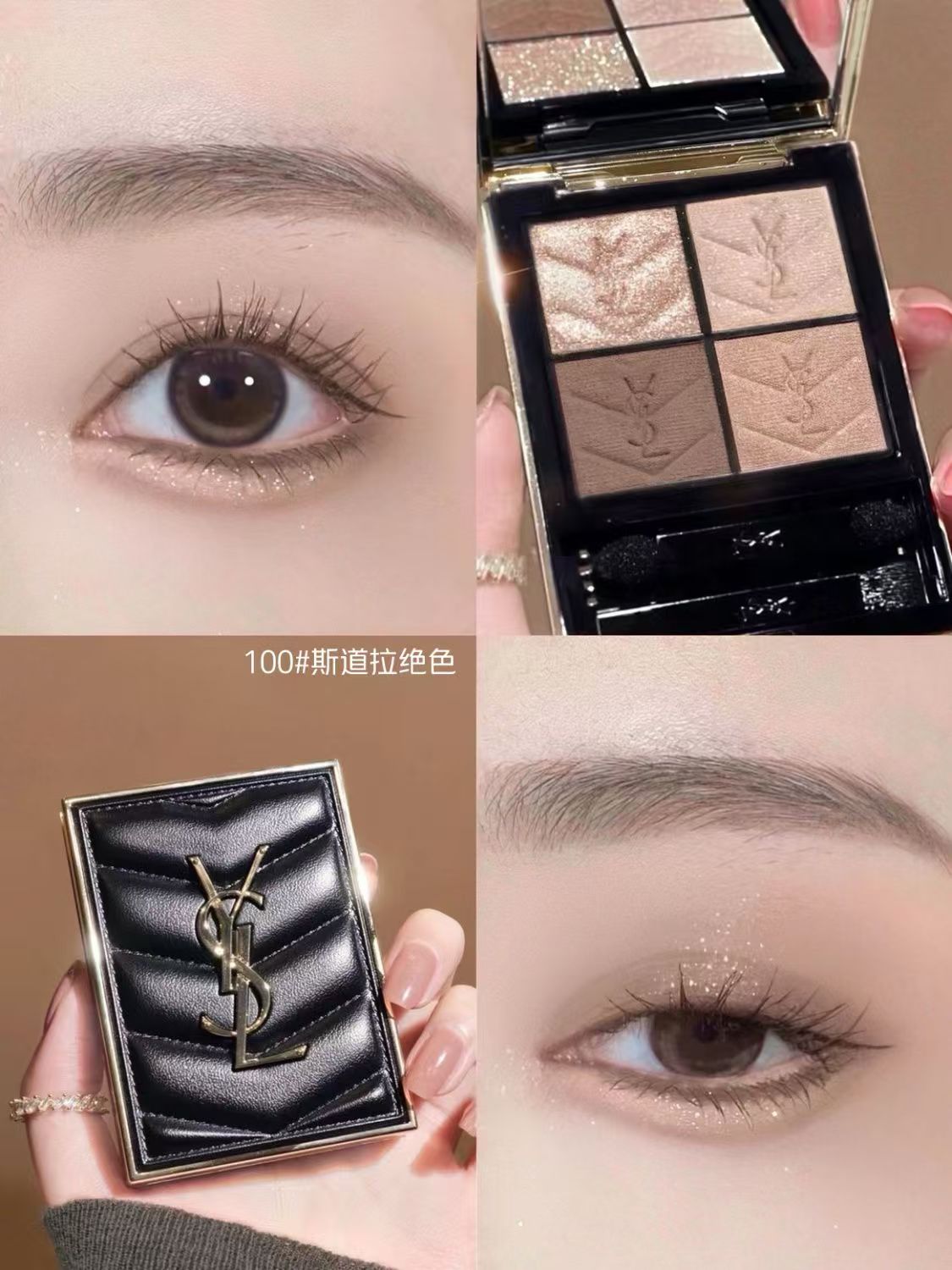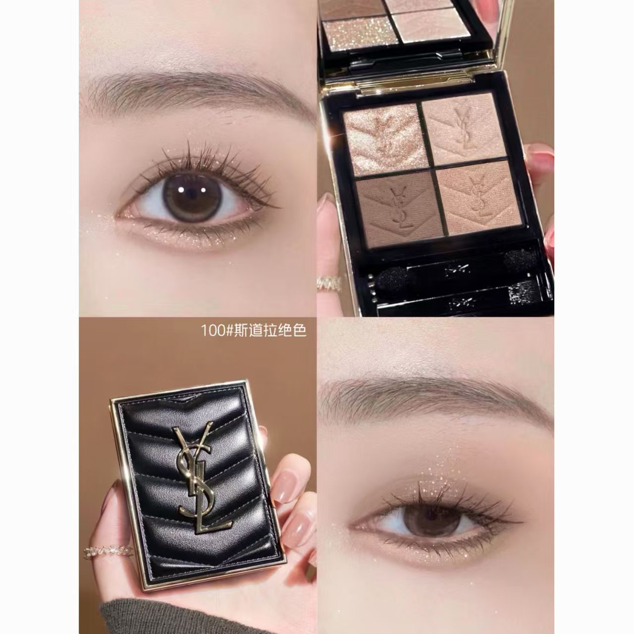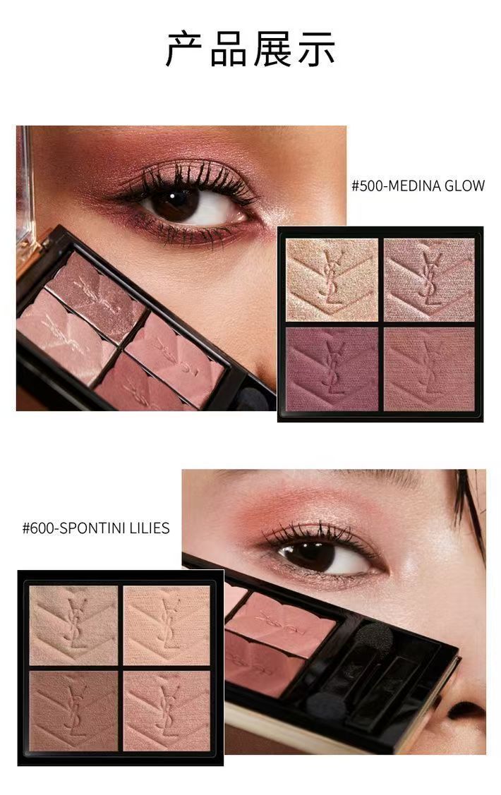 【品牌授权】YSL圣罗兰黑色皮革眼影四色眼影盘 #500摩洛哥琉光 #100斯道拉绝色 哑光锻光
