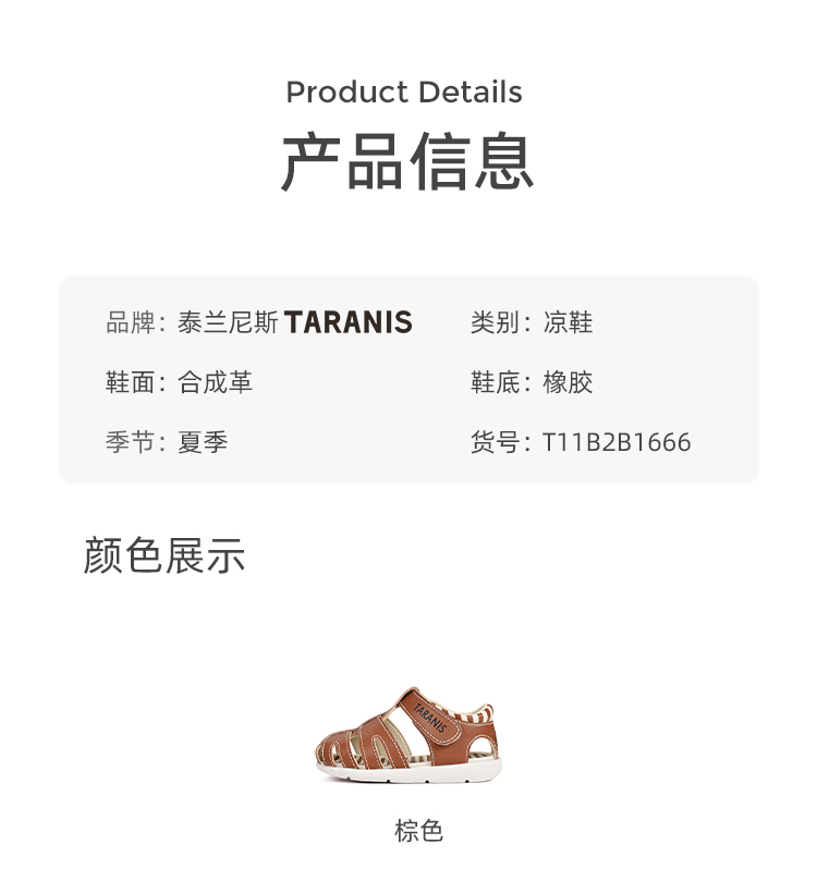 泰兰尼斯夏季婴童段时尚镂空皮凉鞋T11B2B1666