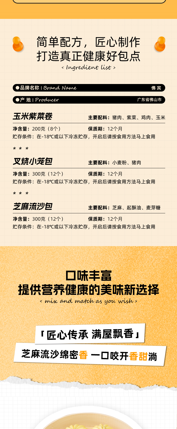 【佛宾会员特惠】尝鲜组合套餐玉米紫菜卷叉烧小笼包芝麻流沙包