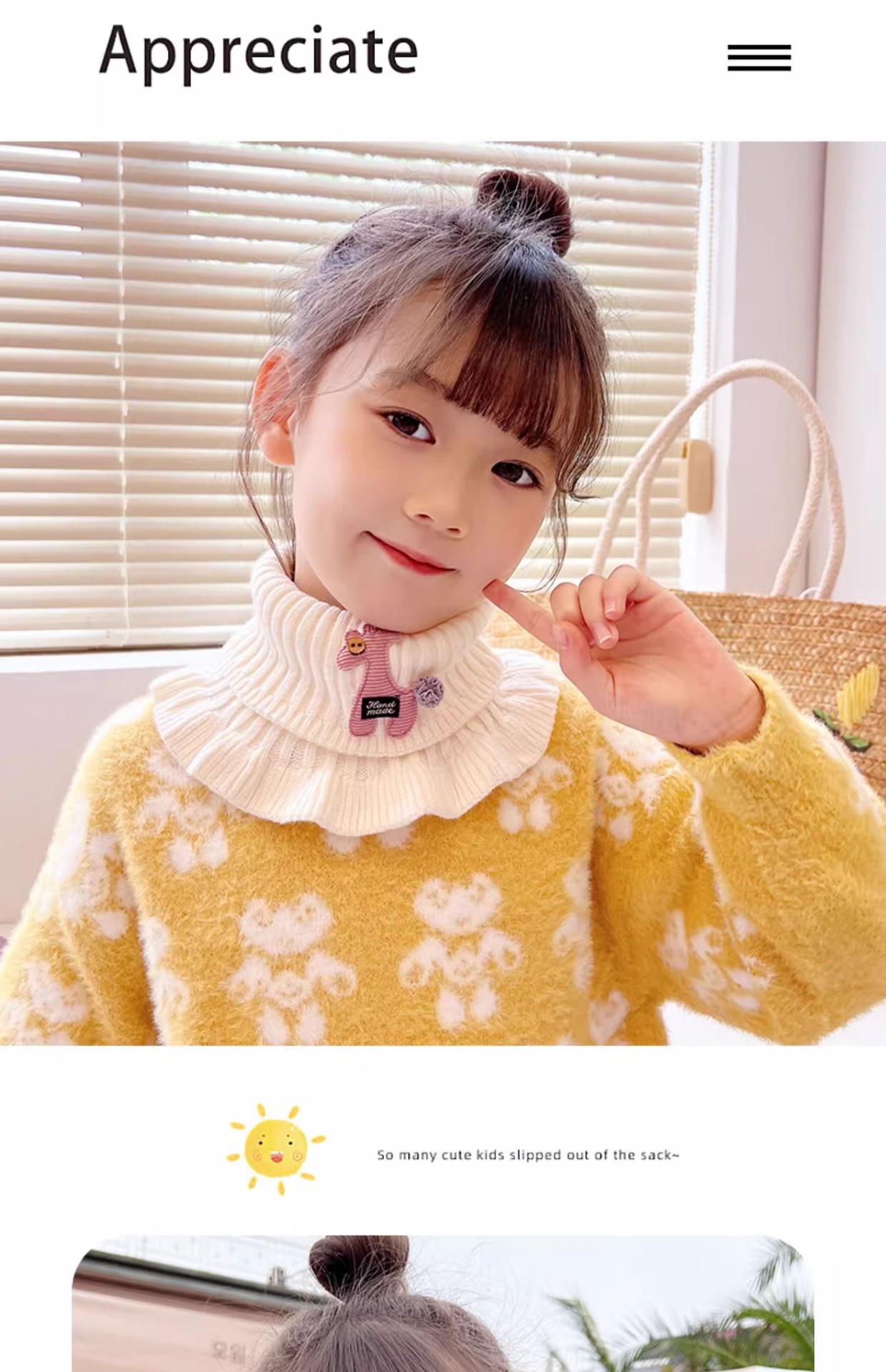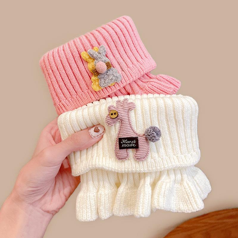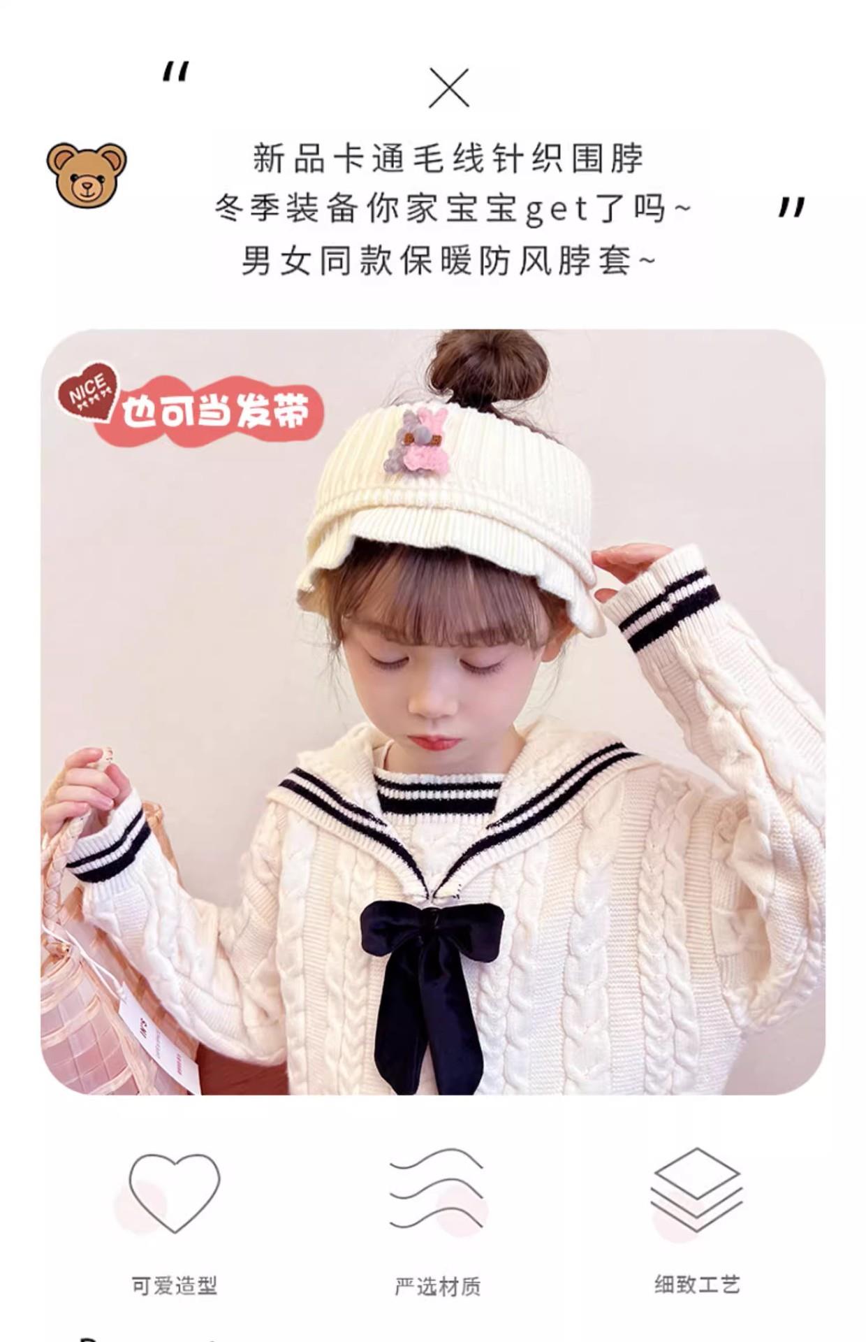 儿童围脖冬儿童围巾针织保暖脖套男女孩围巾花边防护颈巾针织围脖
