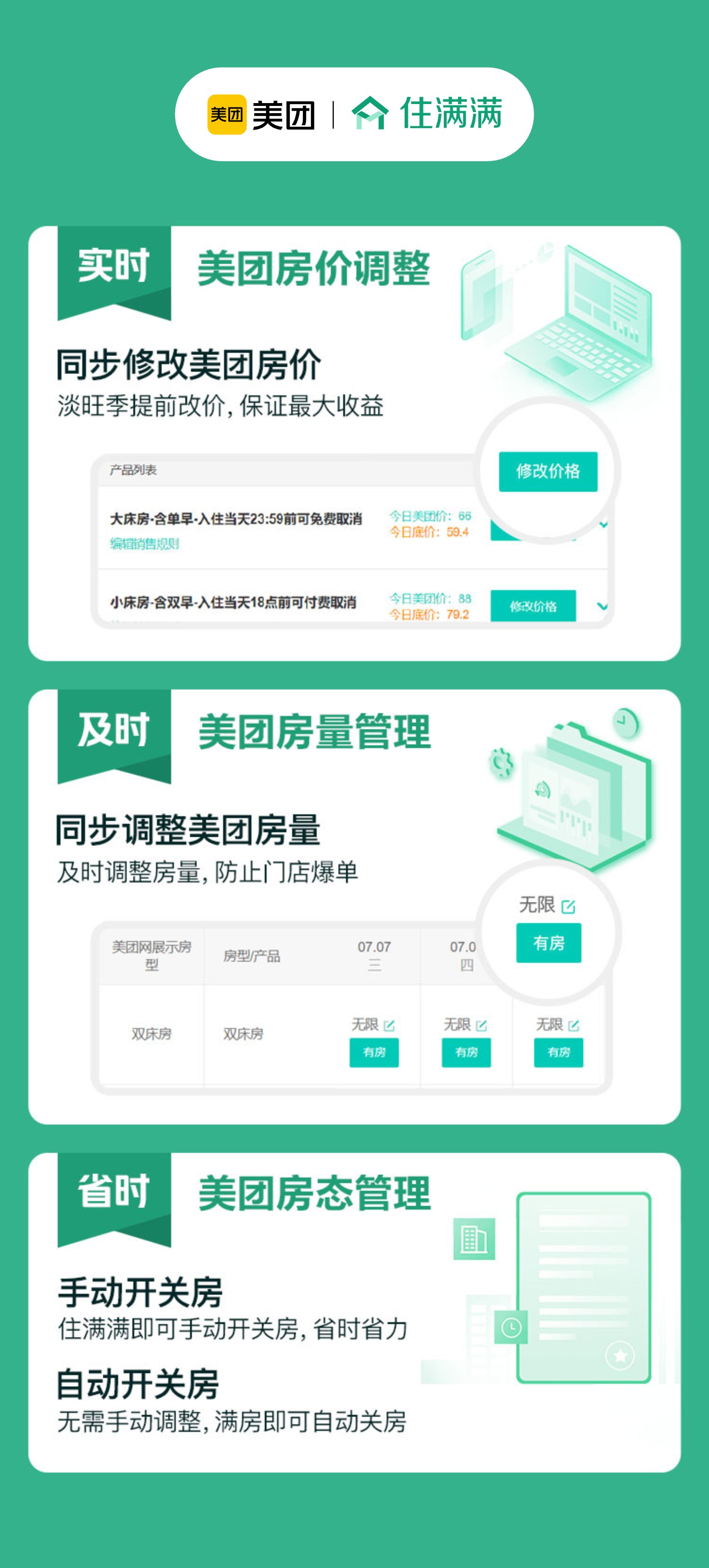 美团住满满 酒店管理平台 自动接单 智能短信 管理系统