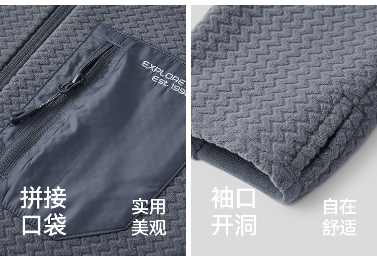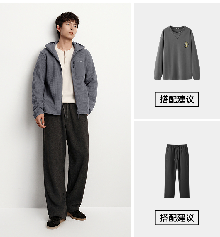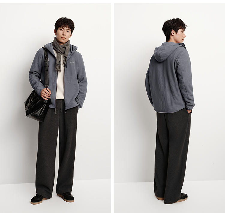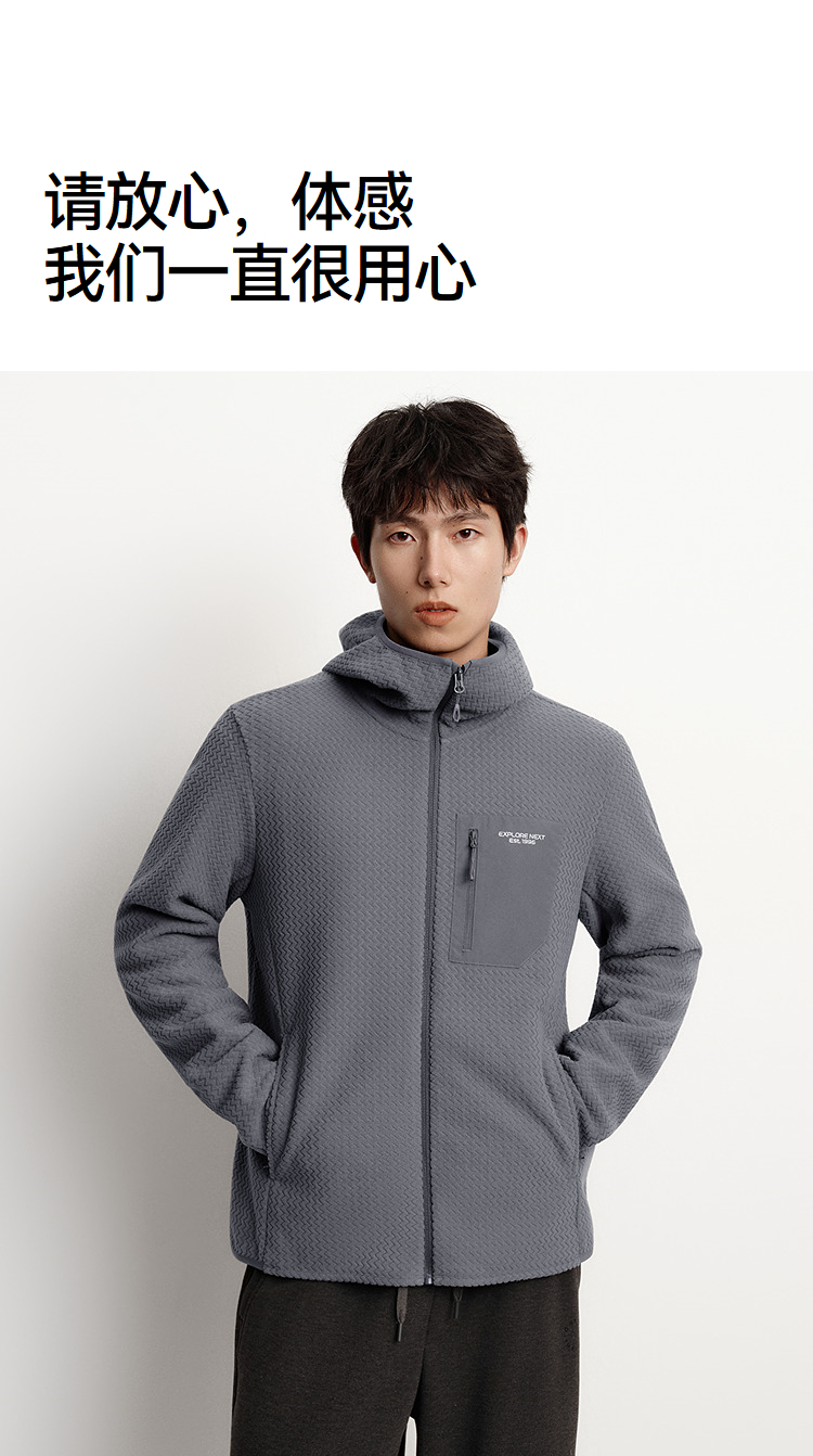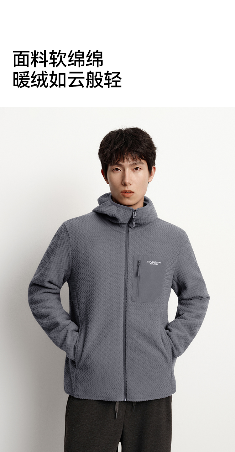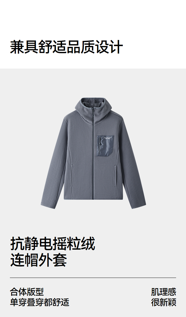 森马外套男抗静电摇粒绒针织夹克2025冬季新款连帽上衣拼接户外潮