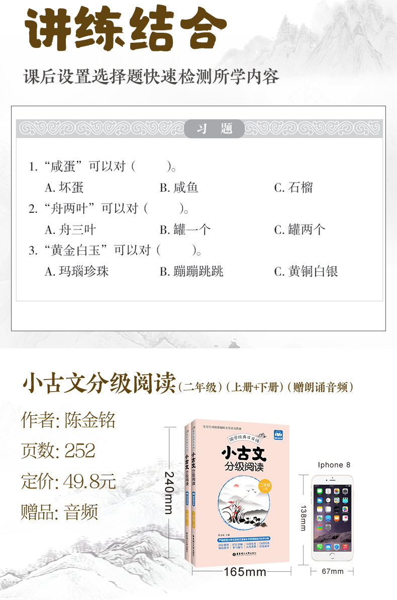 小古文分级阅读 二年级/2年级 上下册 国学经典日日诵(赠朗诵音频)陈金铭主编 二年级古文专项训练 华东理工大学出版社