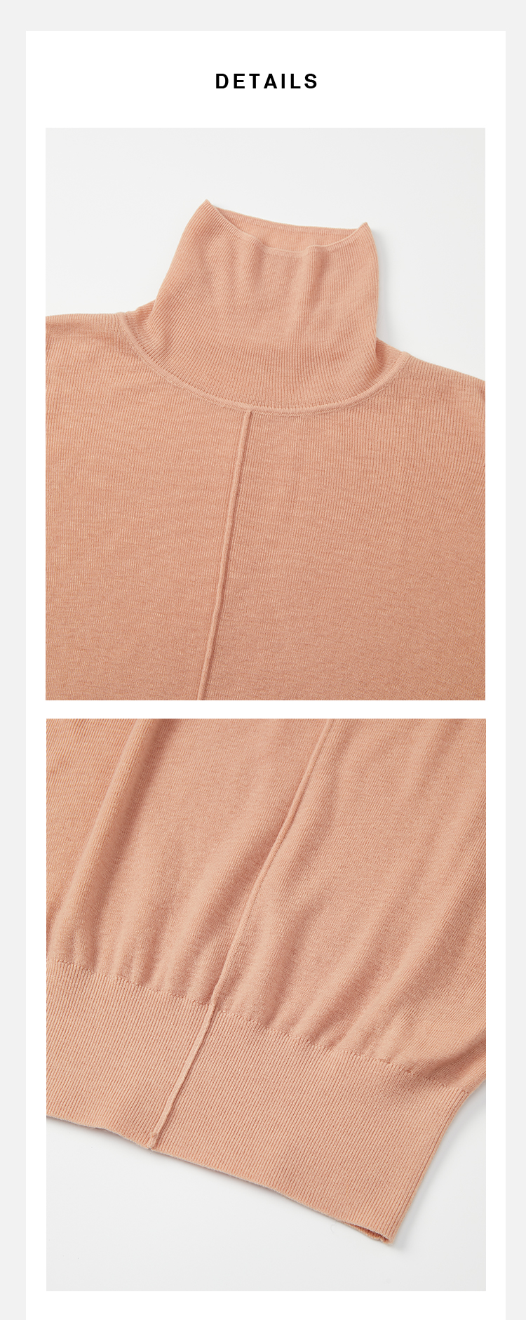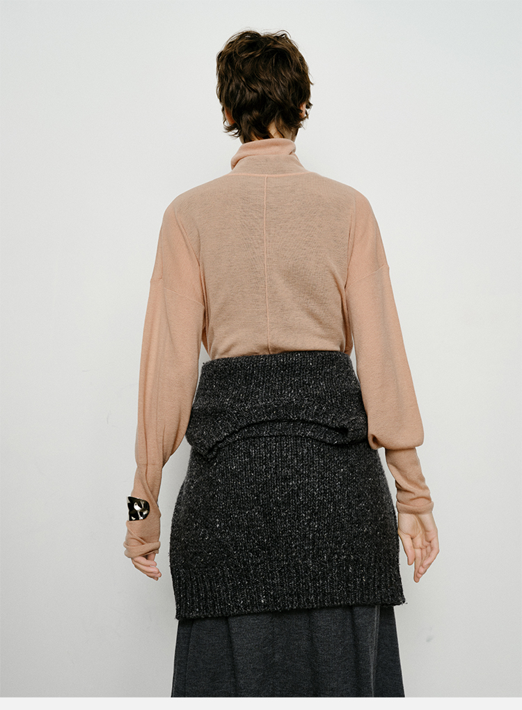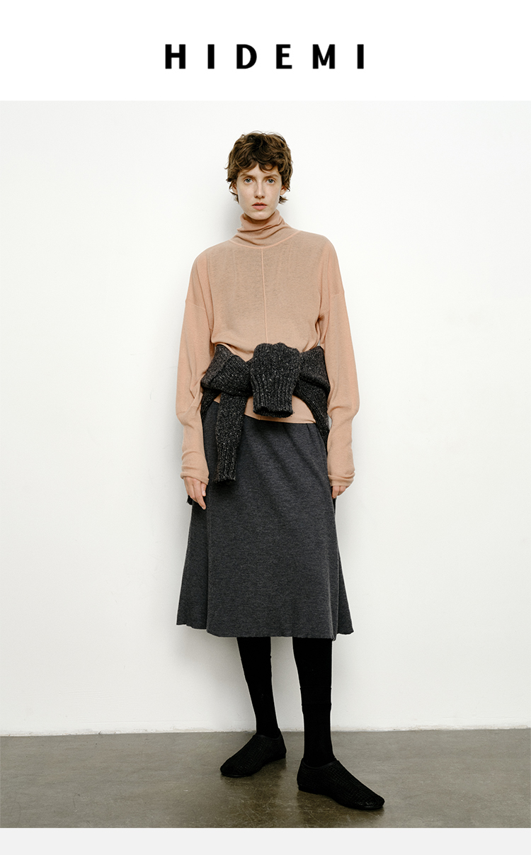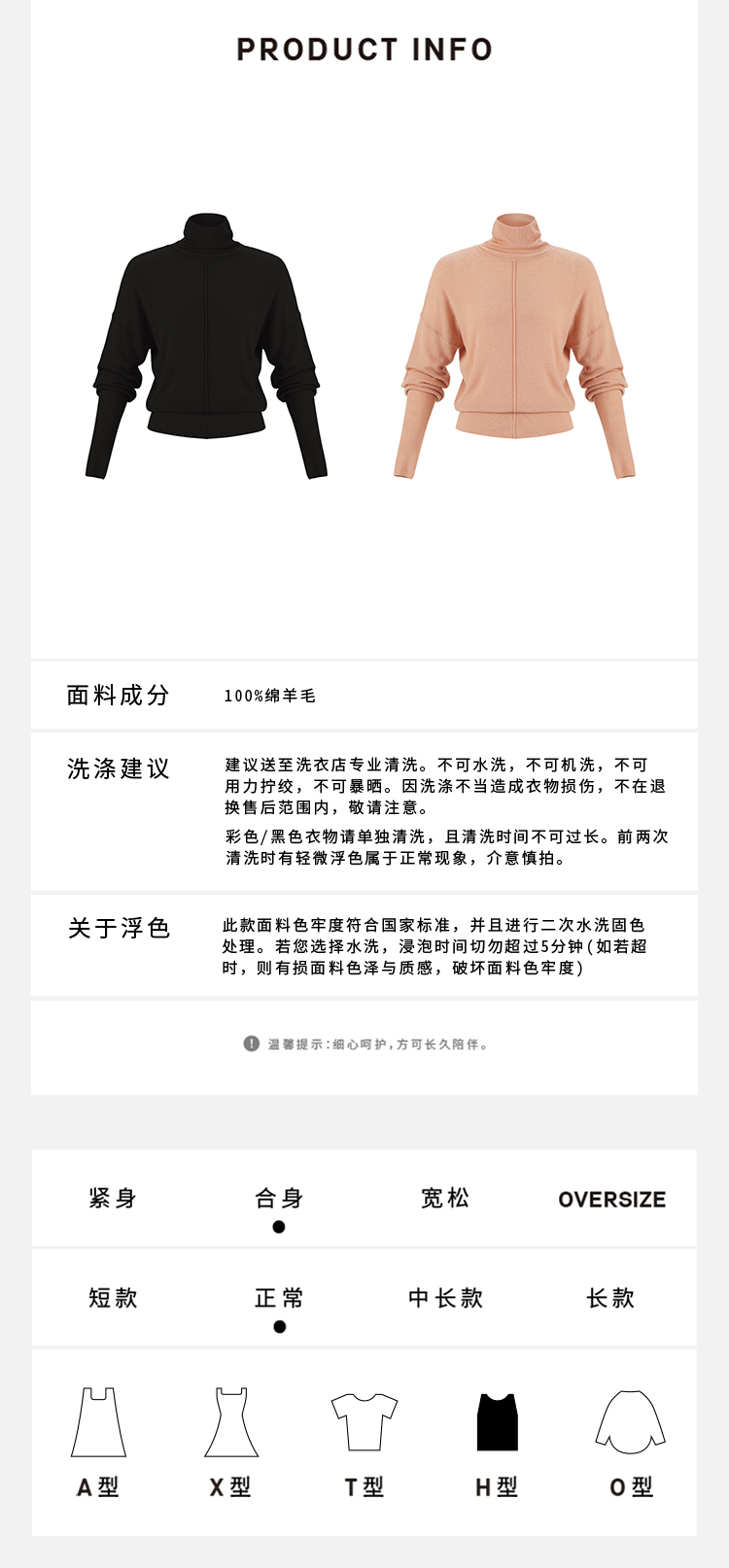HIDEMI 美利奴羊毛极简设计感高领拼缝式廓形毛衣 裸粉色/黑色