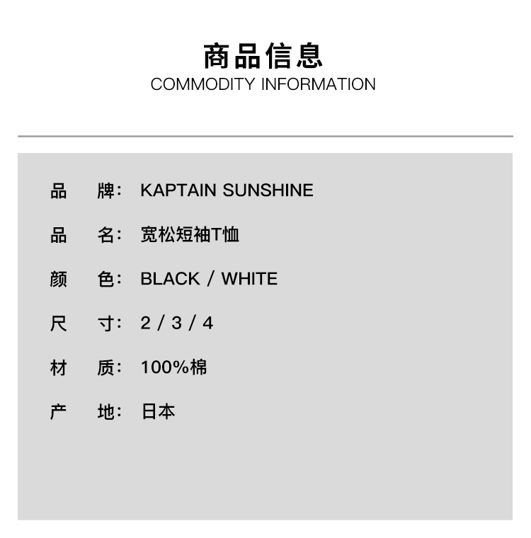KAPTAIN SUNSHINE Suvin Cotton Suede 男女款超长棉宽松短袖T恤