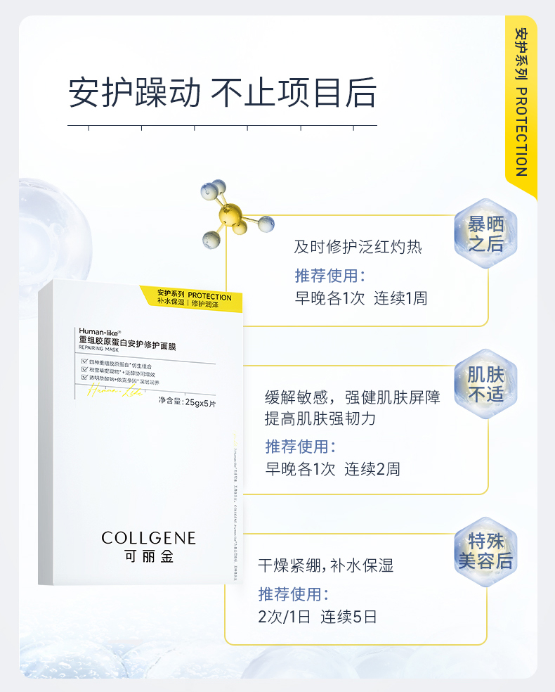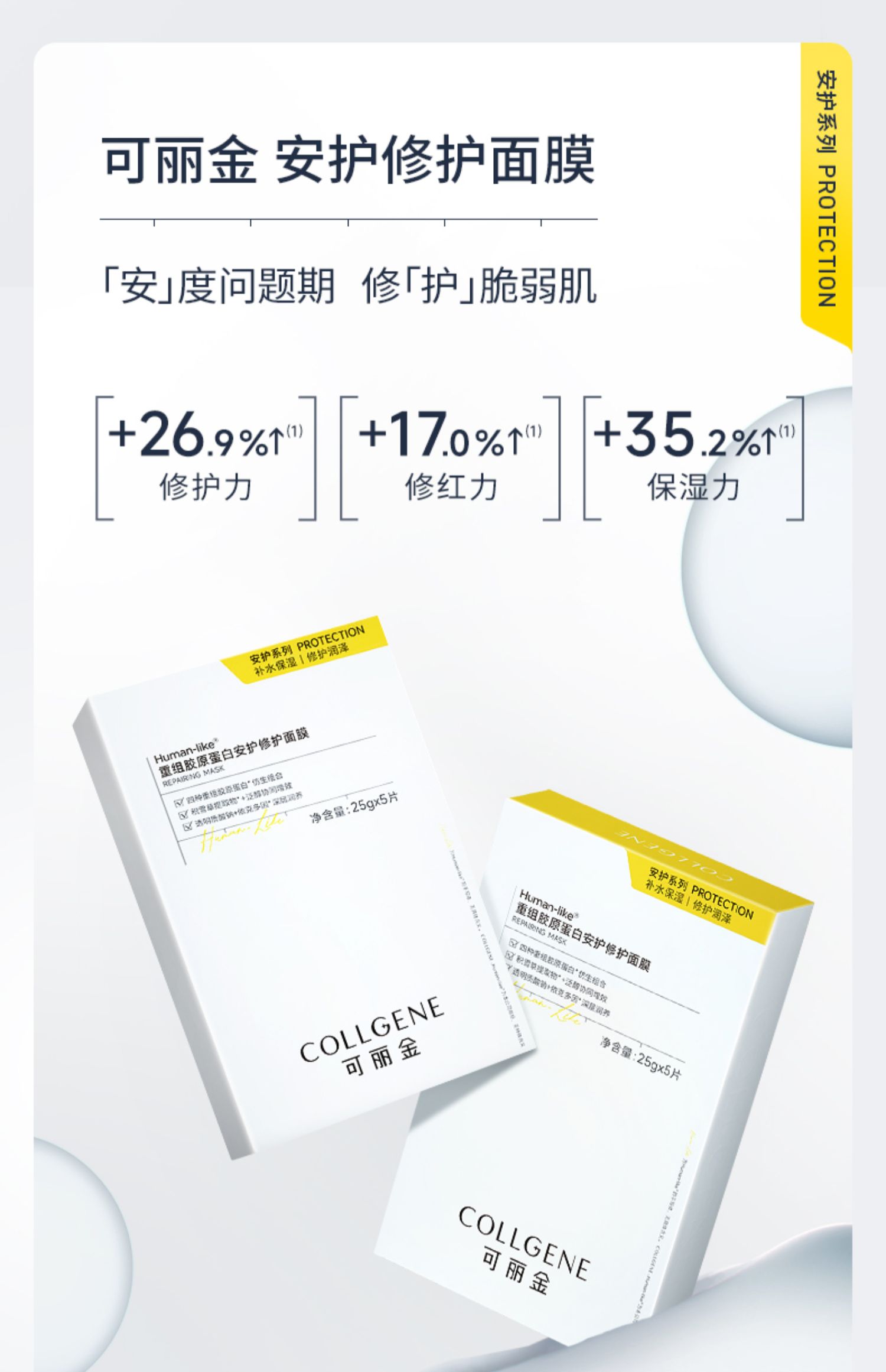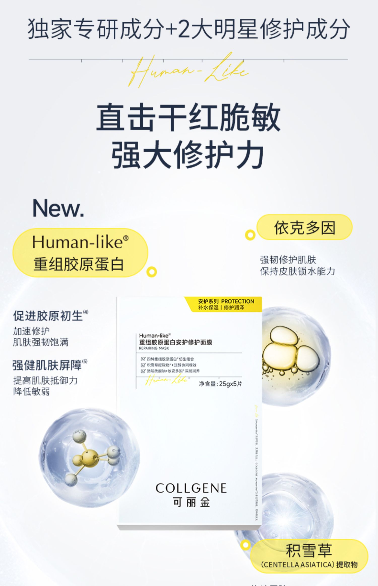 可丽金重组胶原蛋白安护修护面膜25g*5片/盒(新包装)