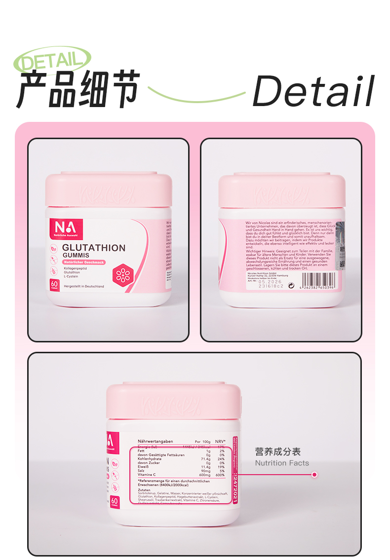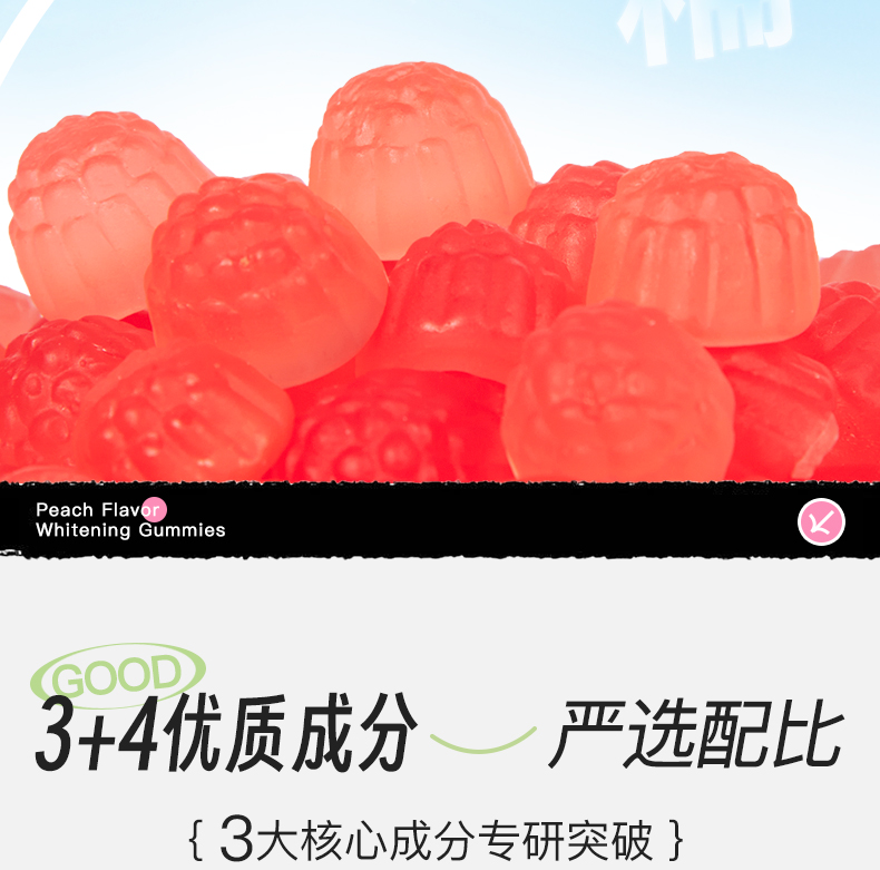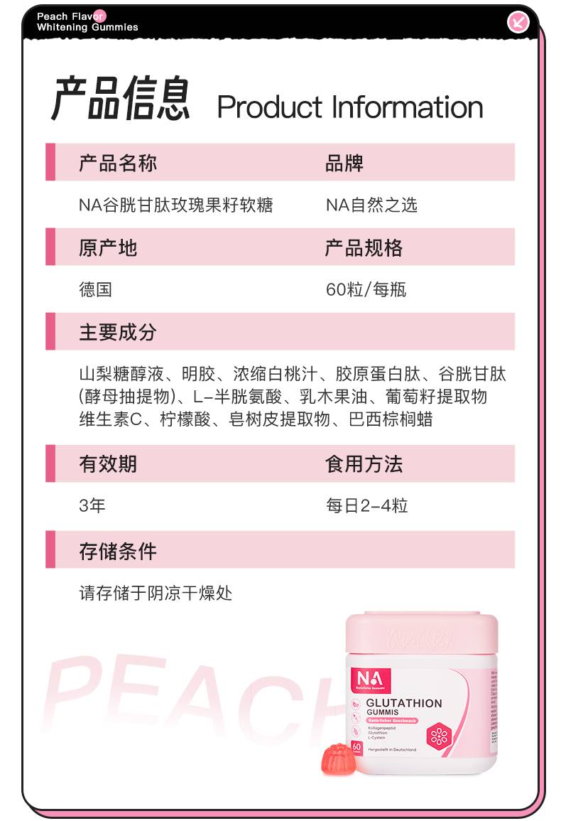 德国NA谷胱甘肽玫瑰果籽白软糖 科学配比 严选萃取 Q弹软糯白桃香