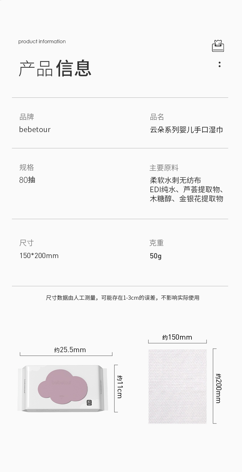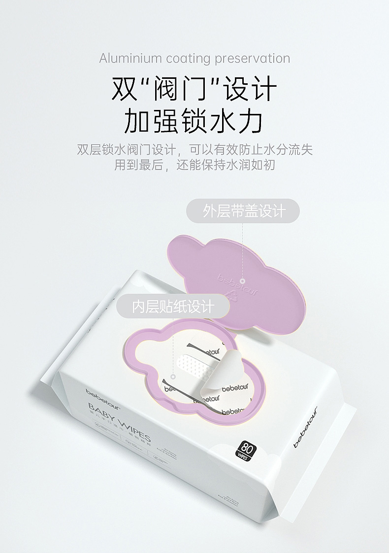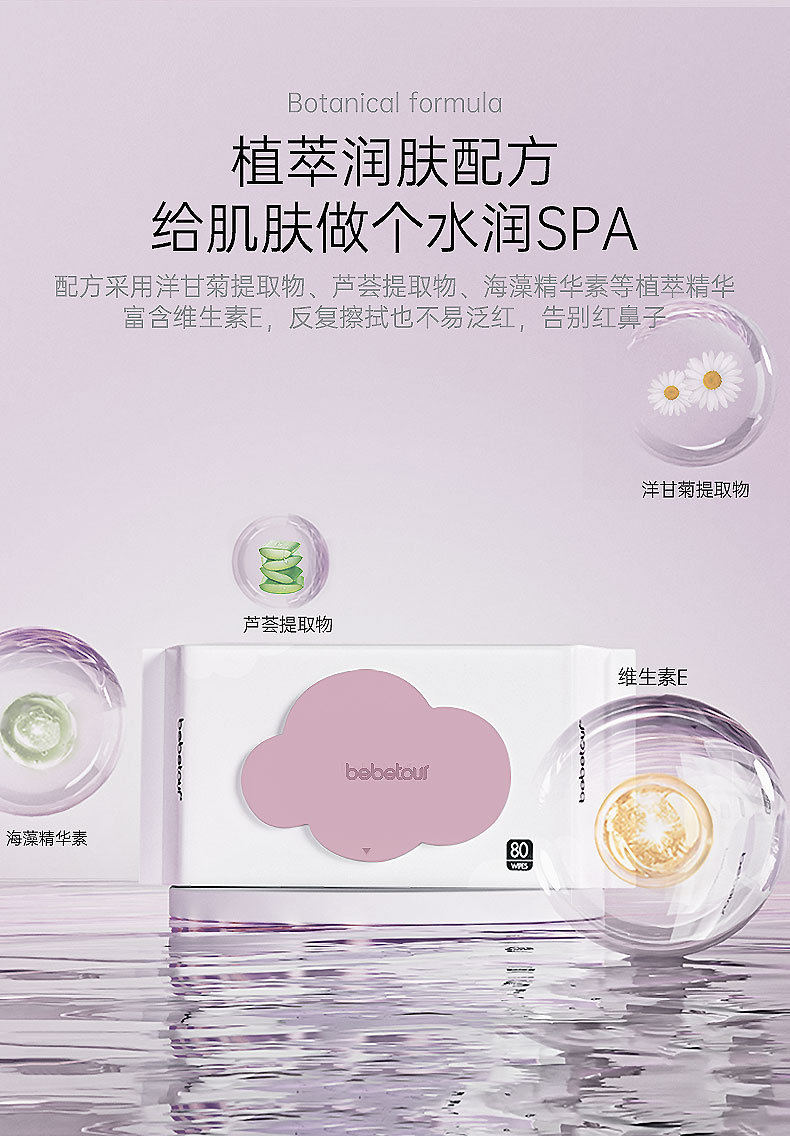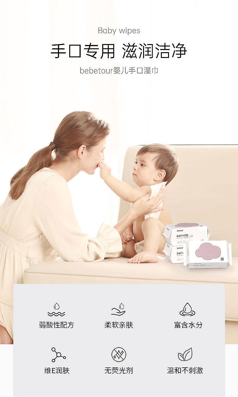 BEBETOUR云朵系列婴儿手口湿巾80抽(紫盖)10连包