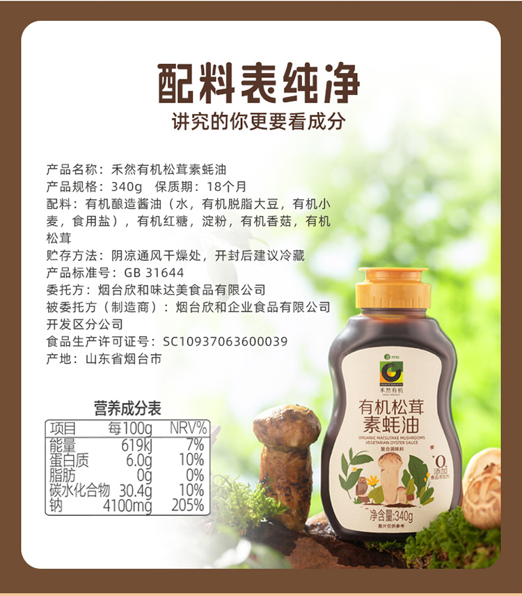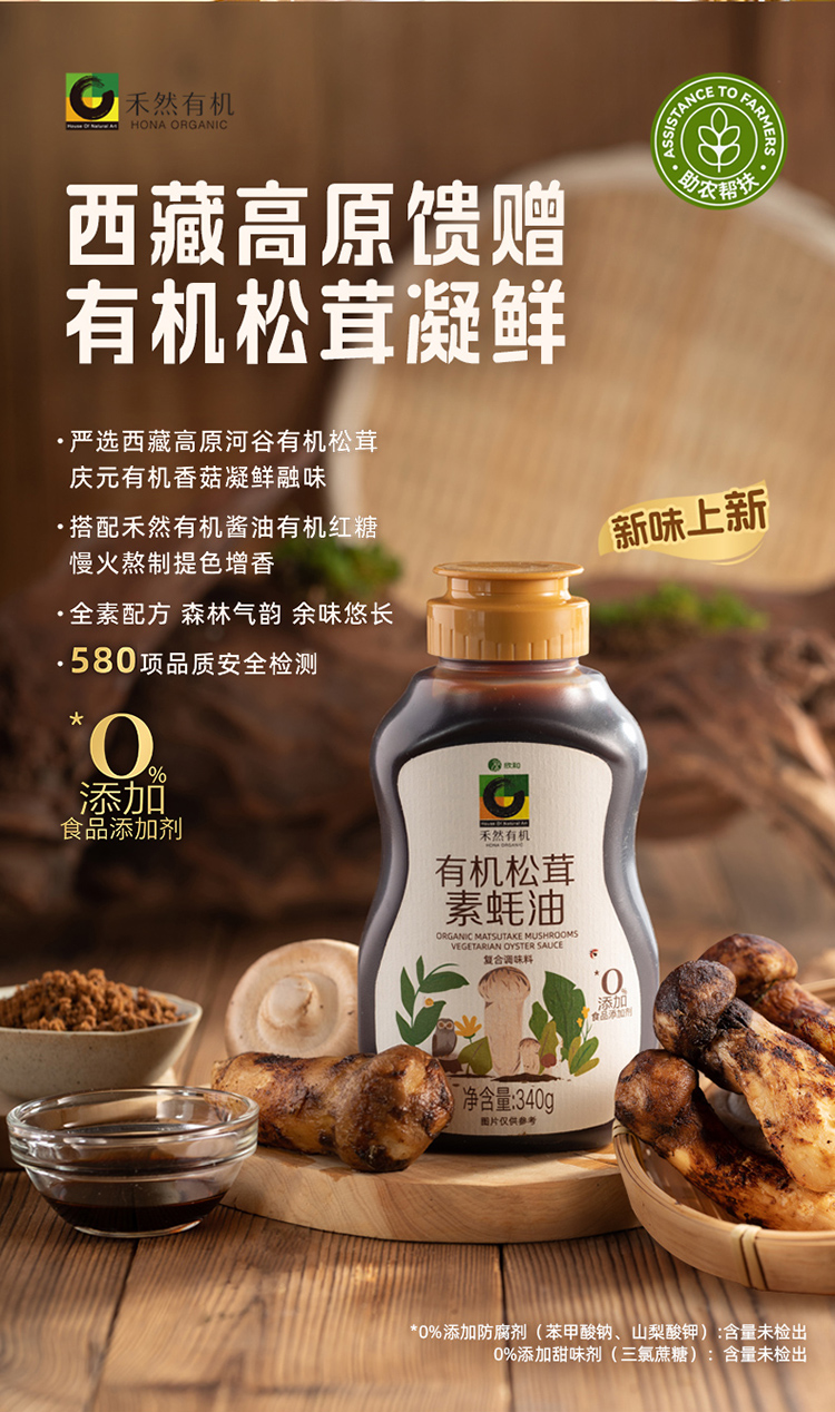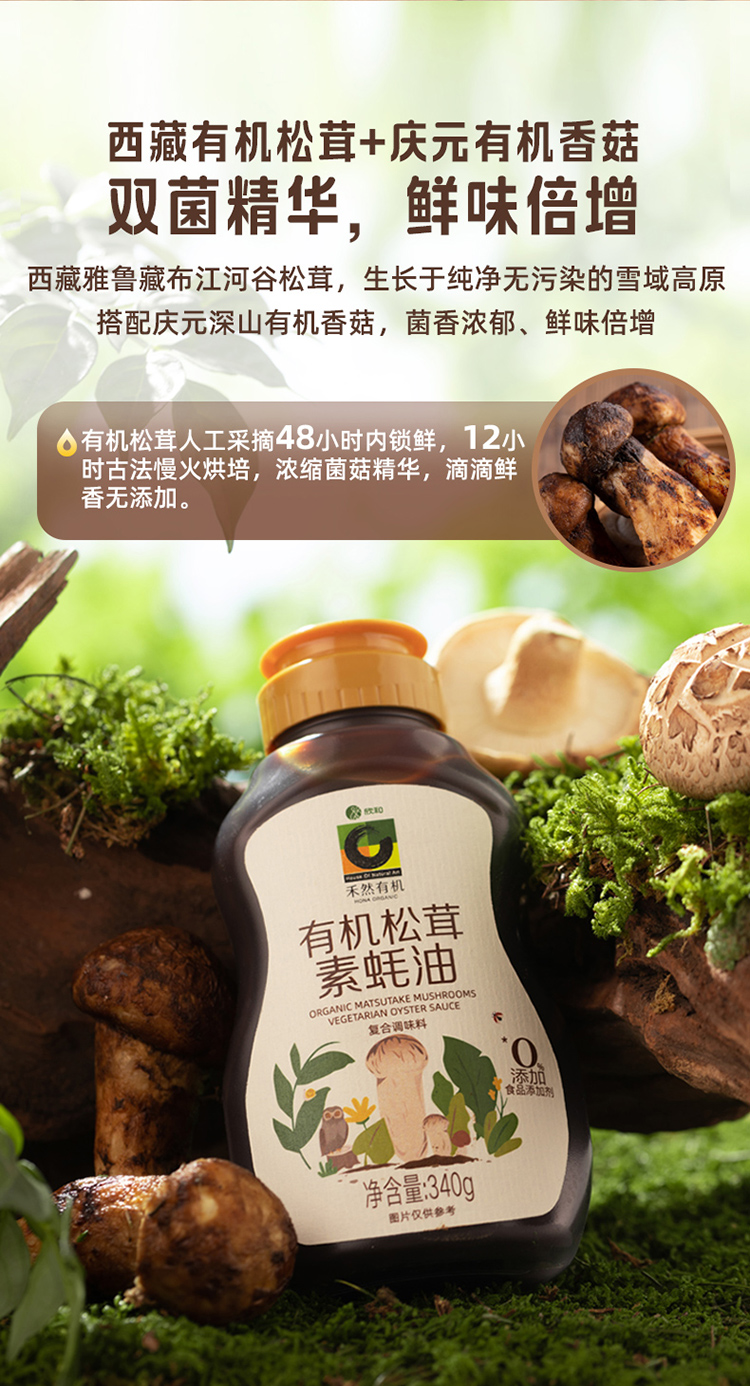 禾然有机松茸素蚝油(成都仓库-顺丰快递 )| 340g/瓶,来自山东烟台,生产者:禾然有机【合作生产,公平贸易】