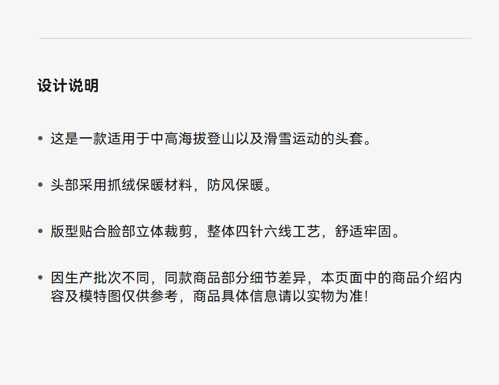 KAILAS凯乐石 户外运动 抓绒套头滑雪帽 KF2341506【Z】
