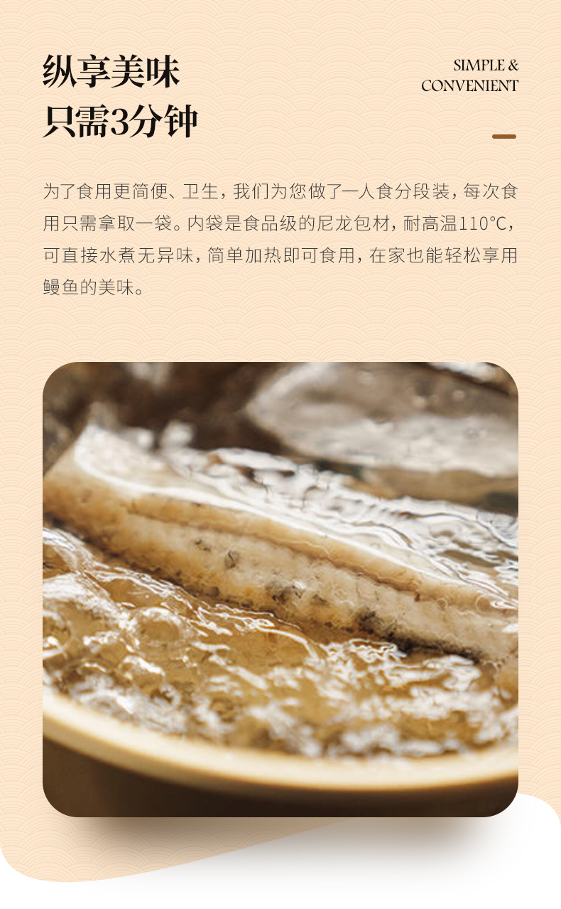 不添加任何调味酱汁烤制,保持了鳗鱼的本味,鲜甜肉嫩,口感丰腴。