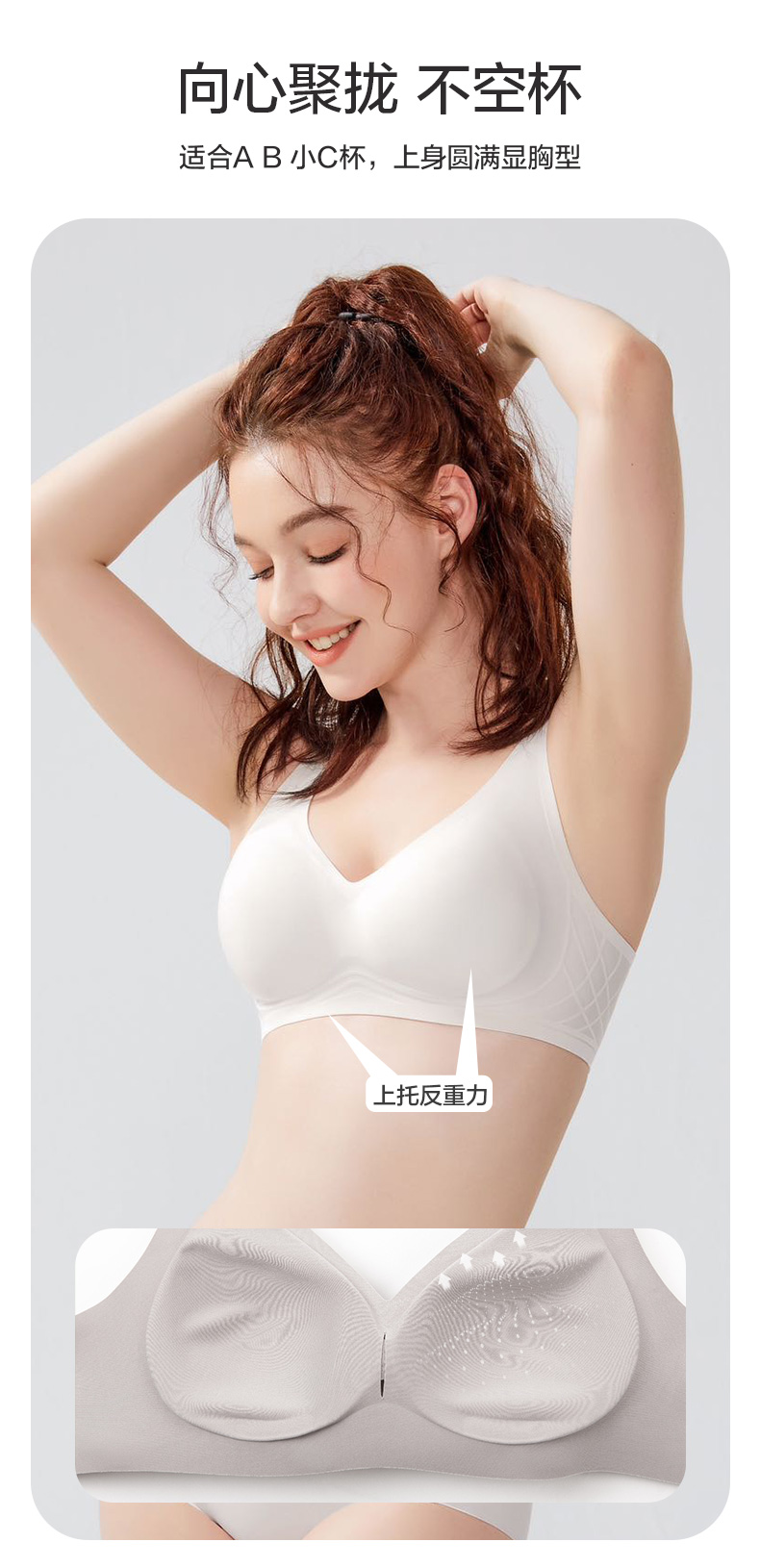 云朵植绒养护文胸 3/4罩杯果冻胶高科技刮胶植绒工艺 立体水滴杯适合小胸 薄款杯垫可拆卸 细腻软糯亲肤